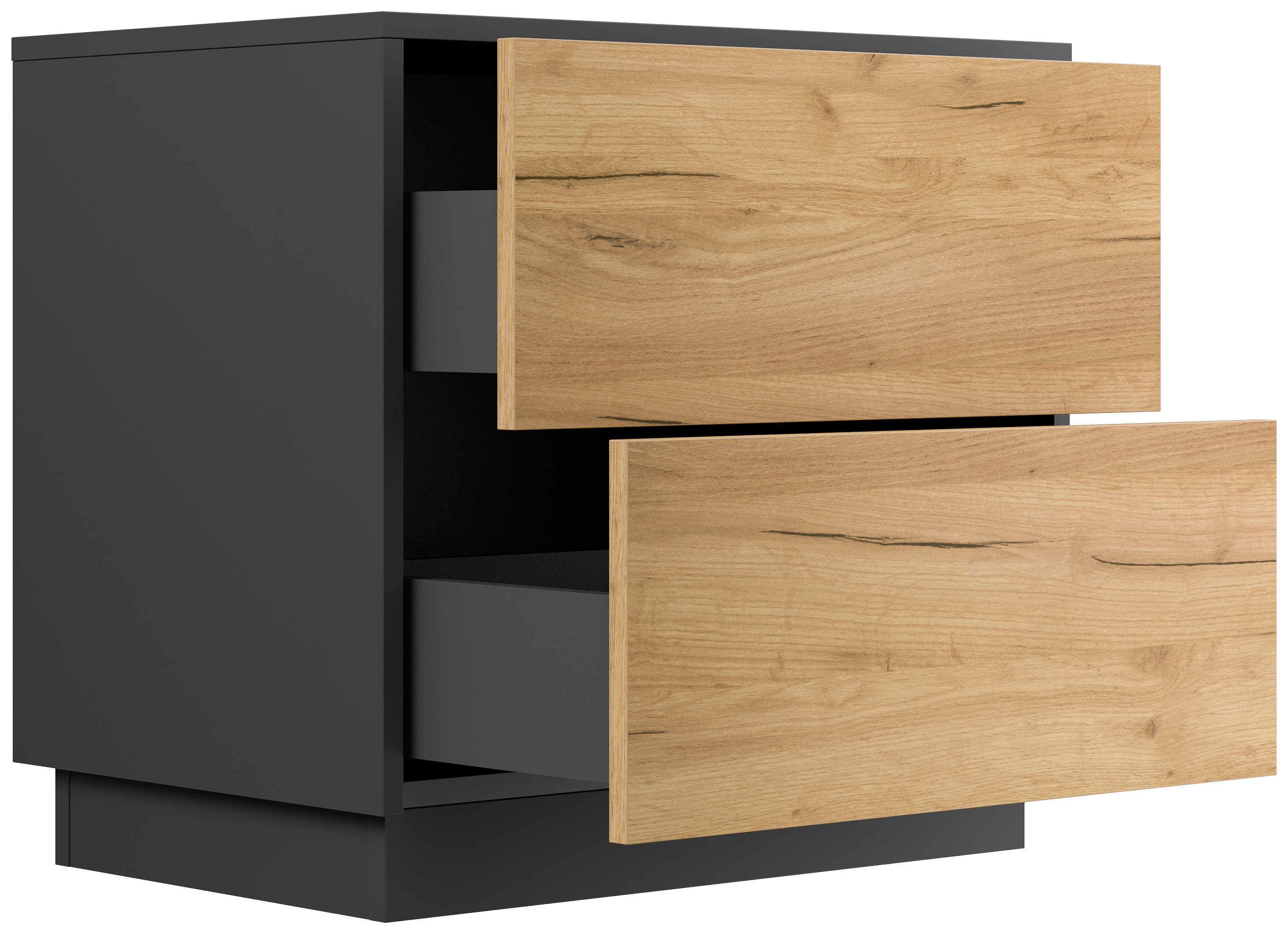 Design Nachttisch Concepto L 60cm stehend, 2 Pushauszüge Grafit Eiche