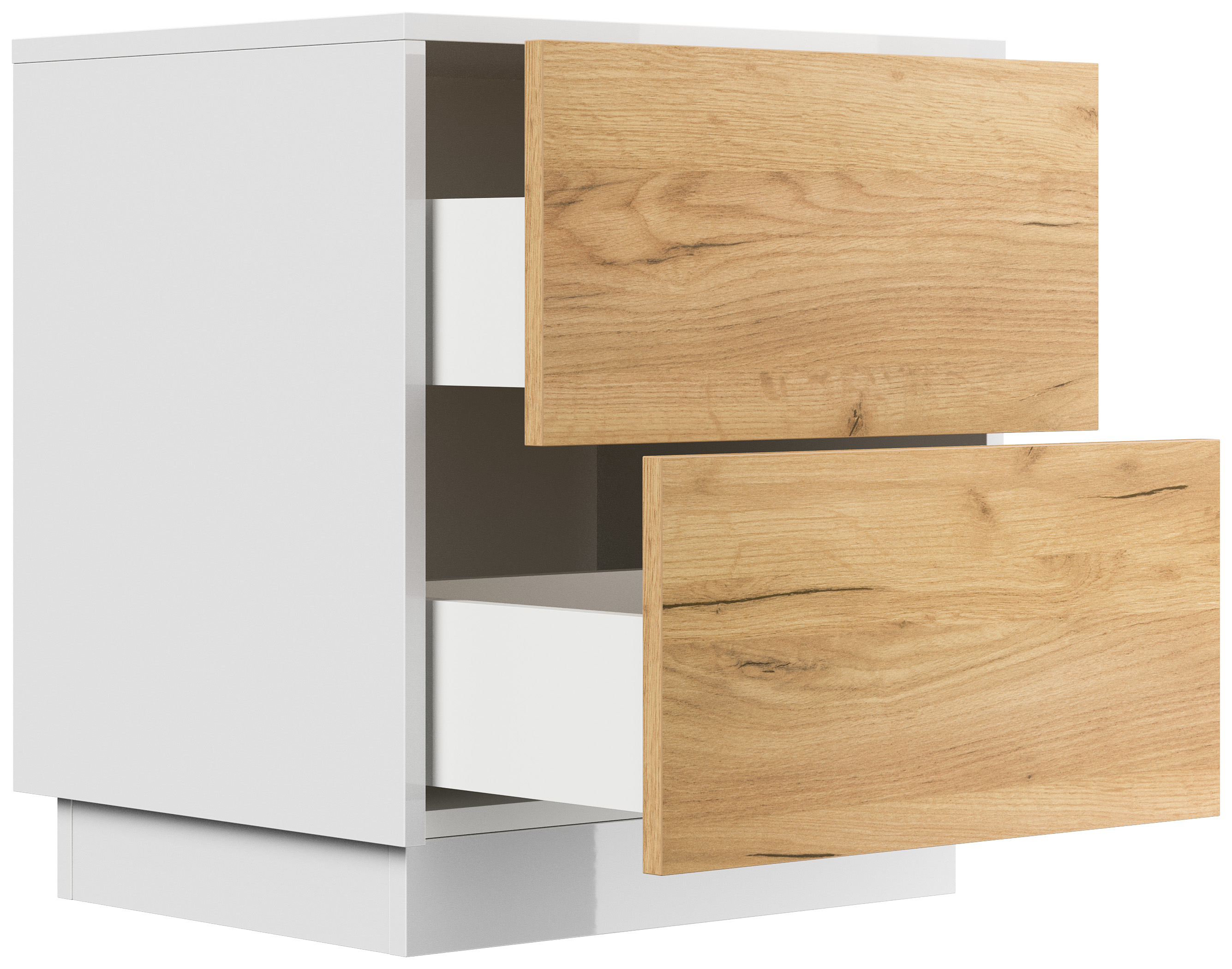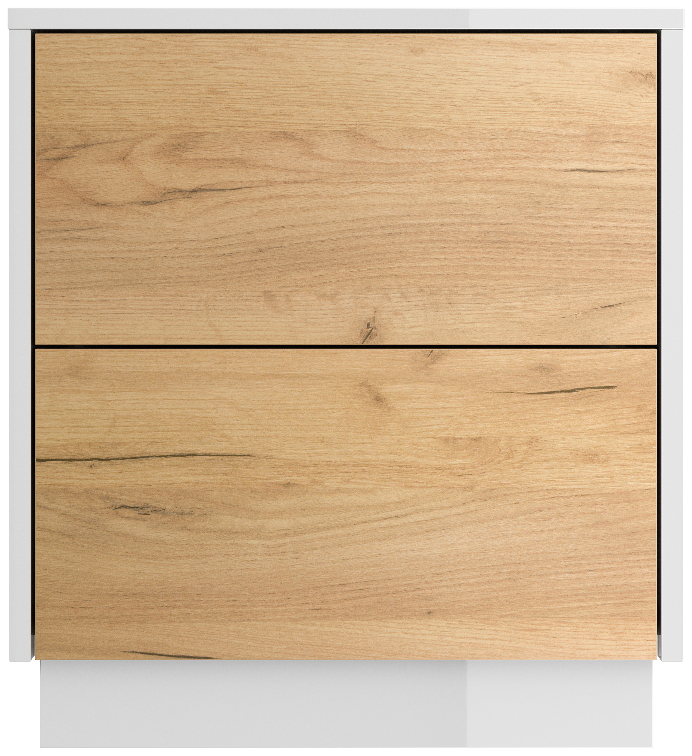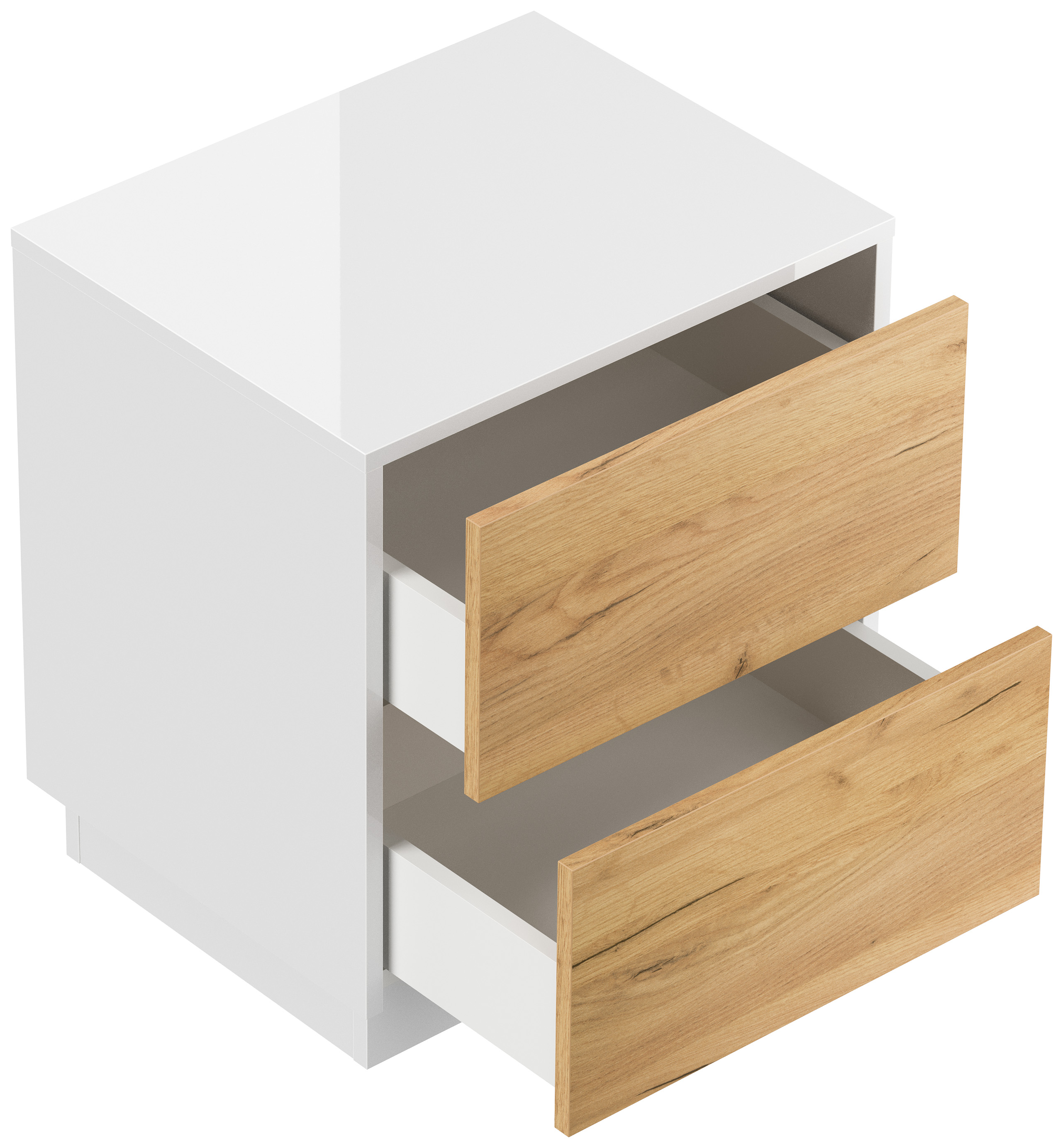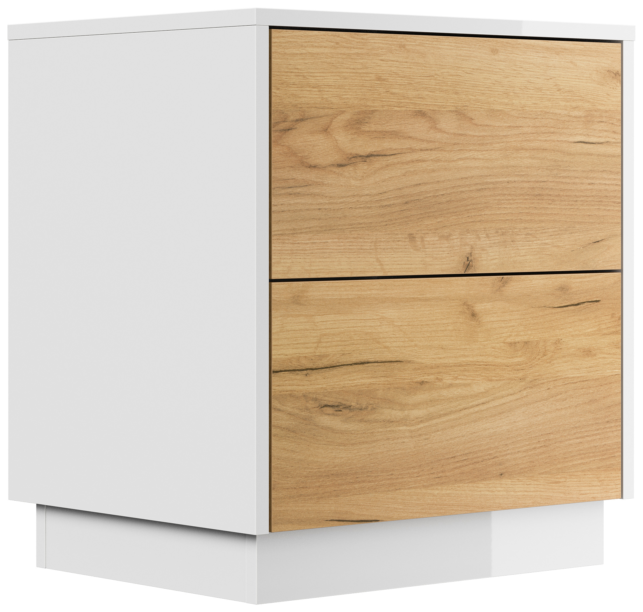 Design Nachttisch Concepto M 50cm stehend, 2 Pushauszüge Weiß Hgl Eiche