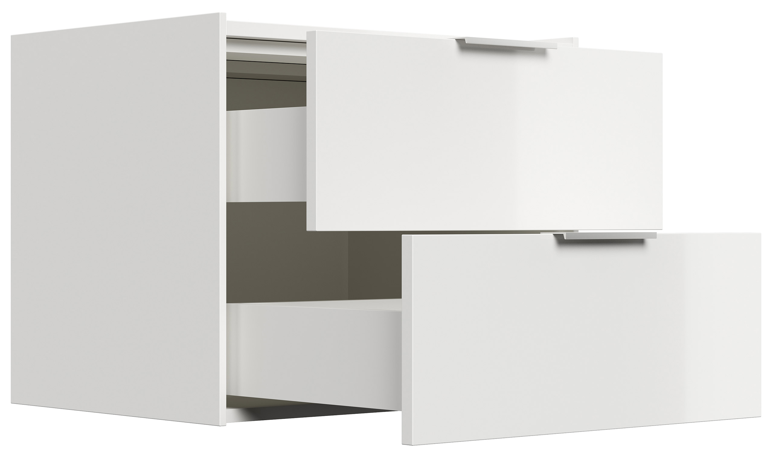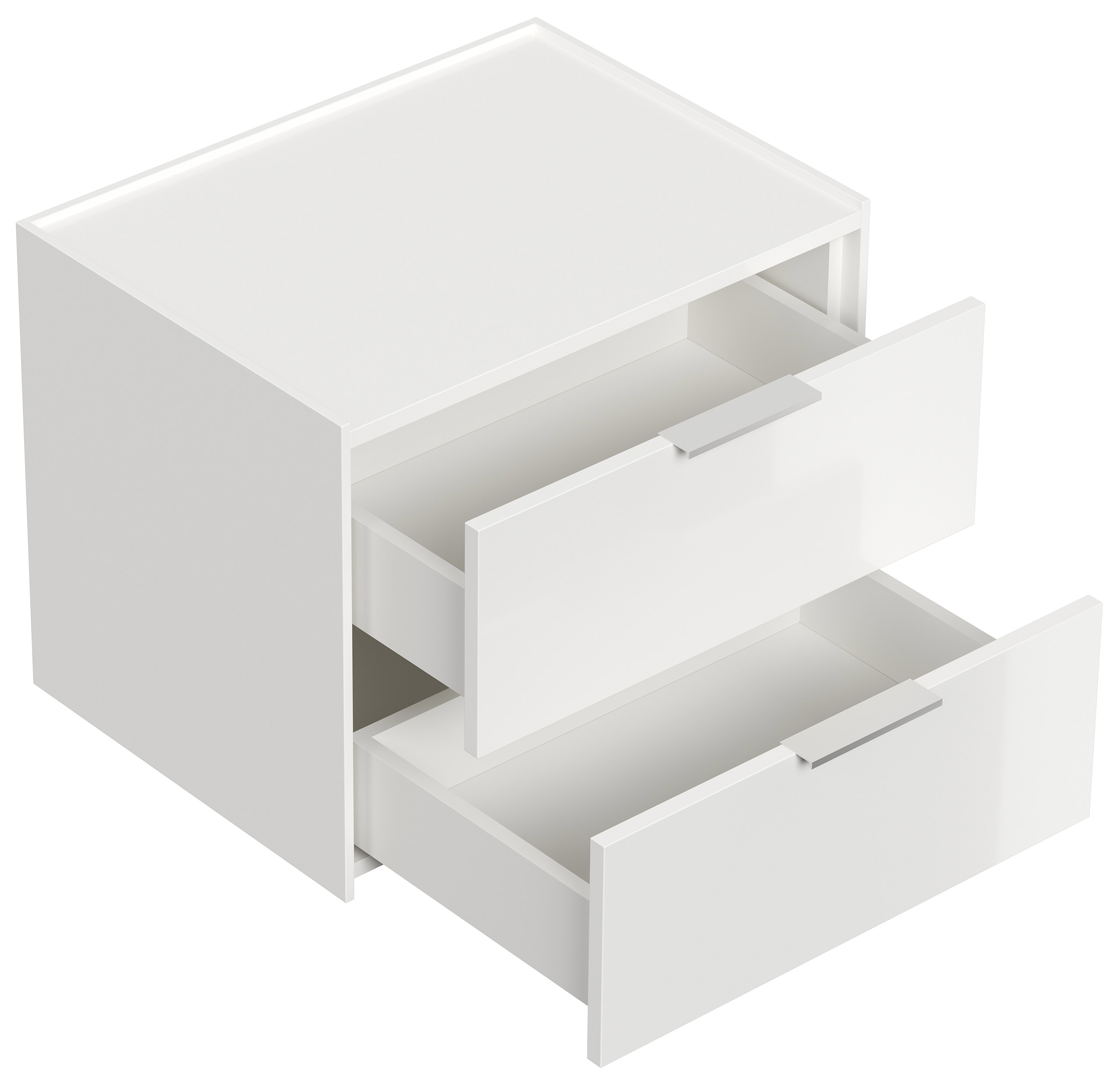 Design Nachttisch Kommode Artem 60cm, 2 Softeinzüge lackiert Weiß Hgl