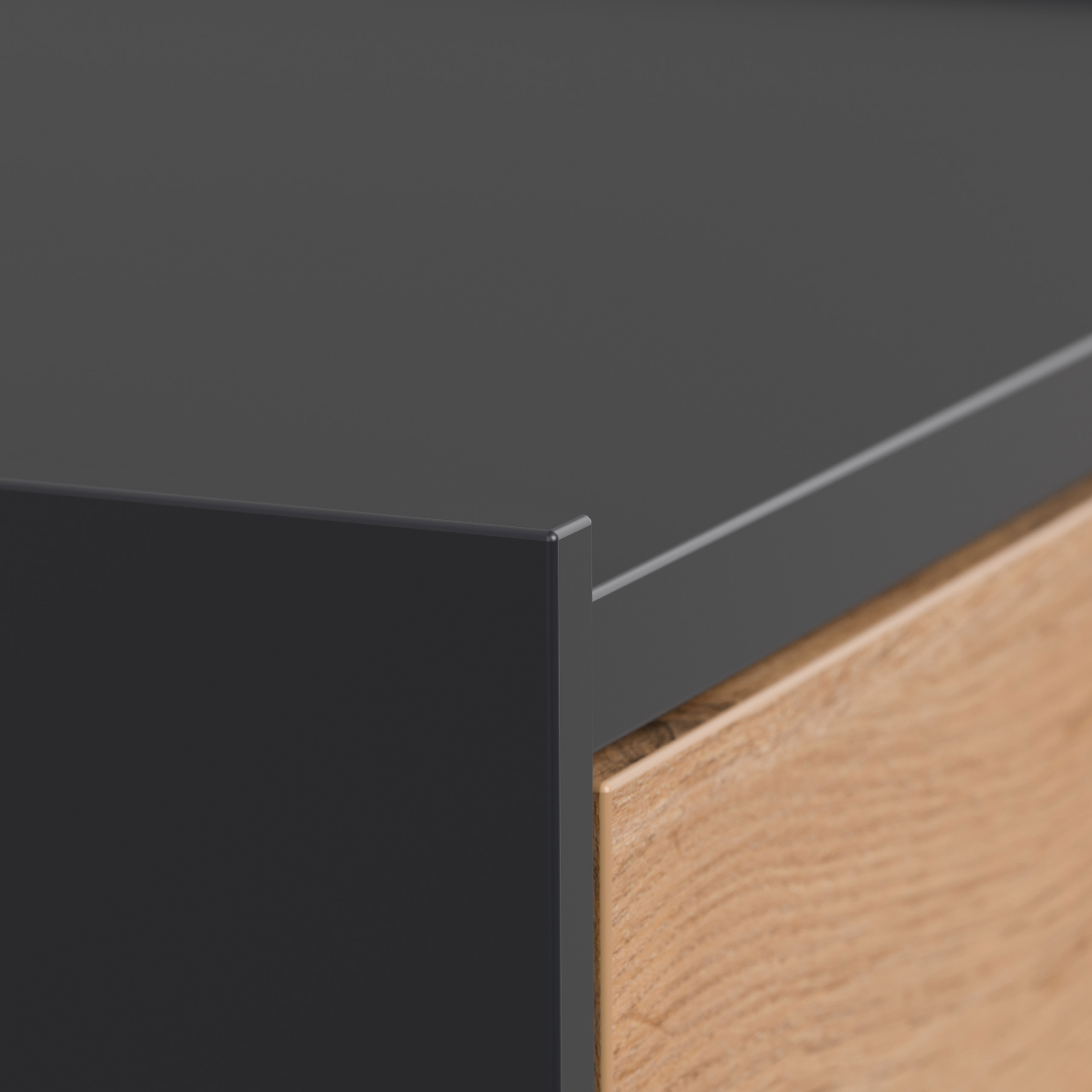 - Stabile Fronten und robuster Korpus: Die Fronten sind 18-19 mm dick. Deckplatte sowie Boden sind 16 mm dick. Die Rückwand ist eine leichte und solide 5 mm HDF (hochdichte Faserplatte).