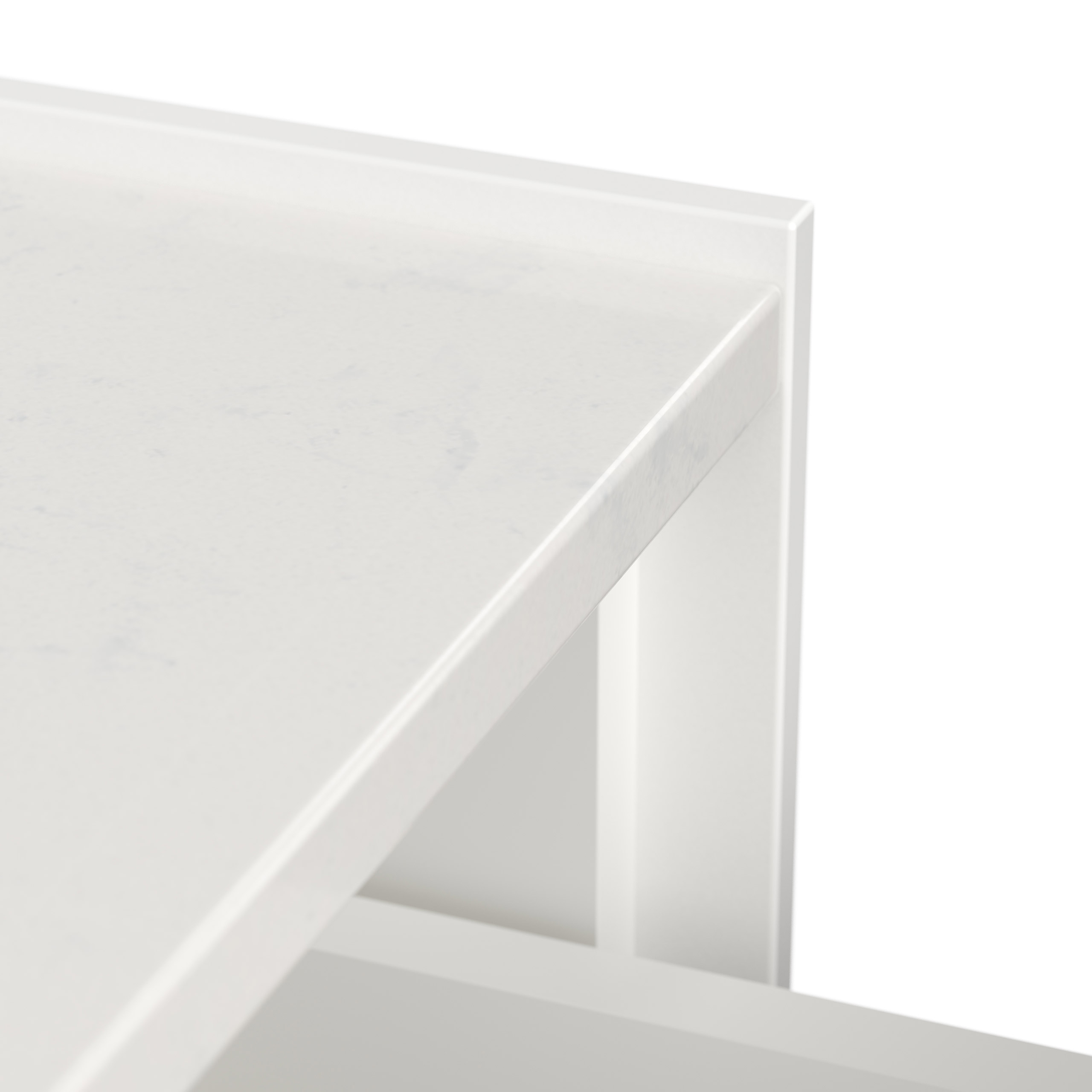 Die Deckplatte besteht aus hochwertigem Quarzstein. Hierfür werden Quarzkristalle mit Polymerharzen gemischt. Quarz ist eines der härtesten natürlich vorkommenden Materialien überhaupt. Diese moderne Quarzsteinplatte ist einem Naturstein sehr ähnlich und hat eine robuste Oberfläche mit besonderen Materialeigenschaften: