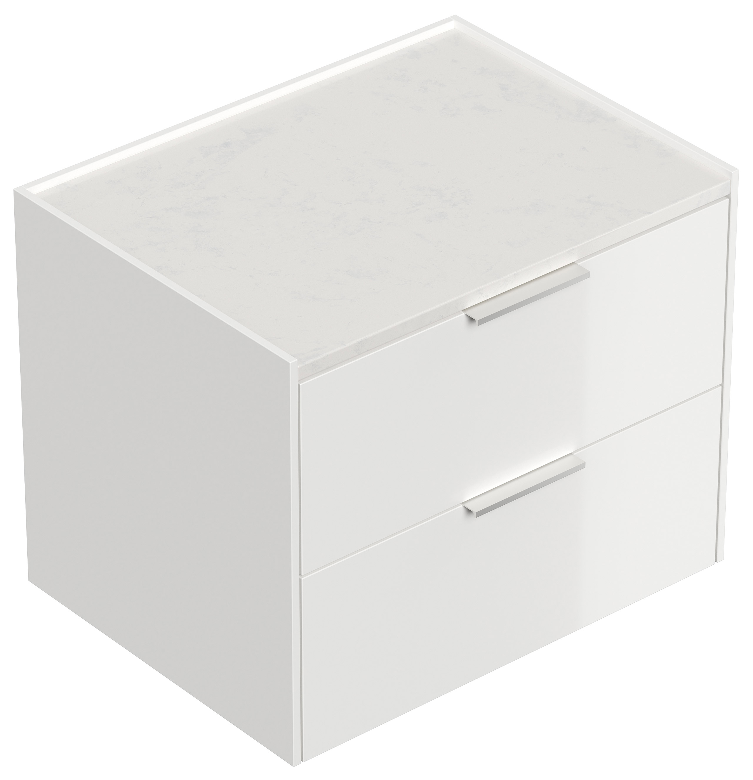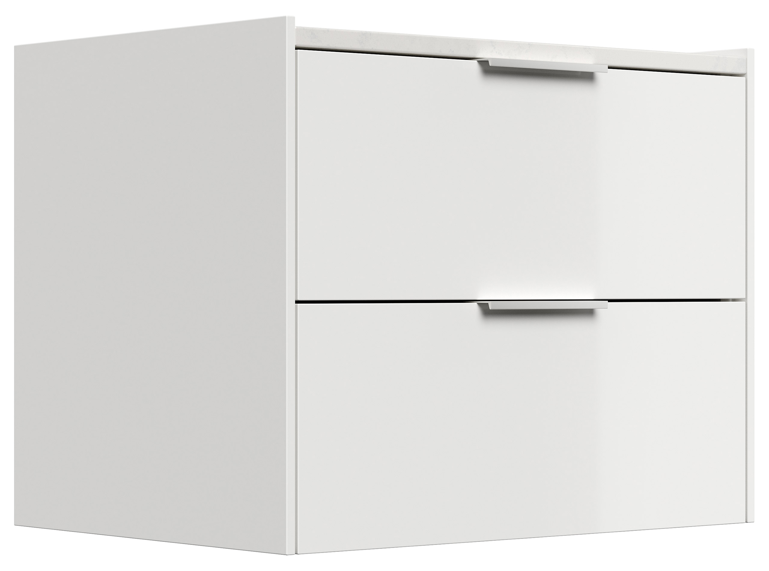 Design Nachttisch Kommode Artem 60cm, Quarztop, 2 Softeinzüge lackiert Weiß Hgl
