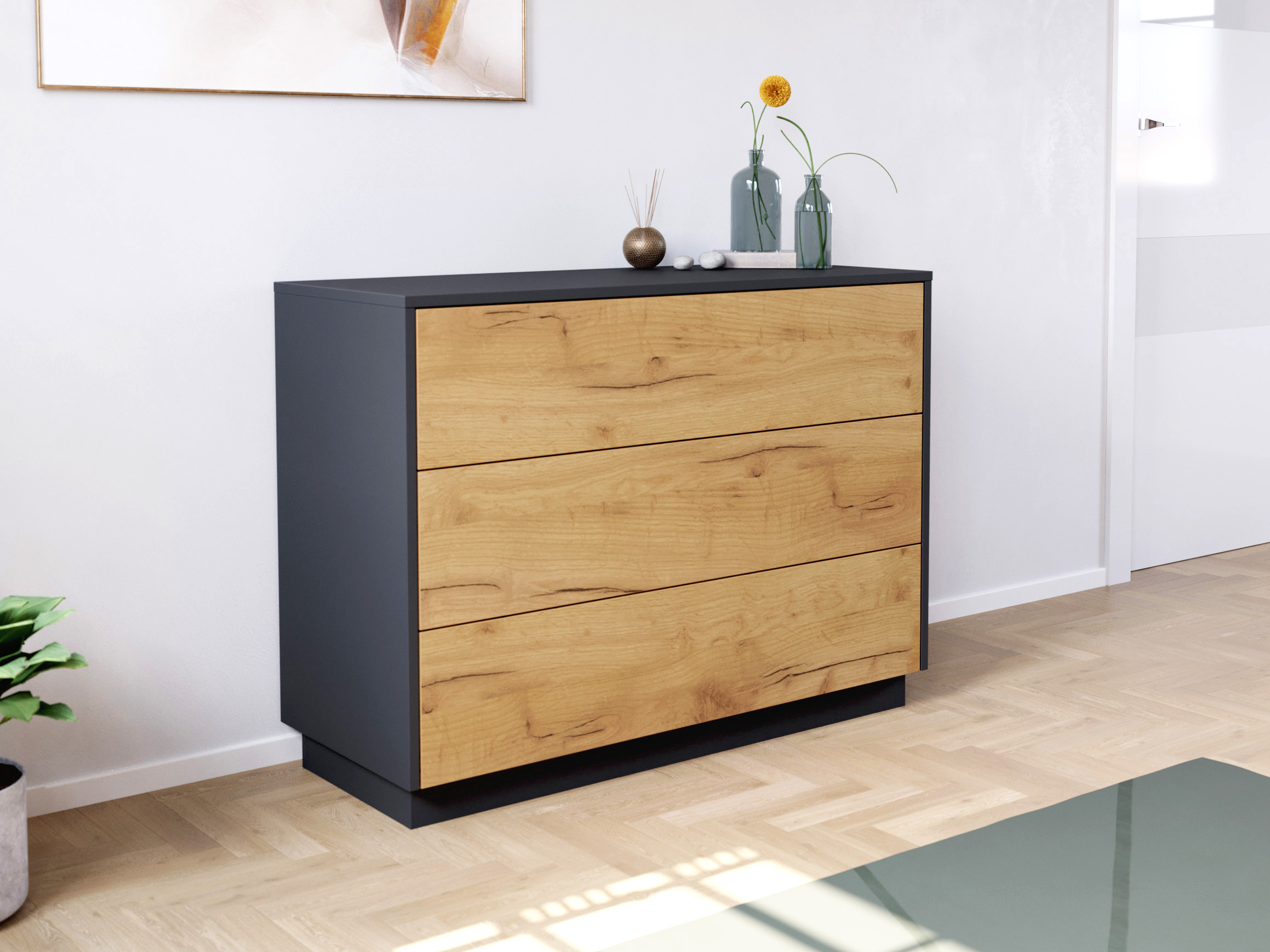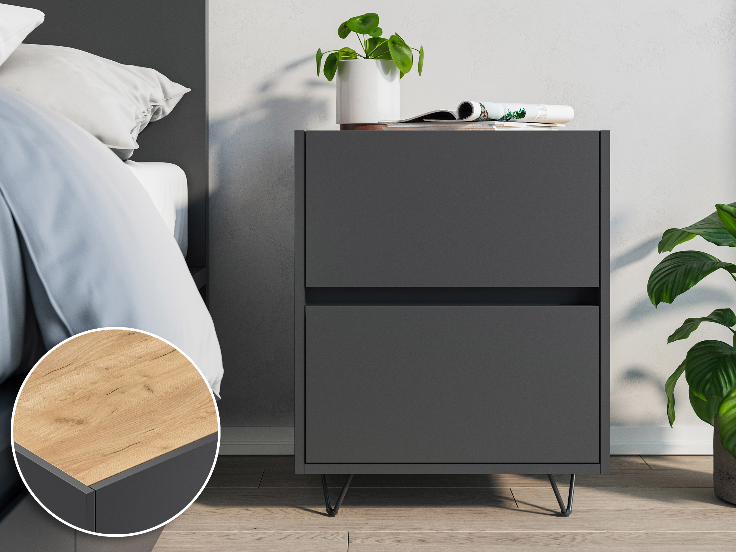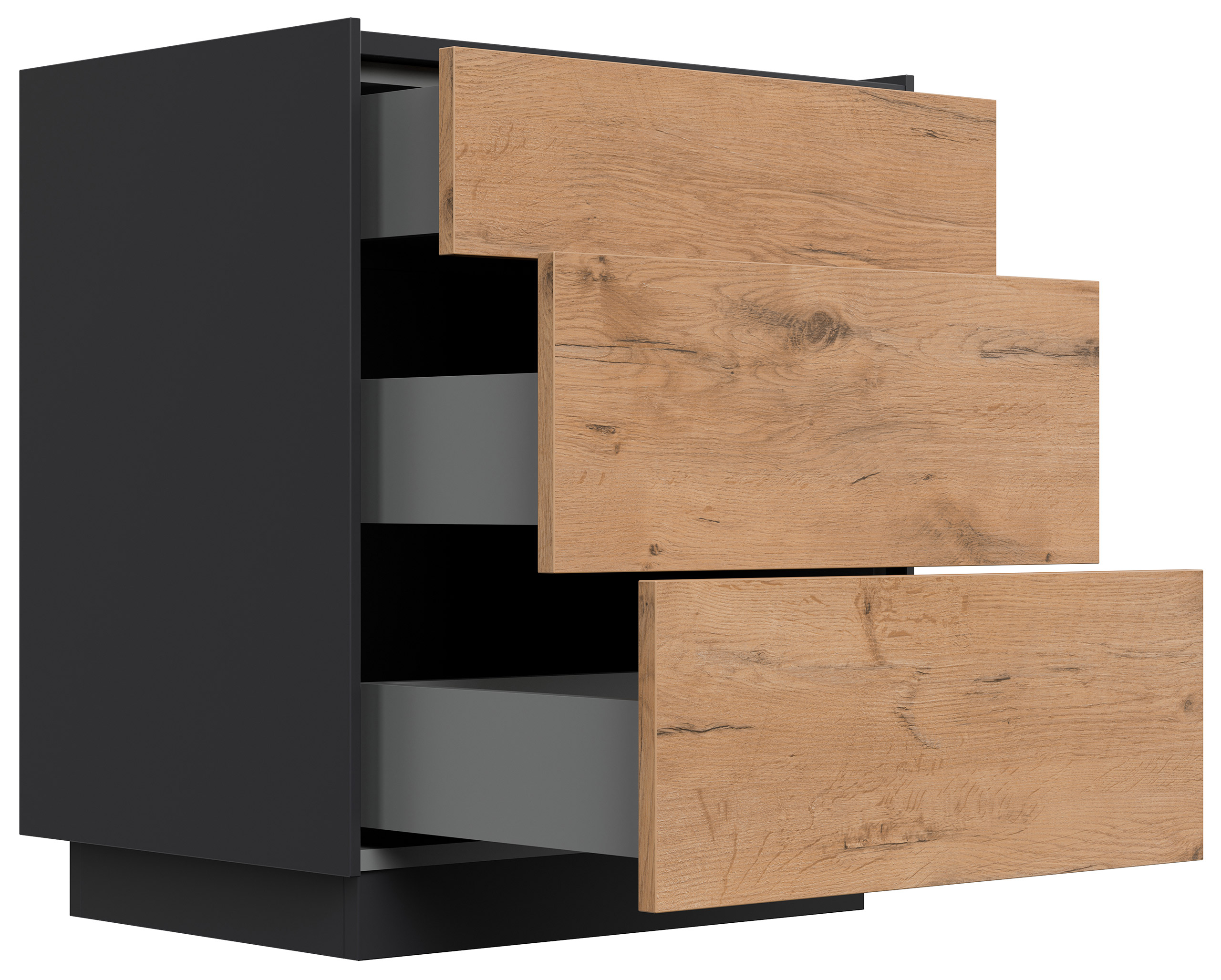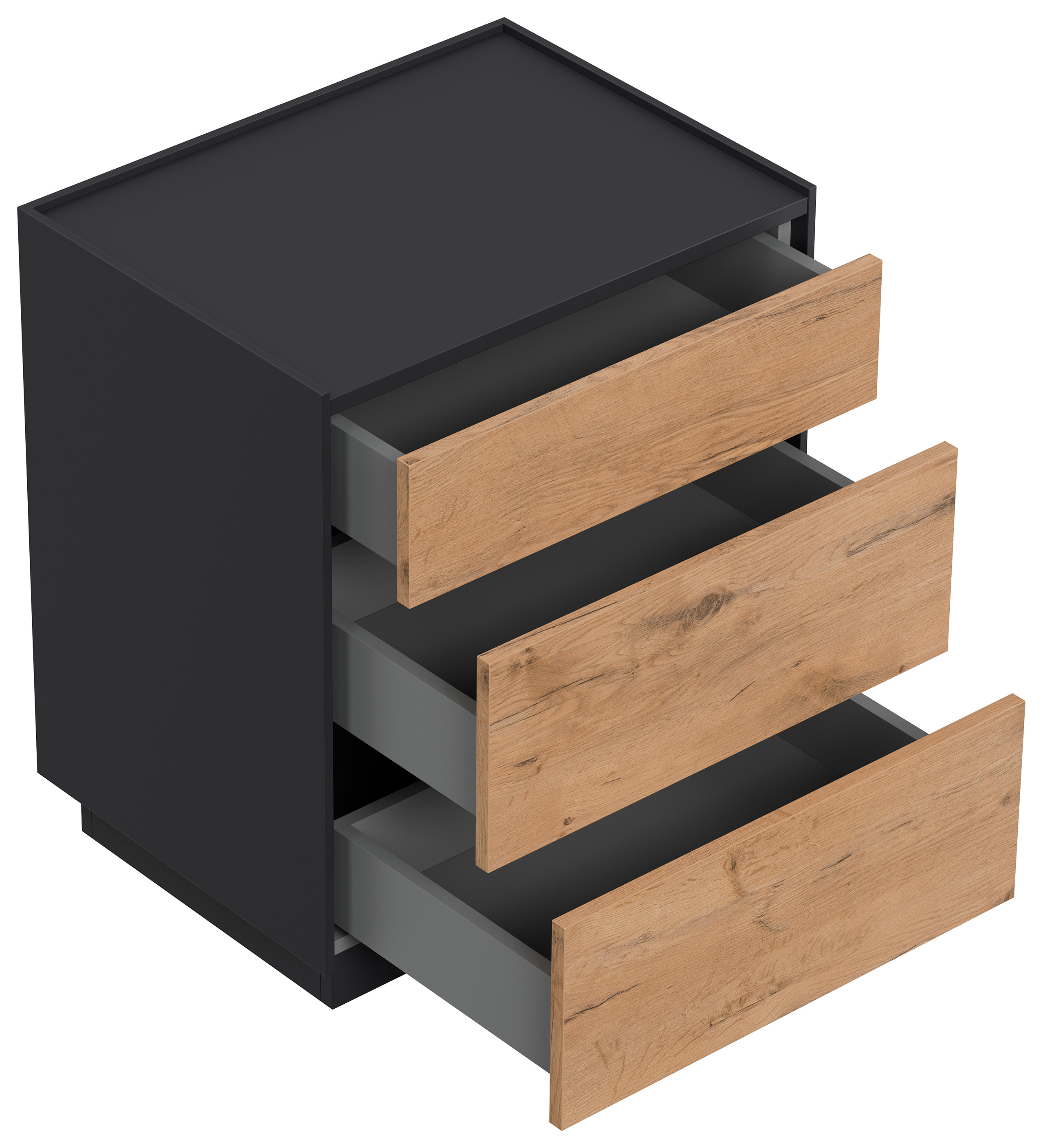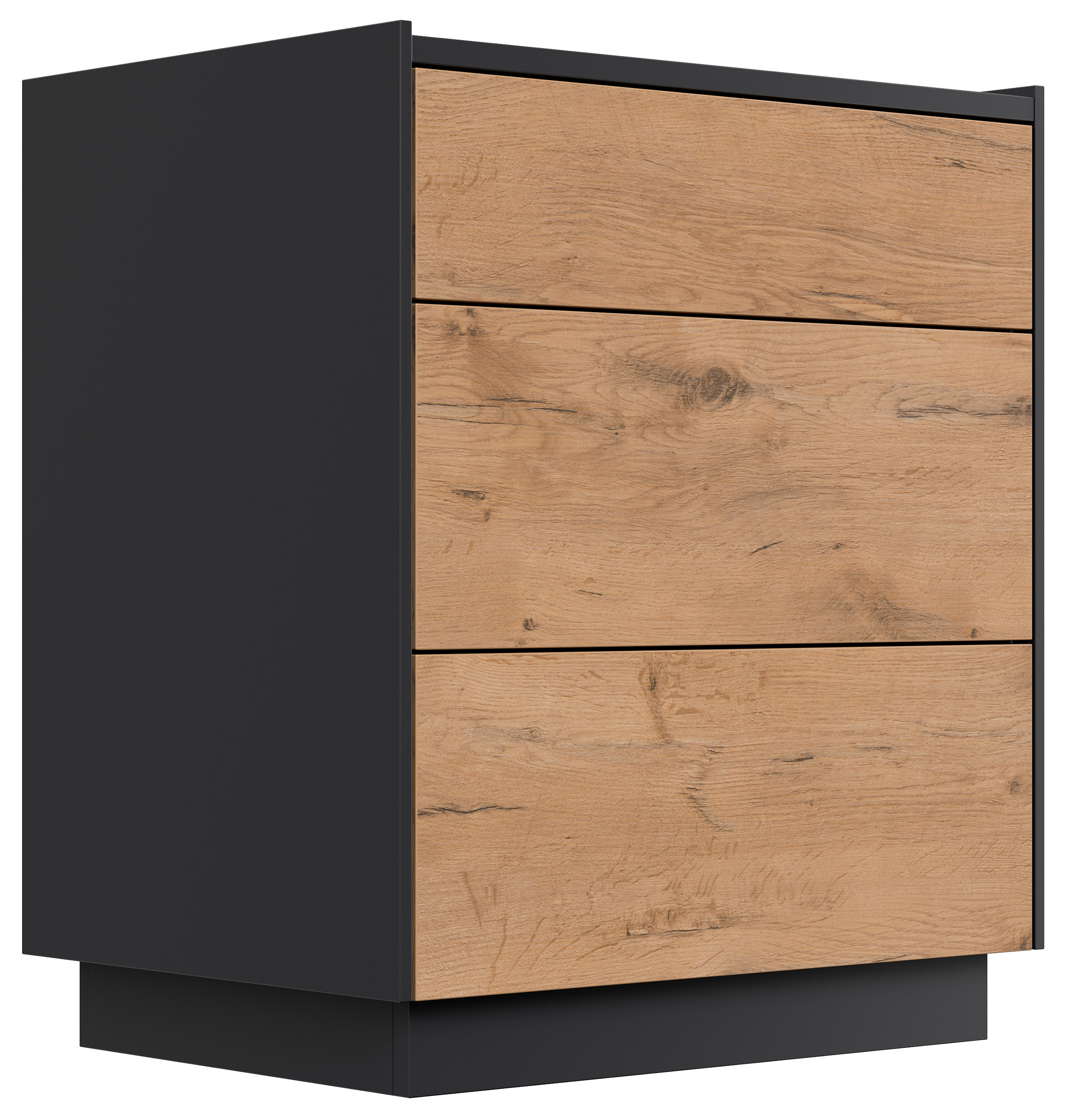 Design Nachttisch Kommode Lux L 60cm, 3 Pushauszüge Oak
