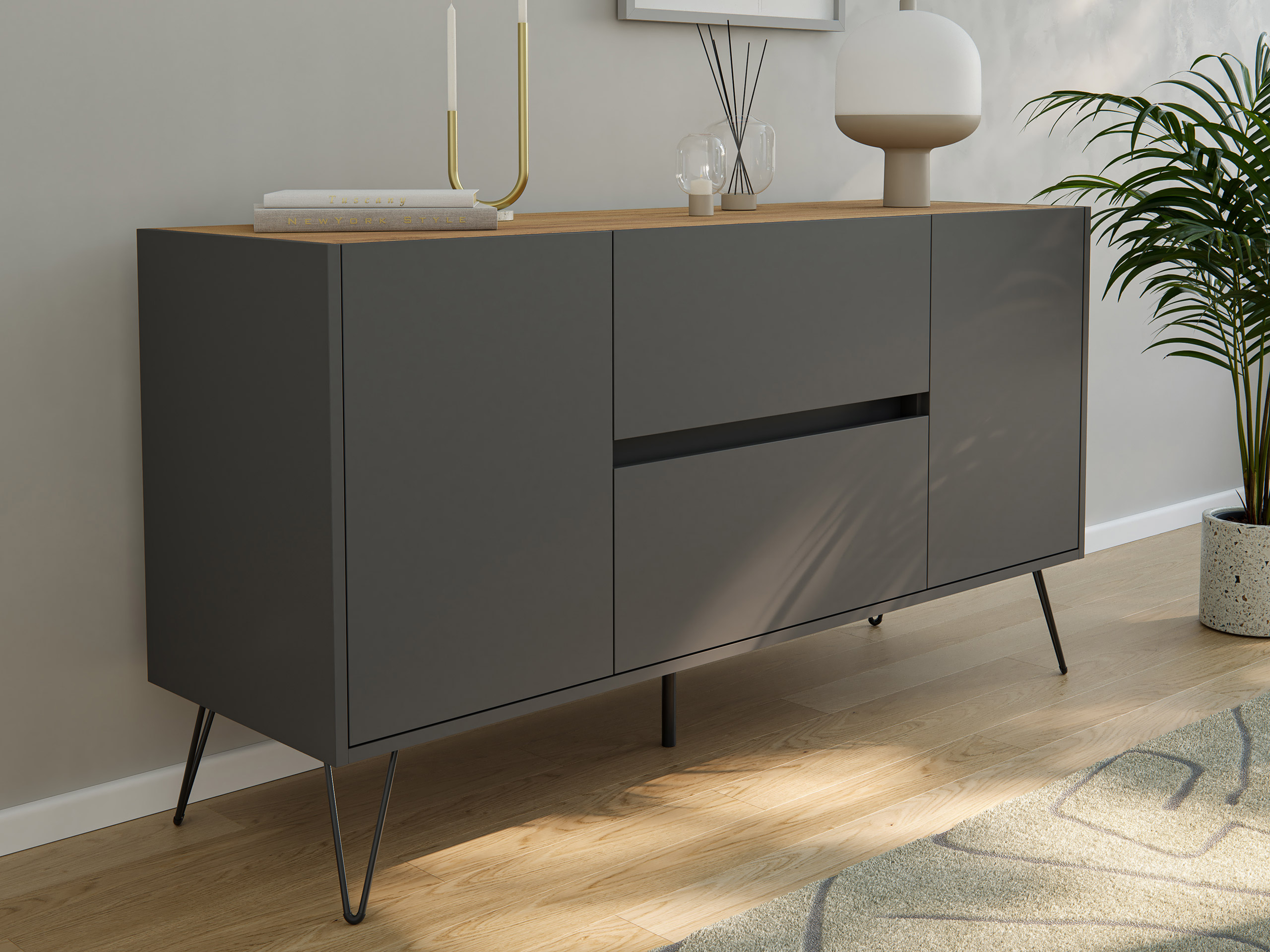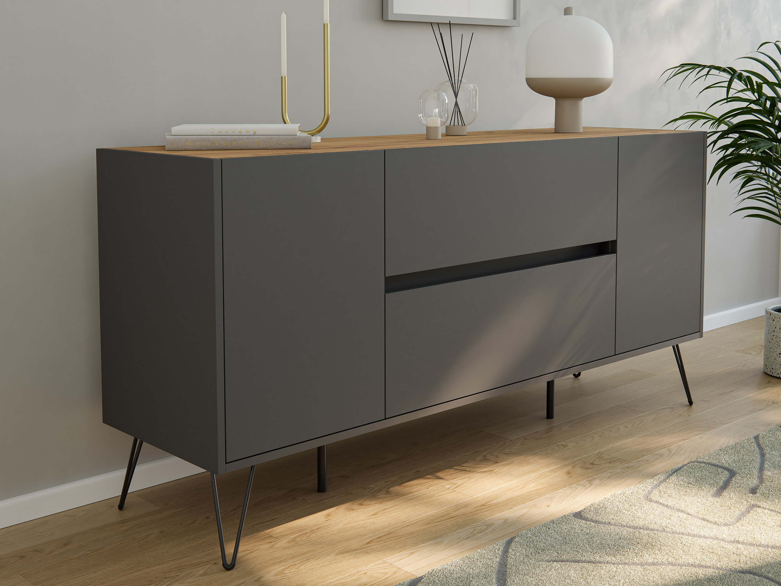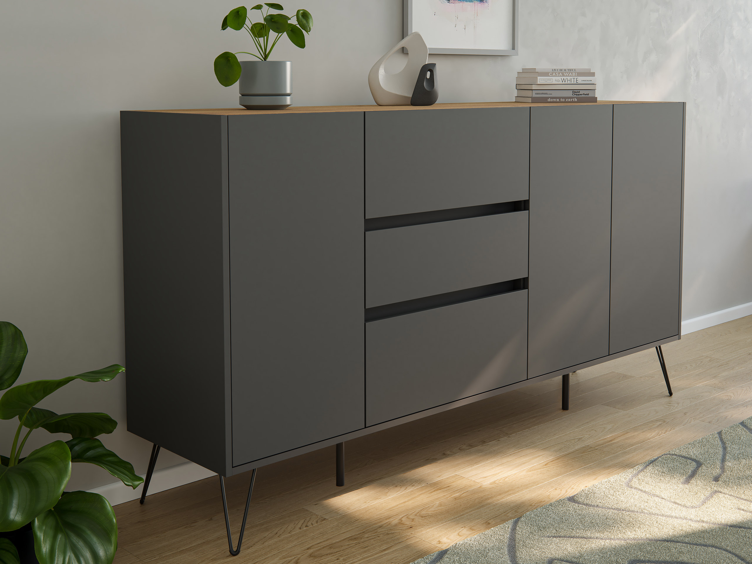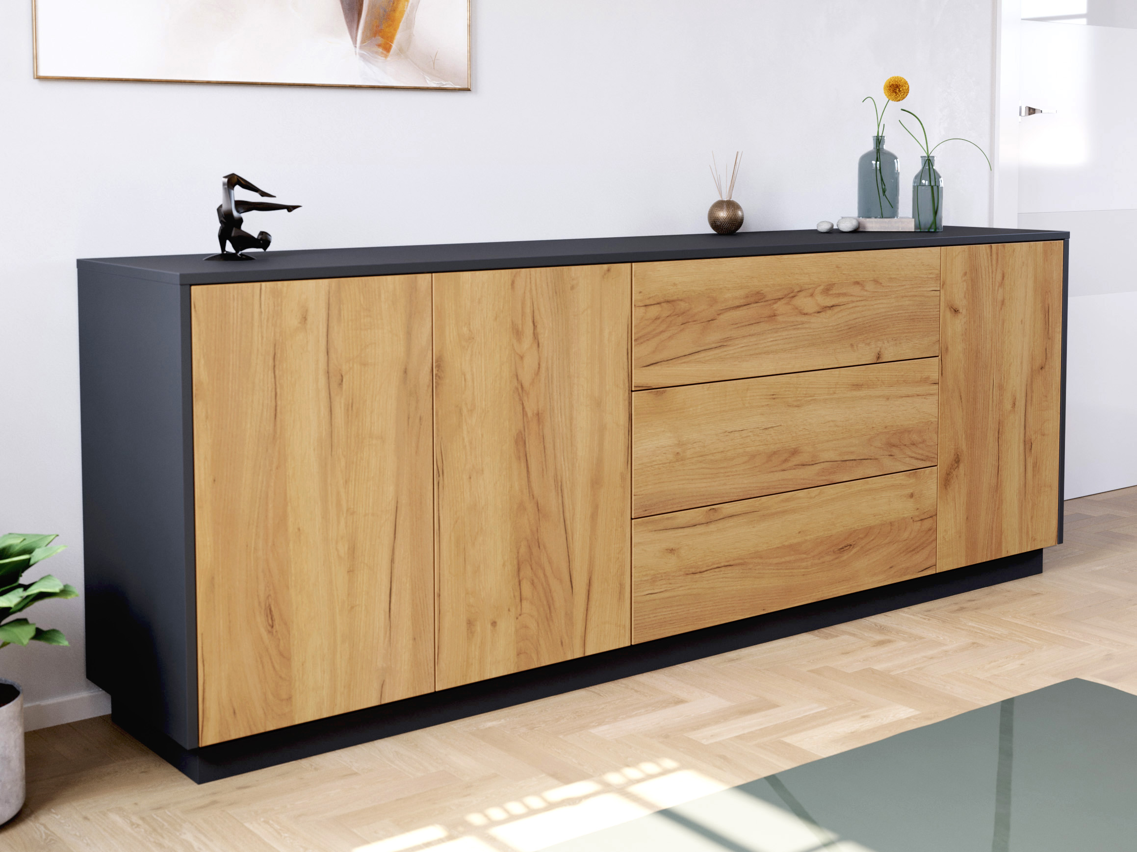 - Stabile Fronten und robuster Korpus: Die Fronten sind 18-19 mm dick. Deckplatte sowie Boden sind 16 mm dick. Die Rückwand ist eine leichte und solide 5 mm HDF (hochdichte Faserplatte).