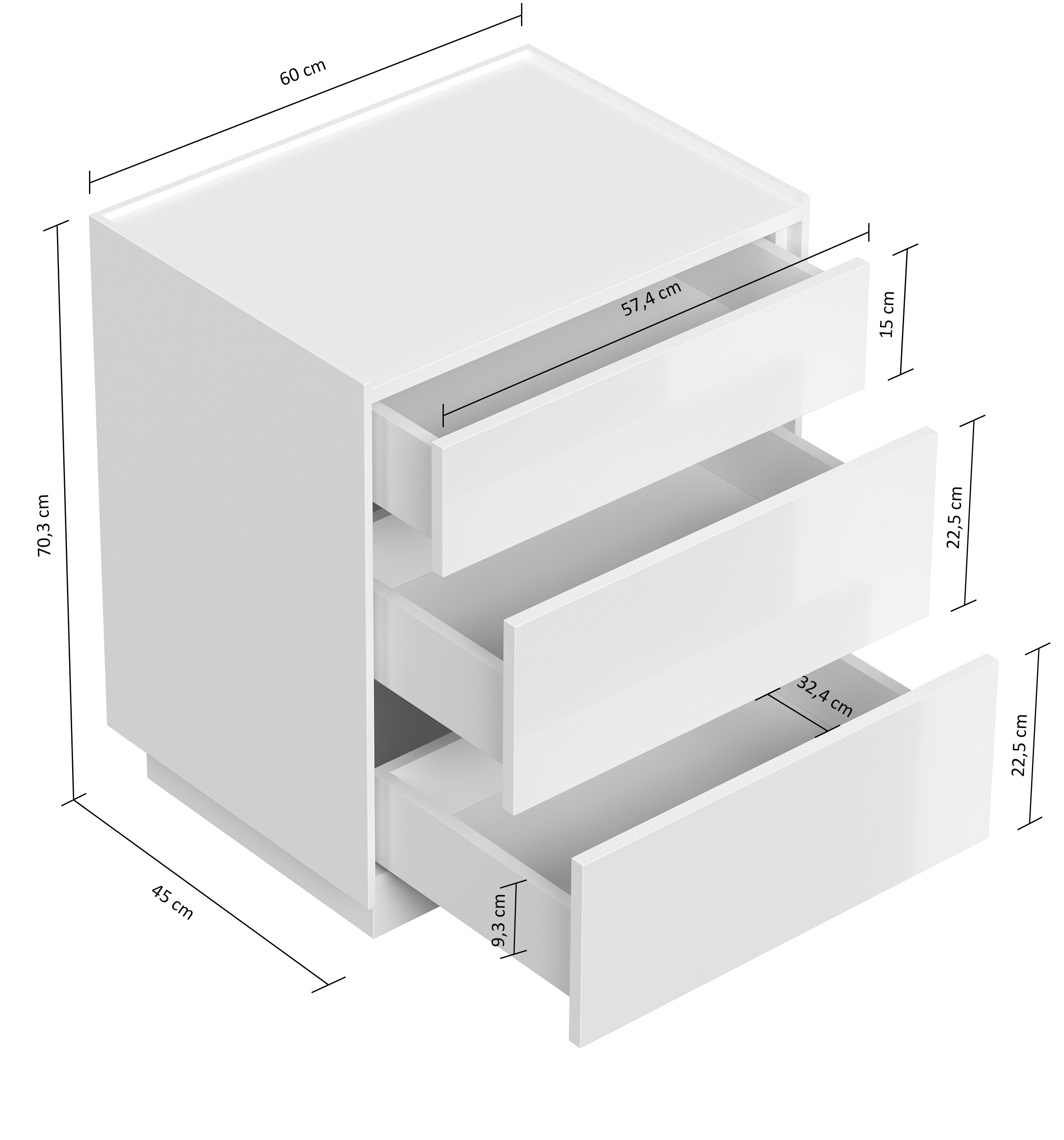 Maße (H/B/T): 70.3 / 60 / 45 cm