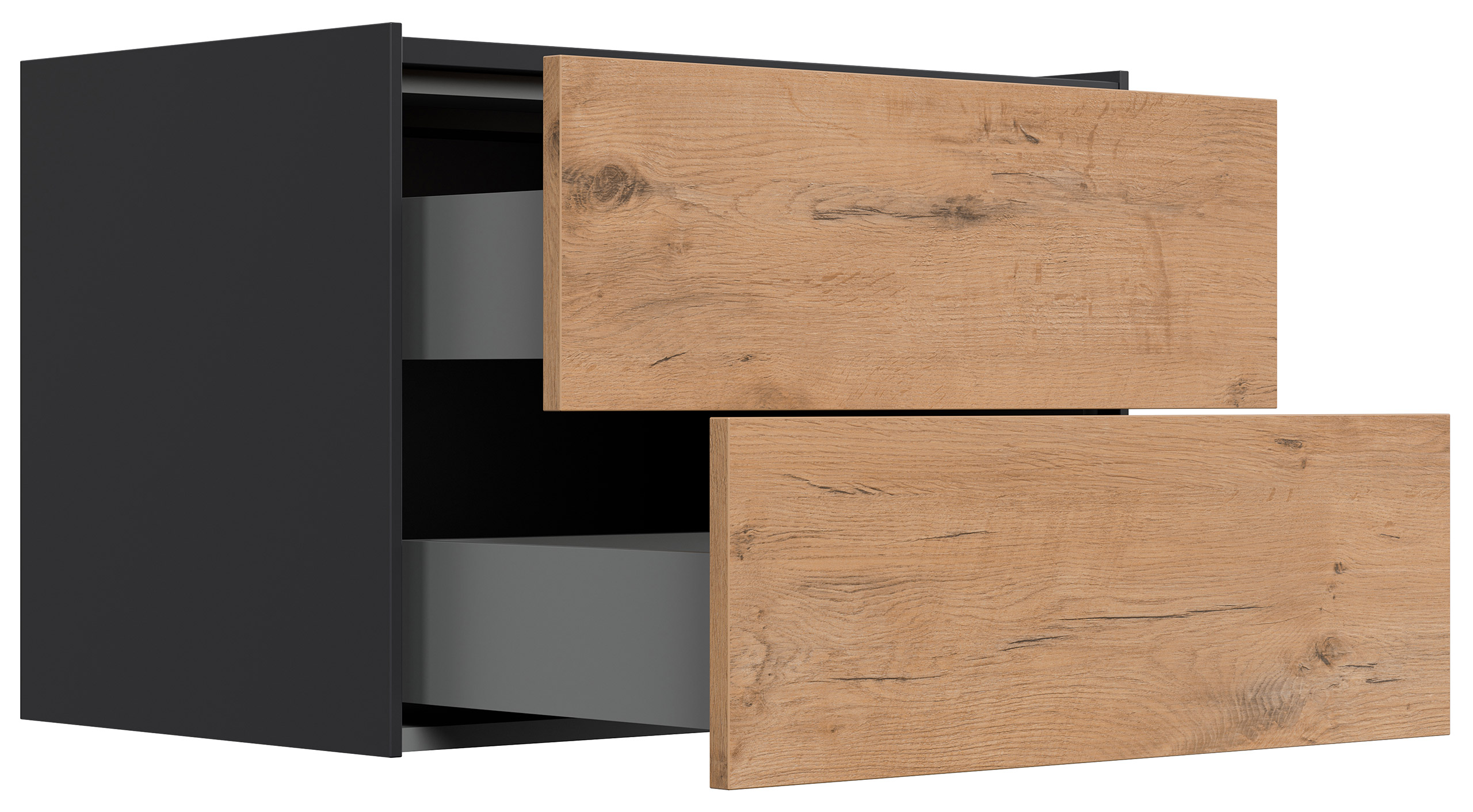 - Innenleben: Mit mattfarbenem Melamin sind die Schubladen beschichtet, in der Regel ebenso ggf. die Innenflächen der Rückwände und Türen.