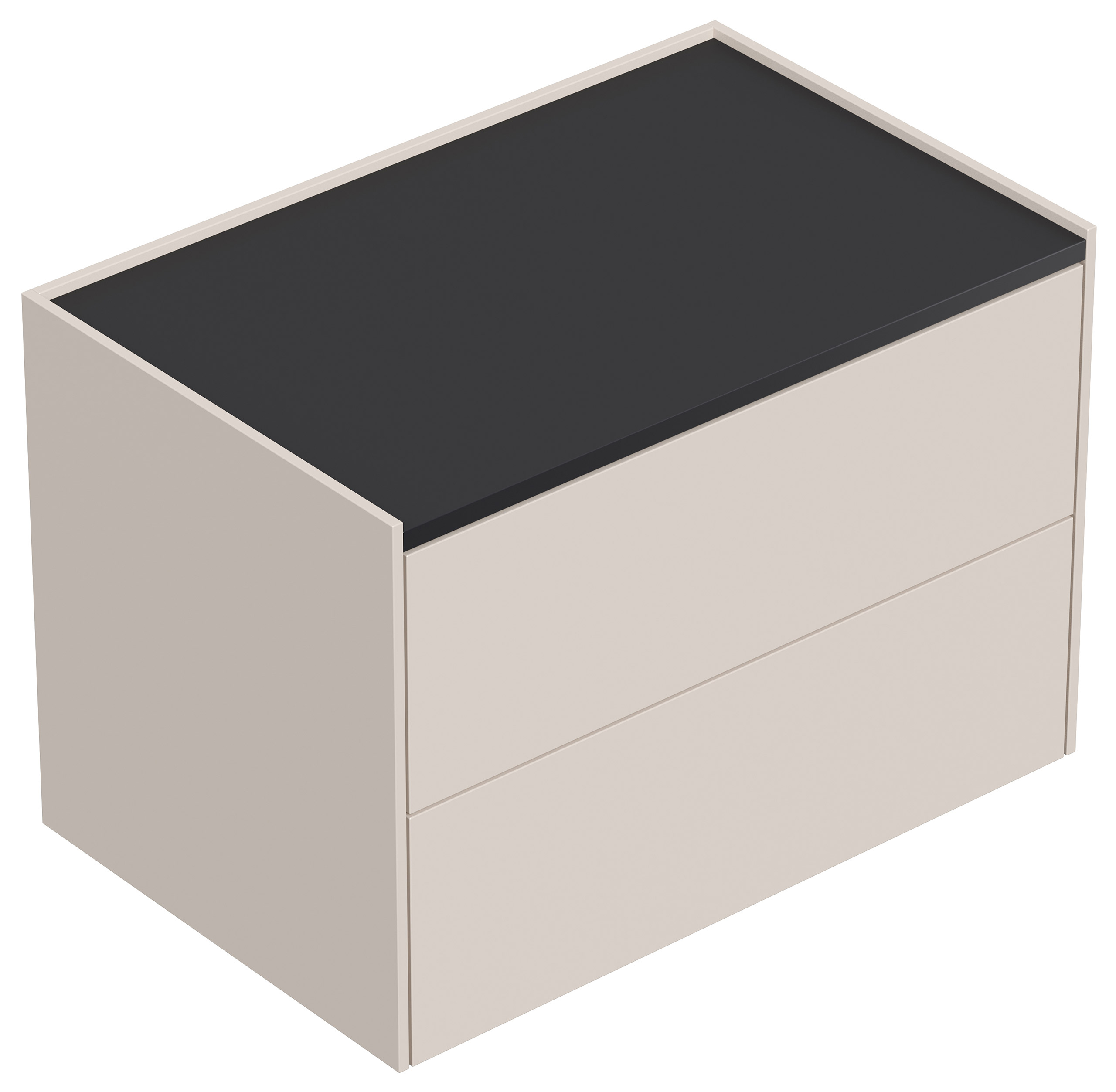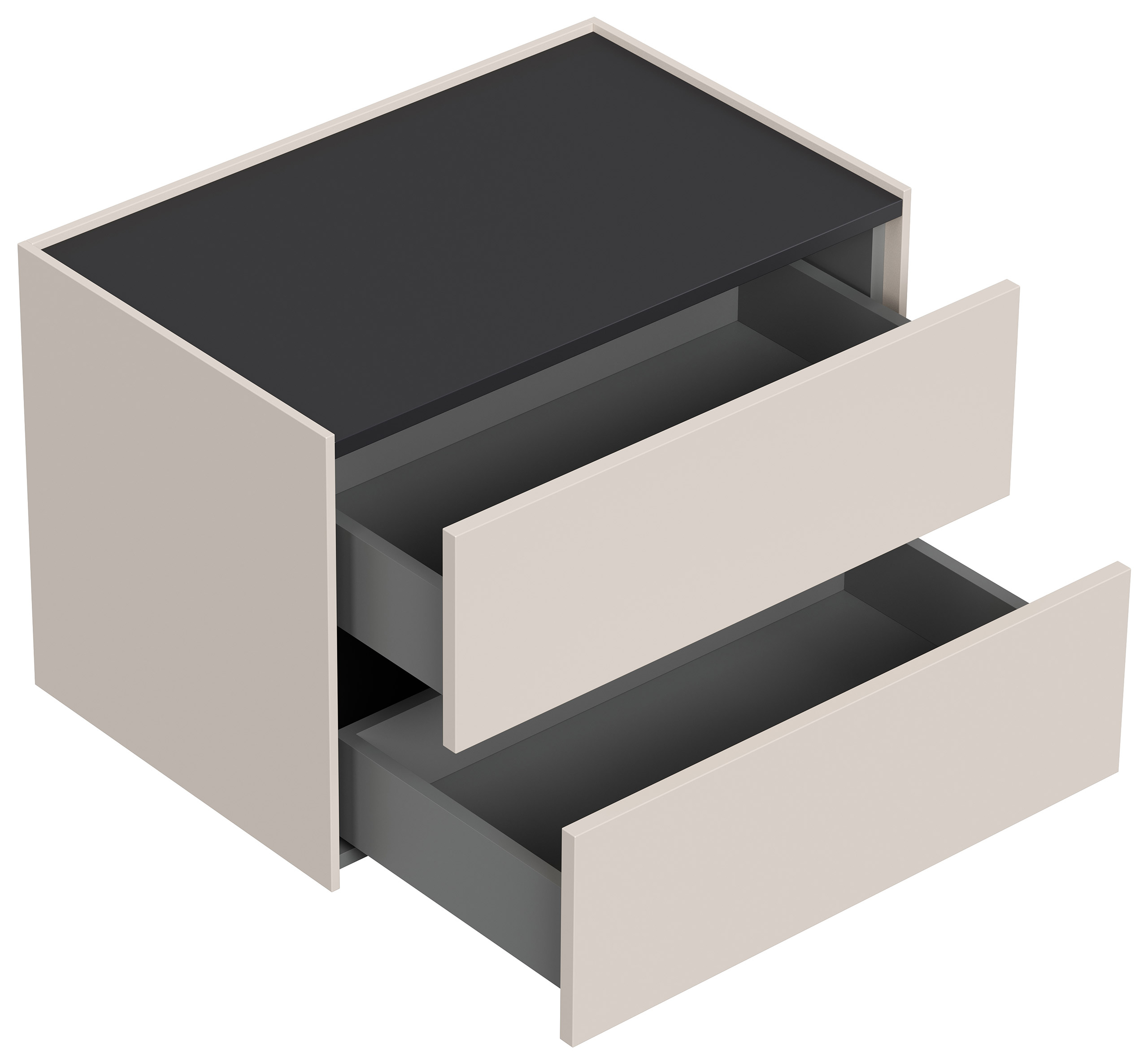 Design Nachttisch Kommode Somnia XL 70cm, 2 Pushauszüge lackiert Creme Grafit