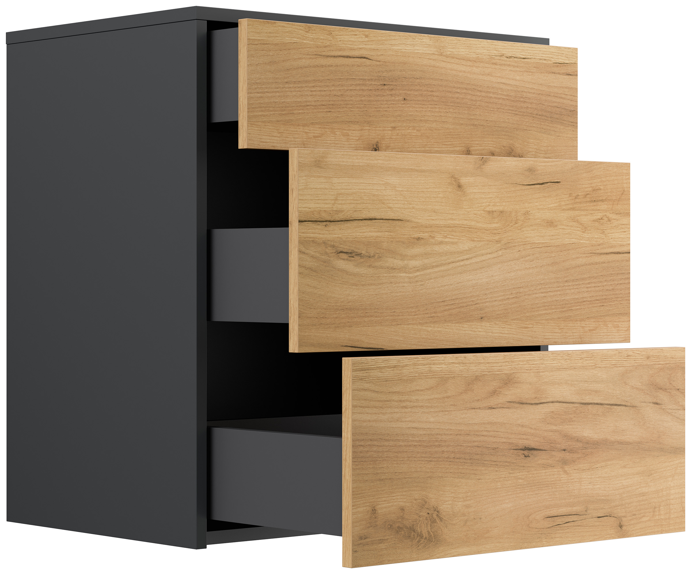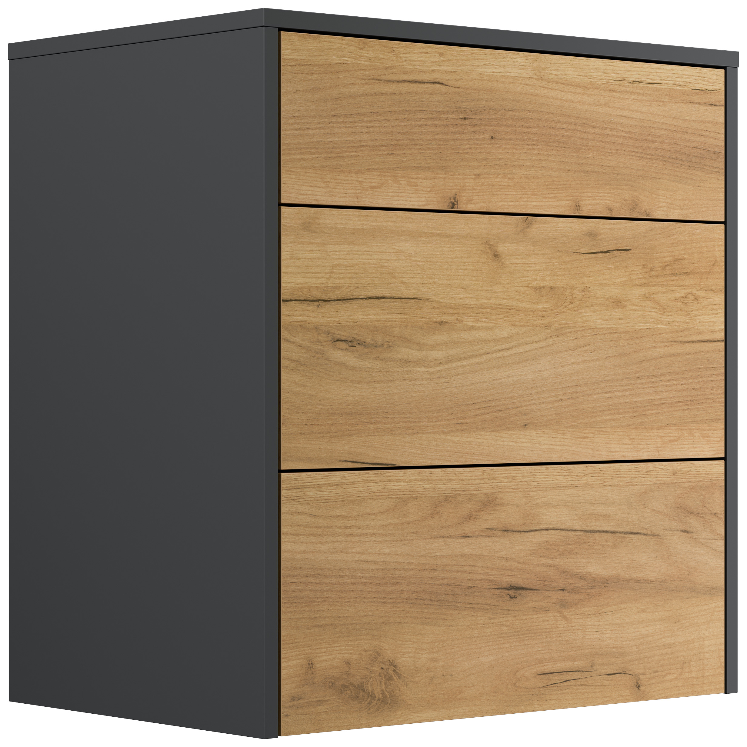 Design Nachttisch Lux L 60cm hängend, 3 Pushauszüge Grafit Eiche