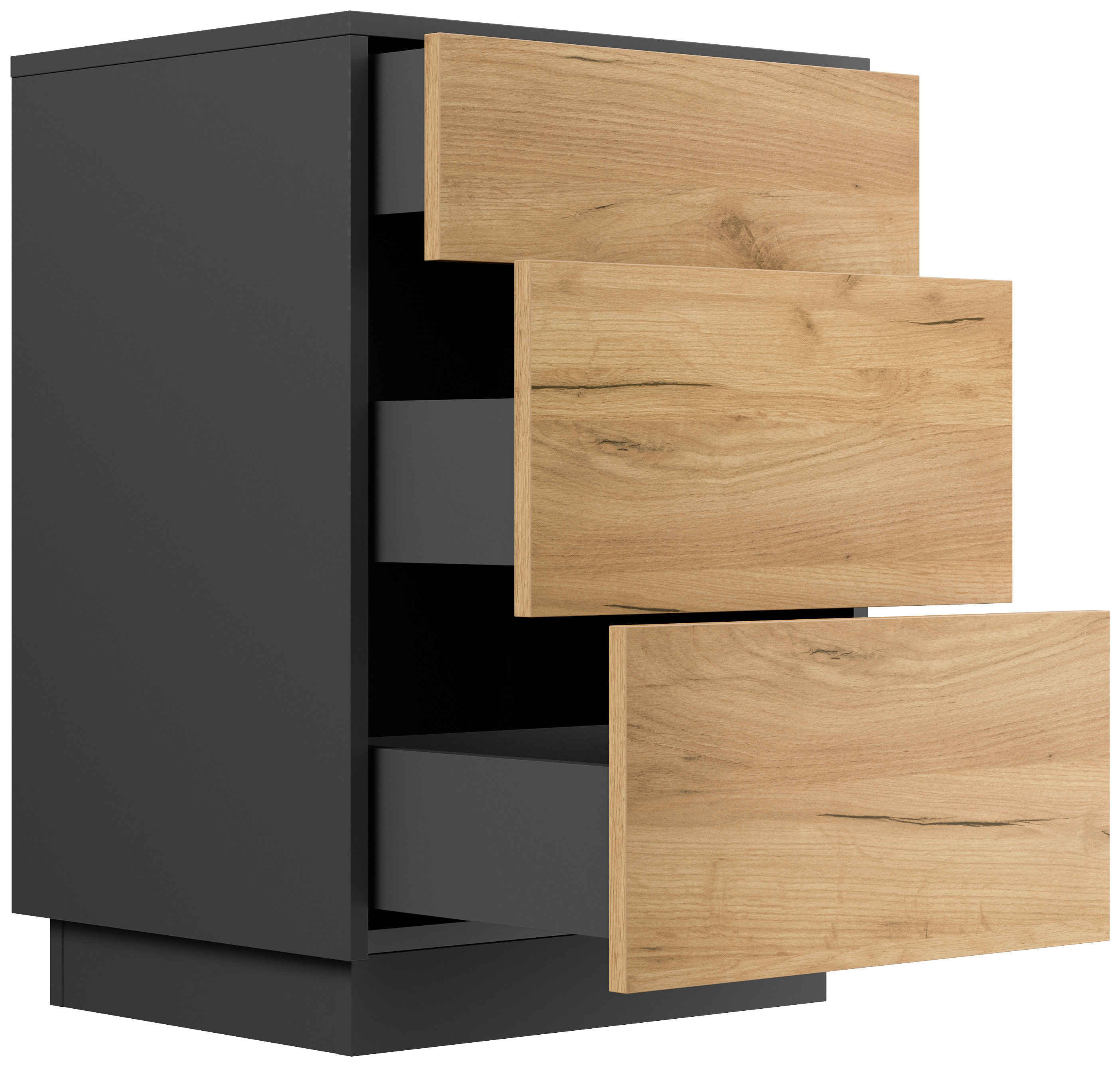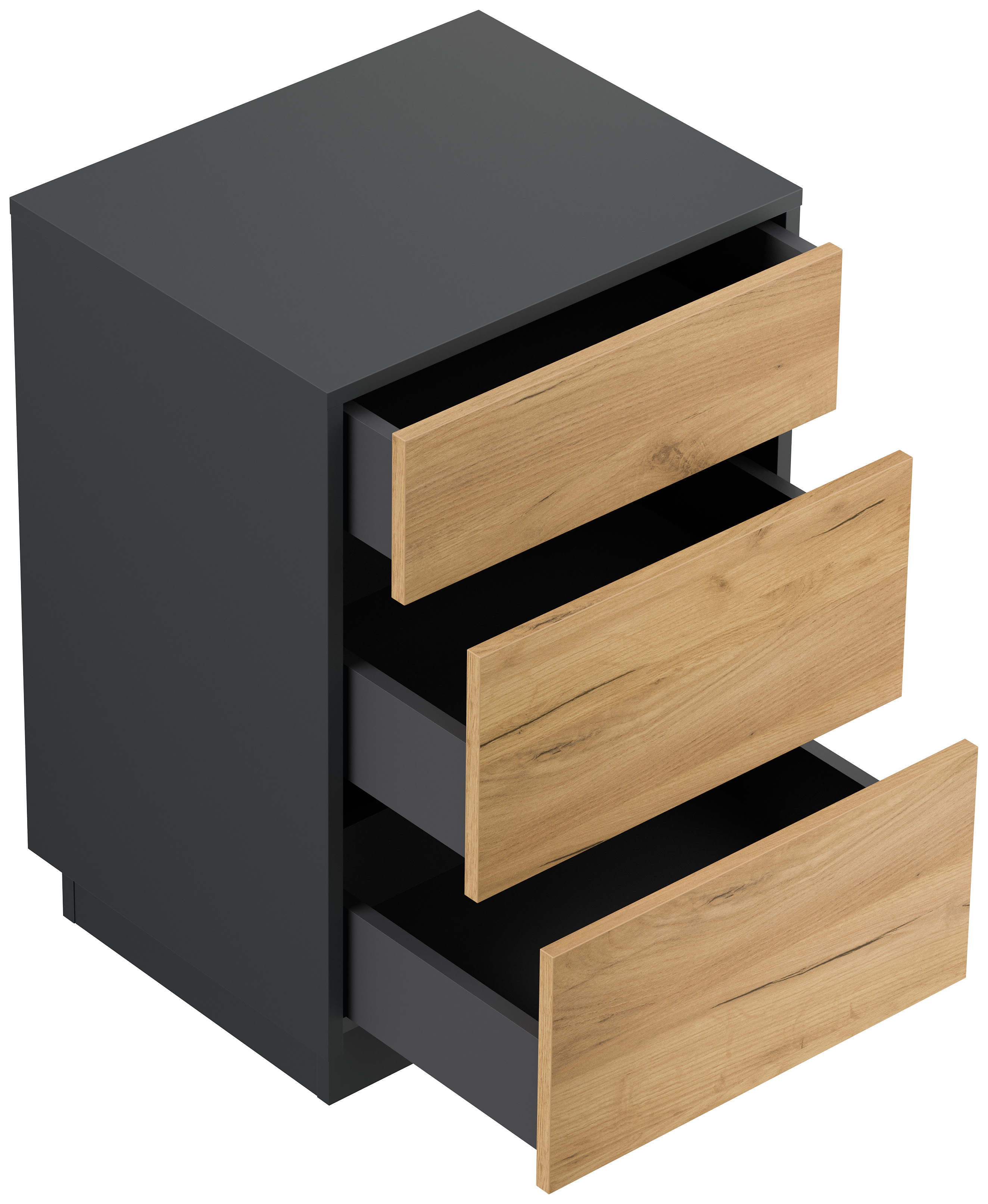 Design Nachttisch Lux M 50cm stehend, 3 Pushauszüge Grafit Eiche