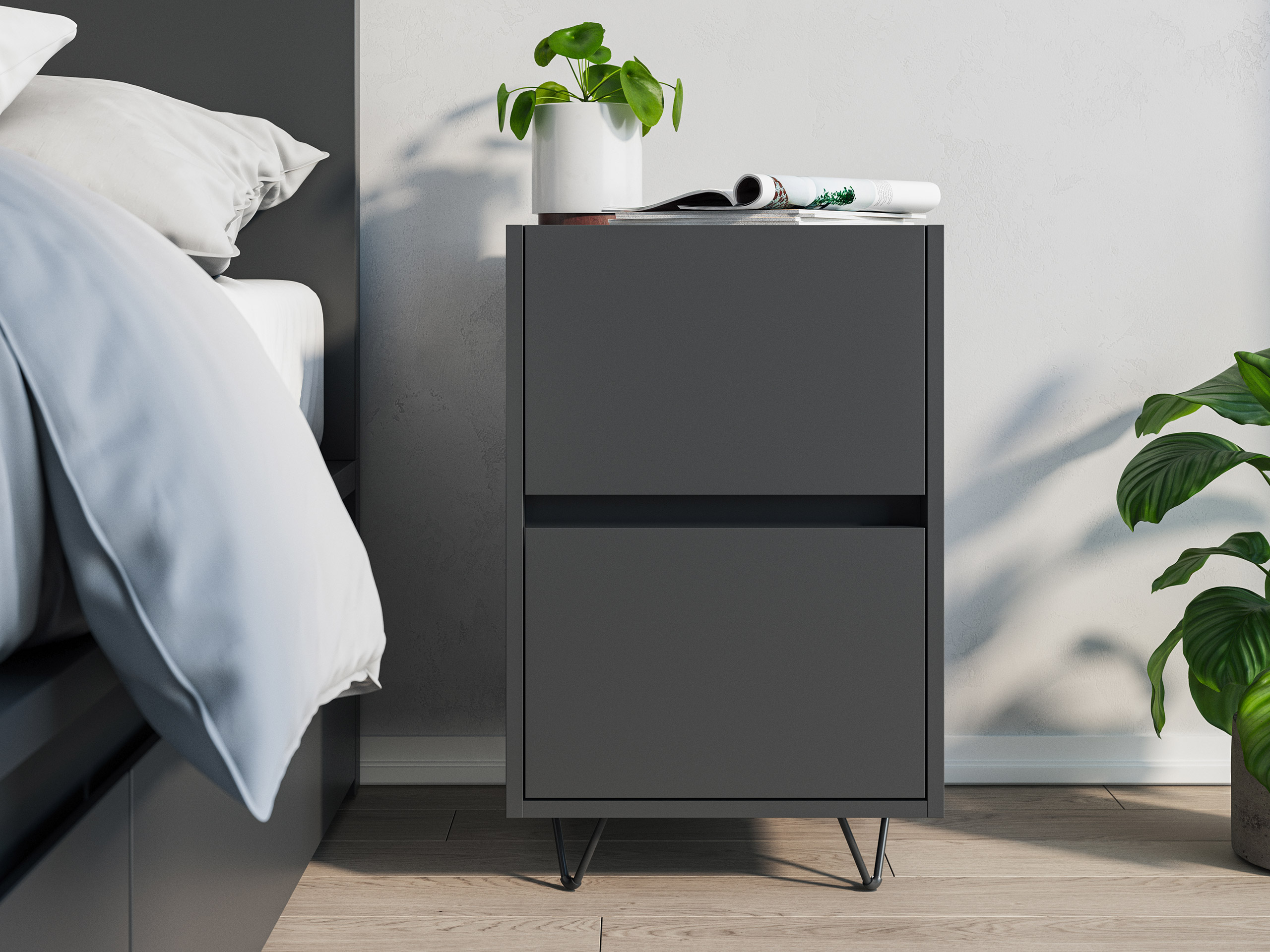 Design Nachttisch Lux M 50cm stehend, 3 Pushauszüge Grafit