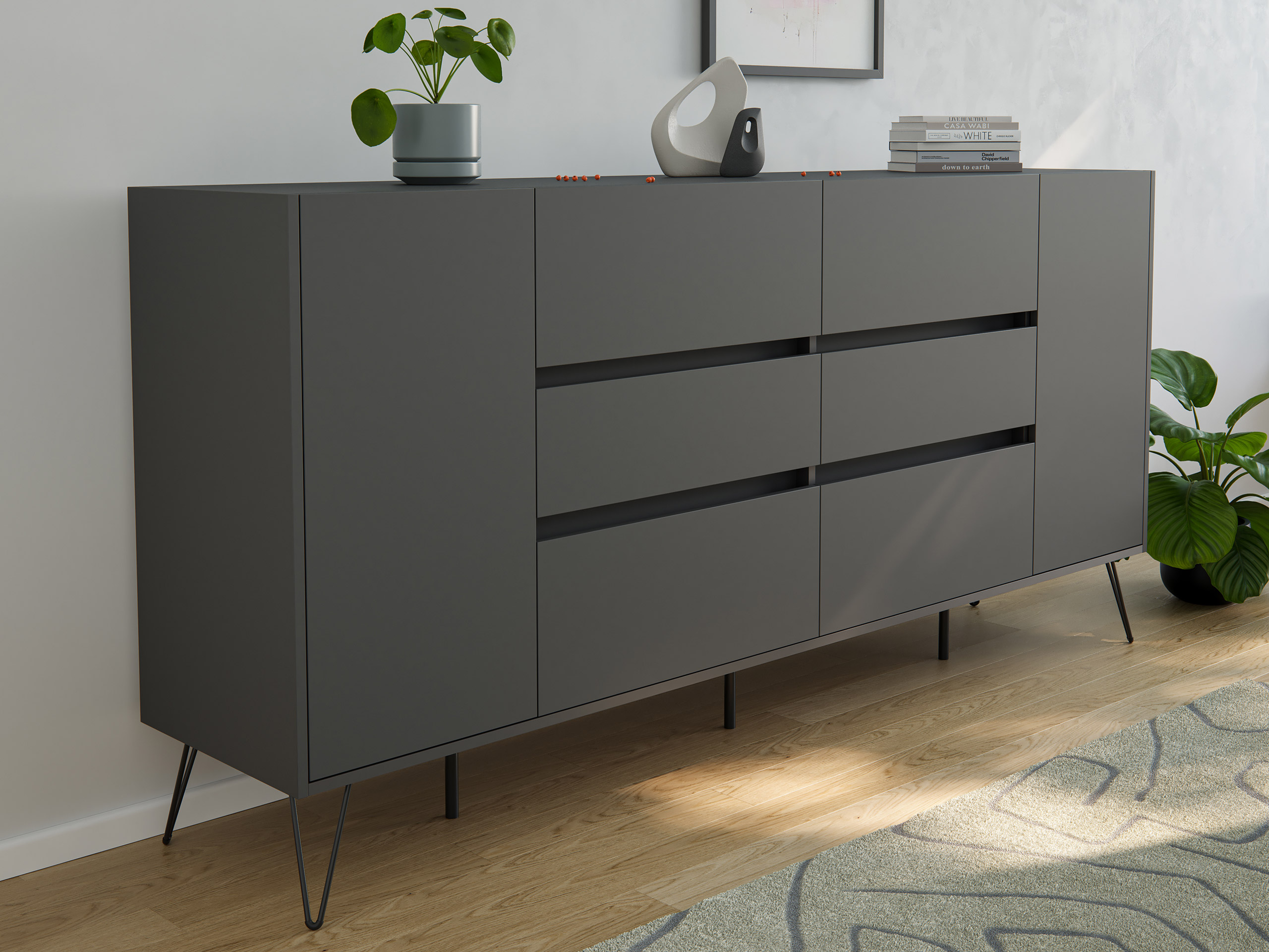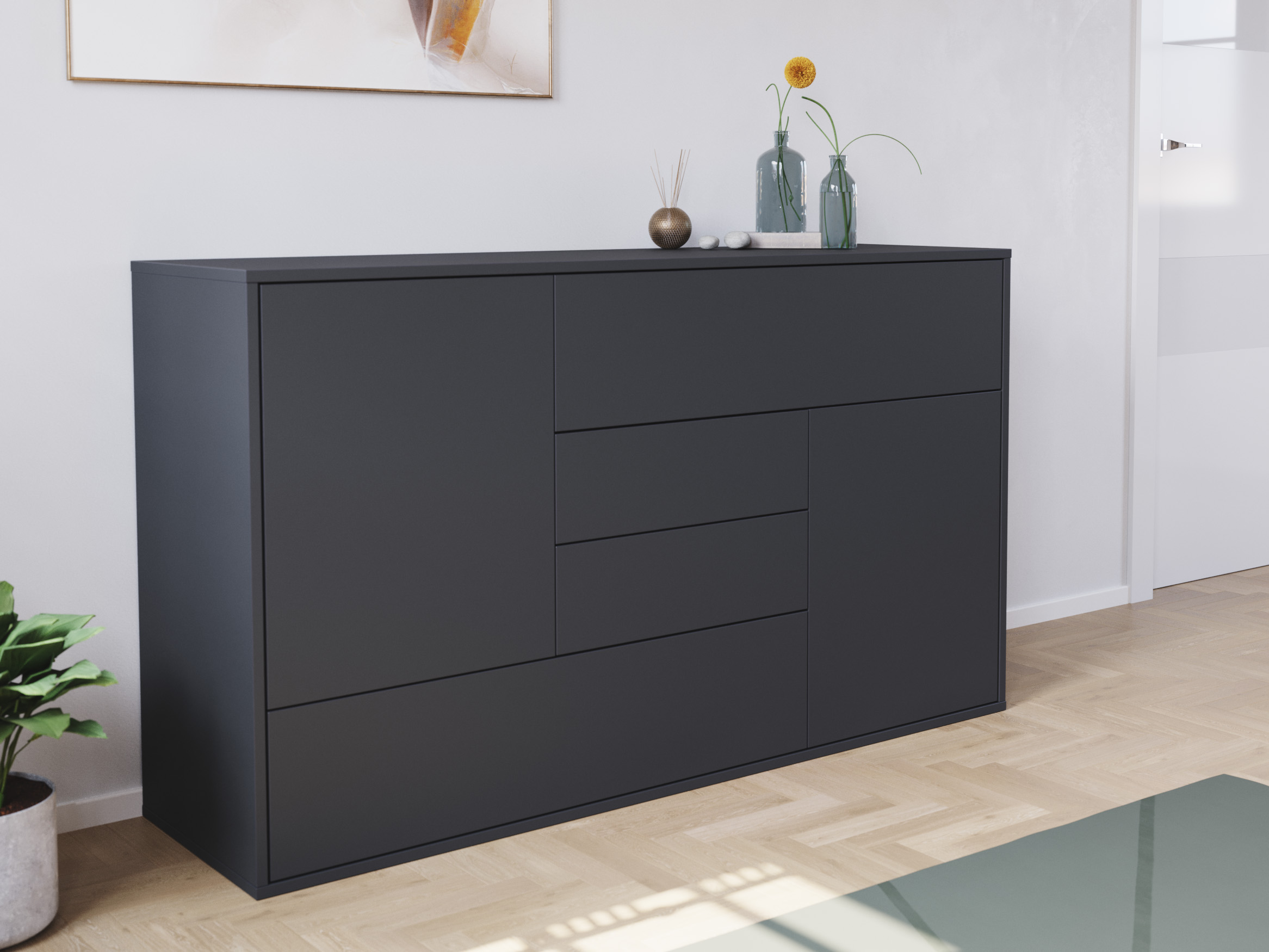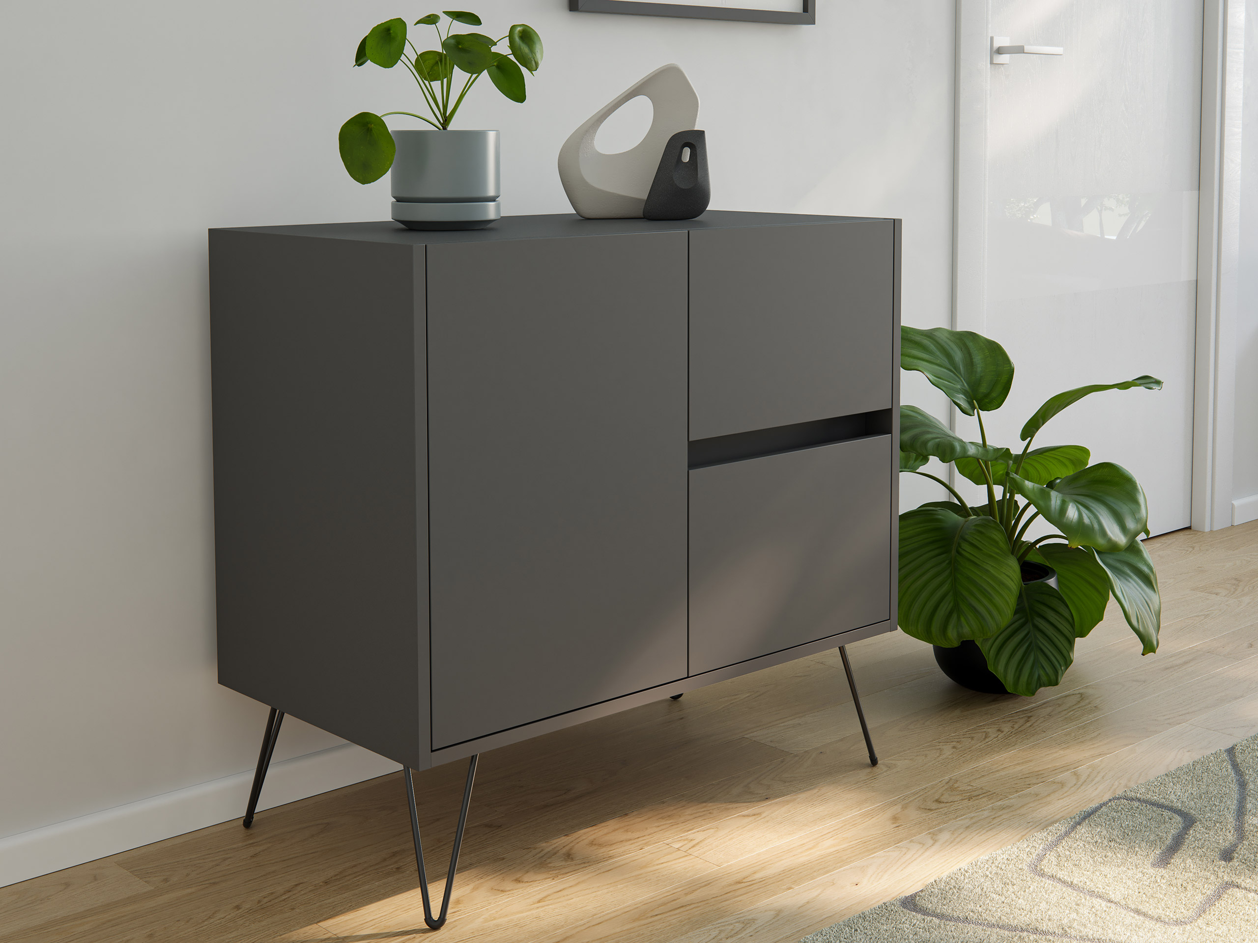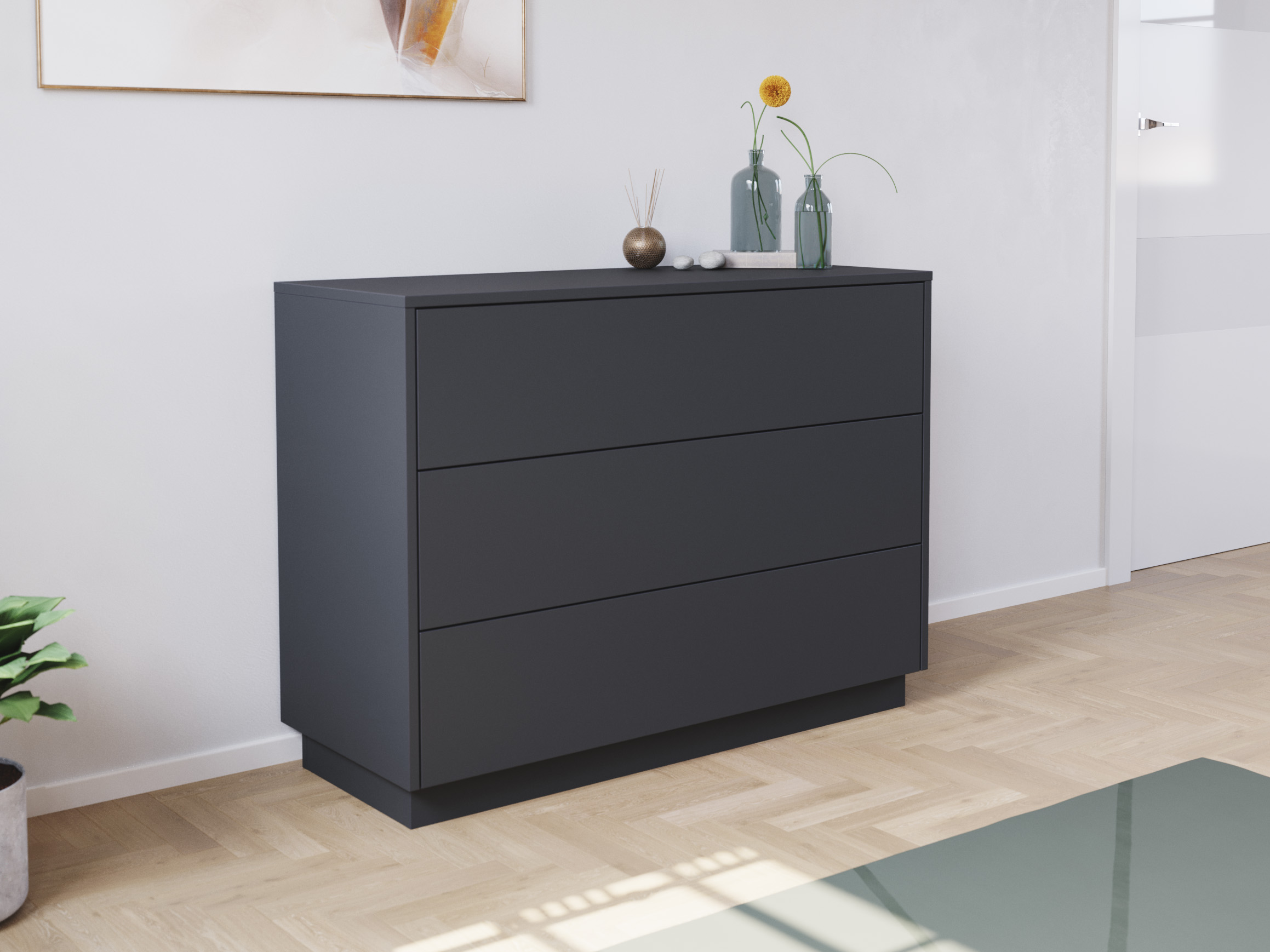 - Innenleben: Mit mattfarbenem Melamin sind die Schubladen beschichtet, in der Regel ebenso ggf. die Innenflächen der Rückwände und Türen.