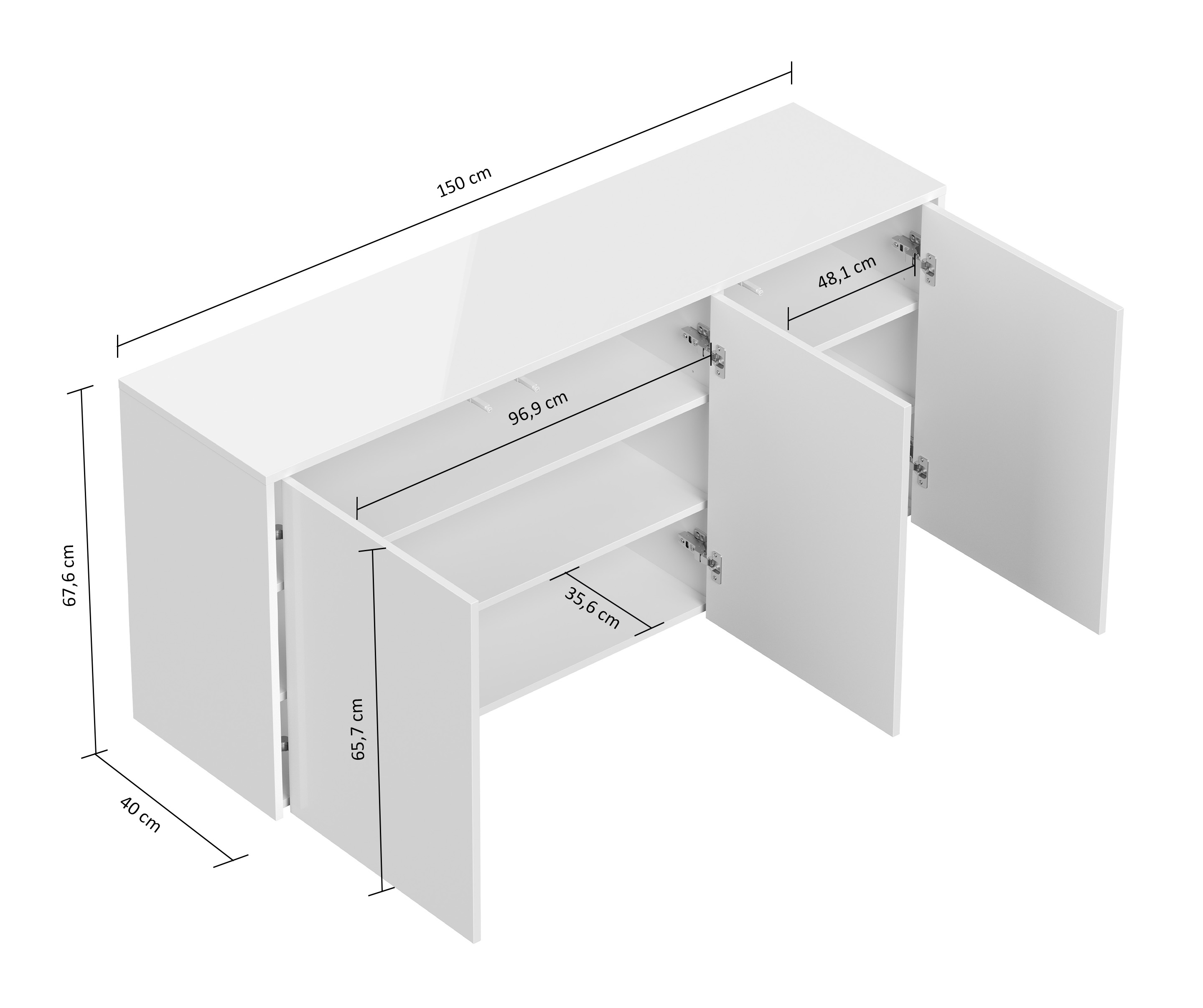 Design Sideboard Kommode Genesis B hängend 150cm 3 Türen Weiß Hgl
