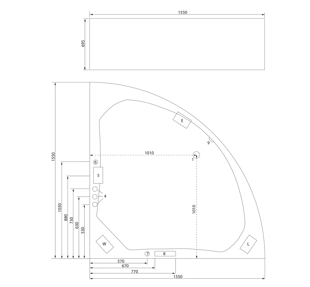 - Anschlussfertige Whirlpool-Wanne (Made in Germany) mit Rahmen auf höhenverstellbaren Füßen.