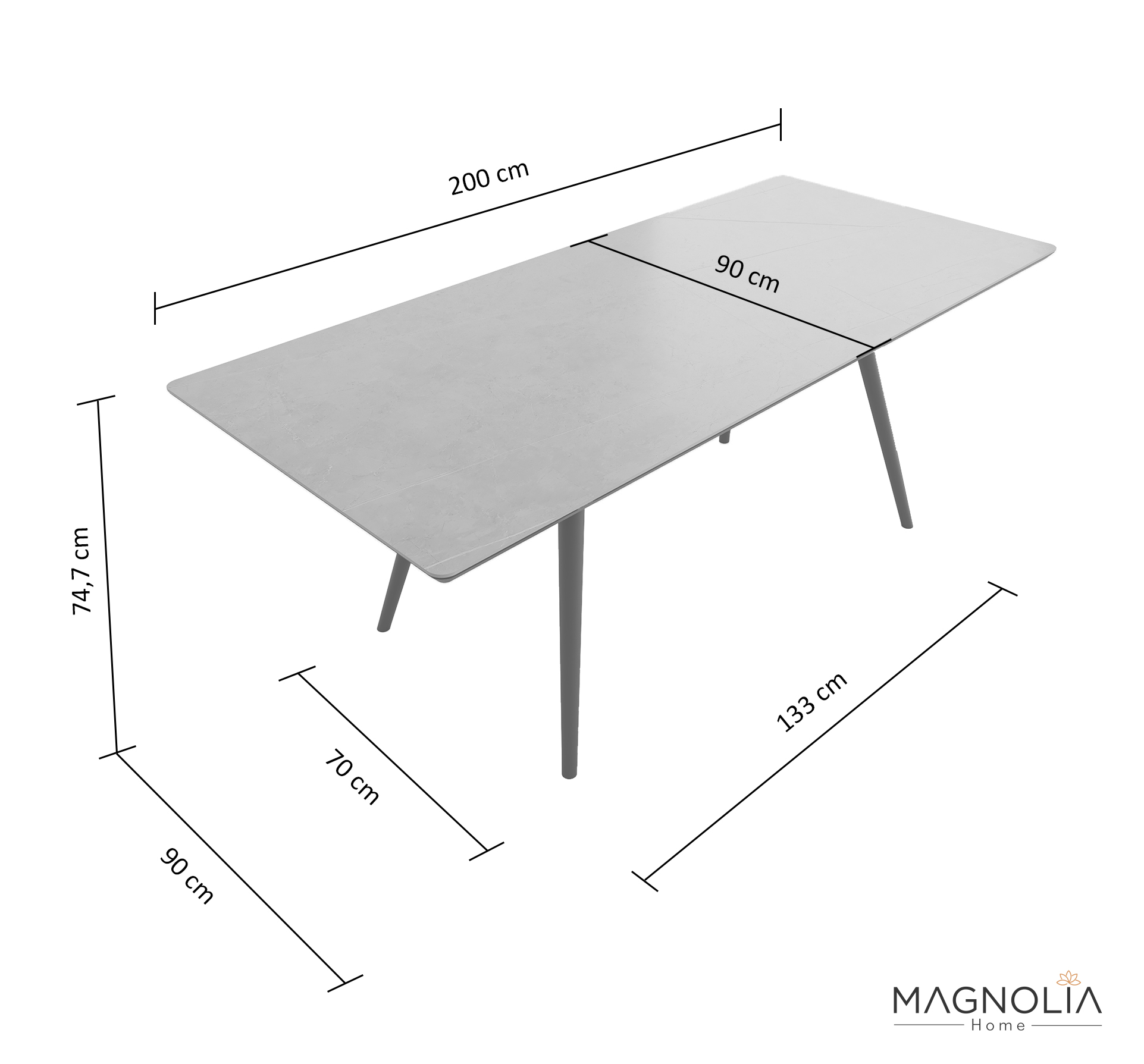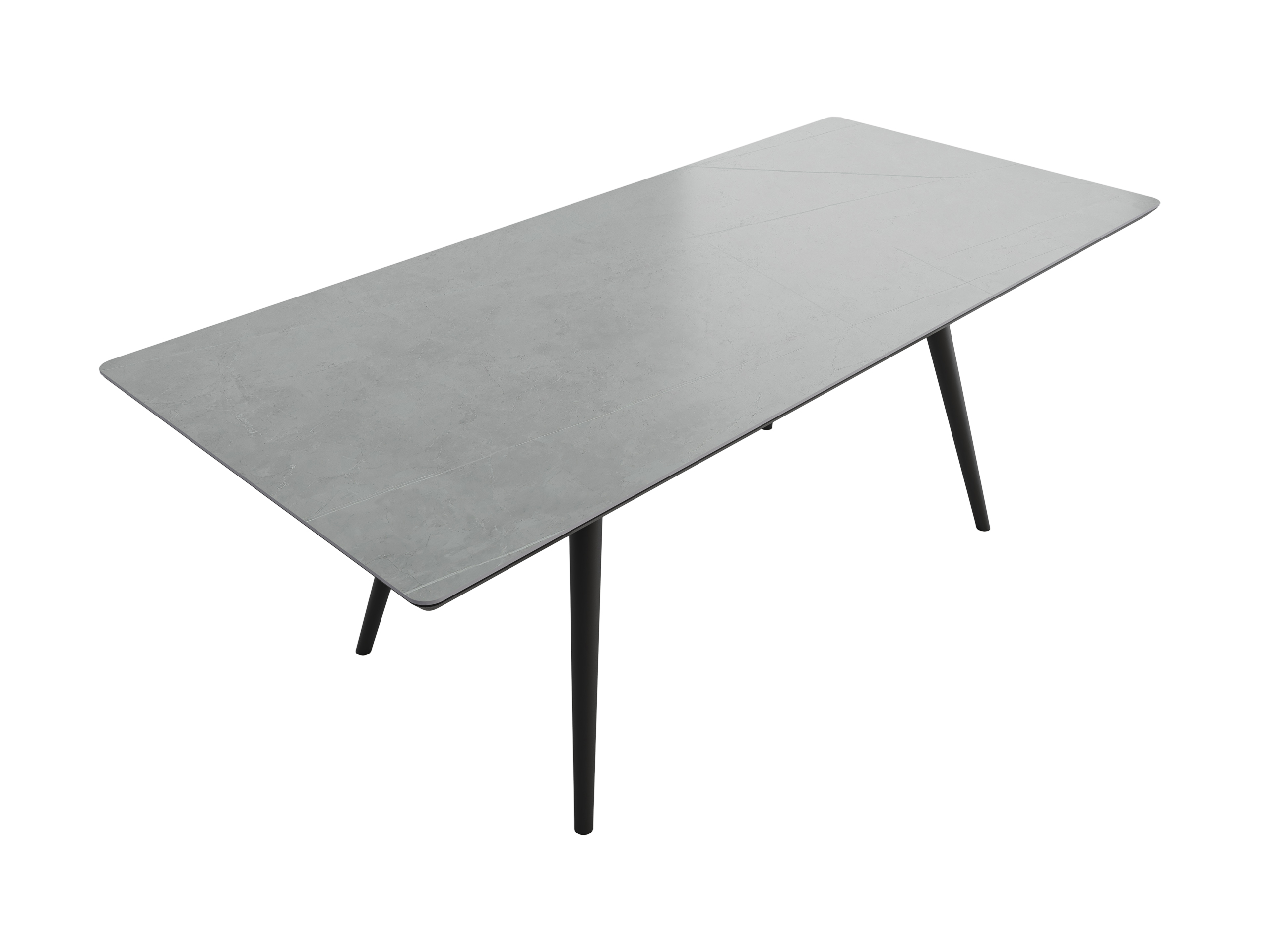 Esstisch 200x90cm graue Keramikplatte schwarze konische Tischbeine