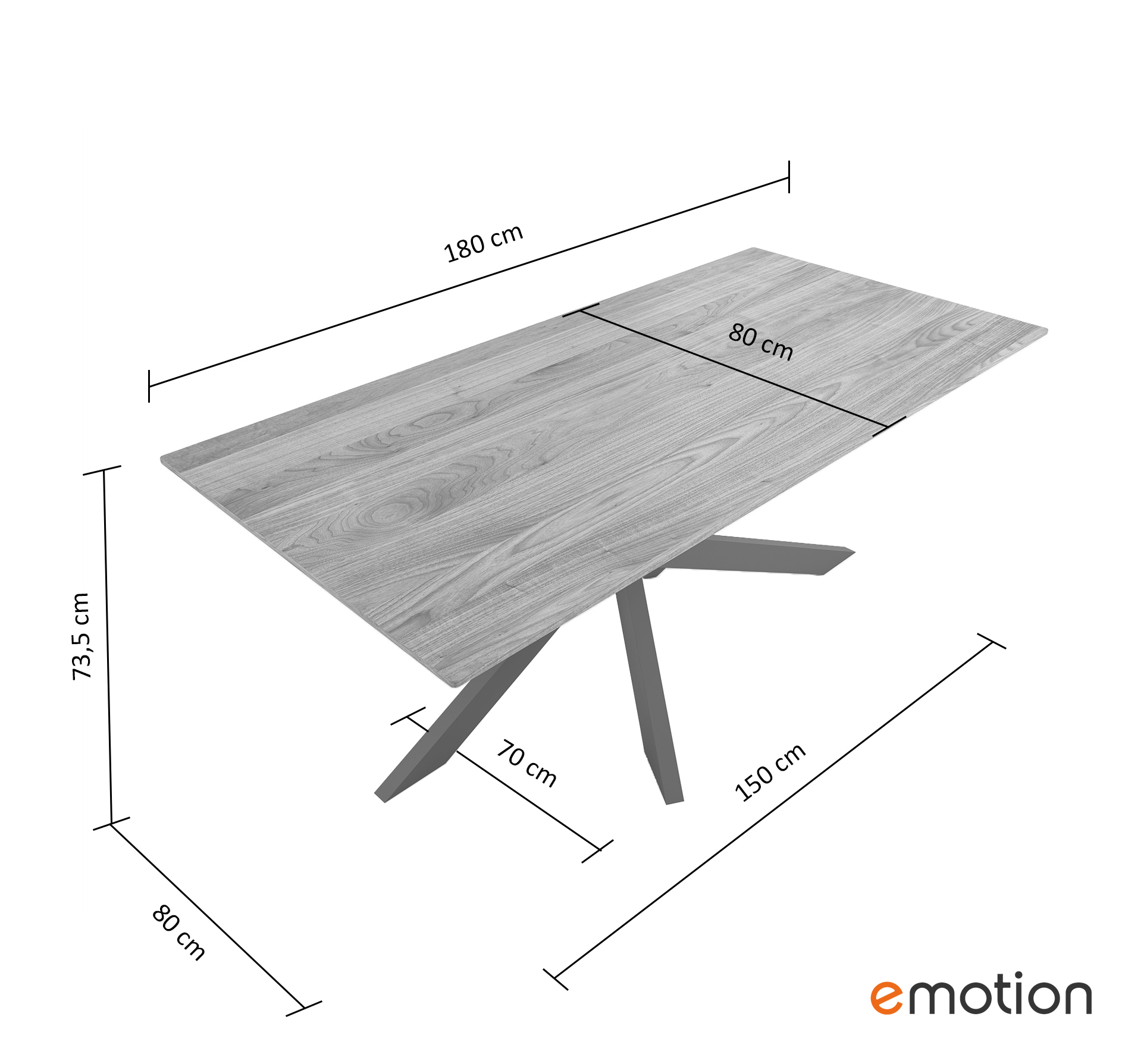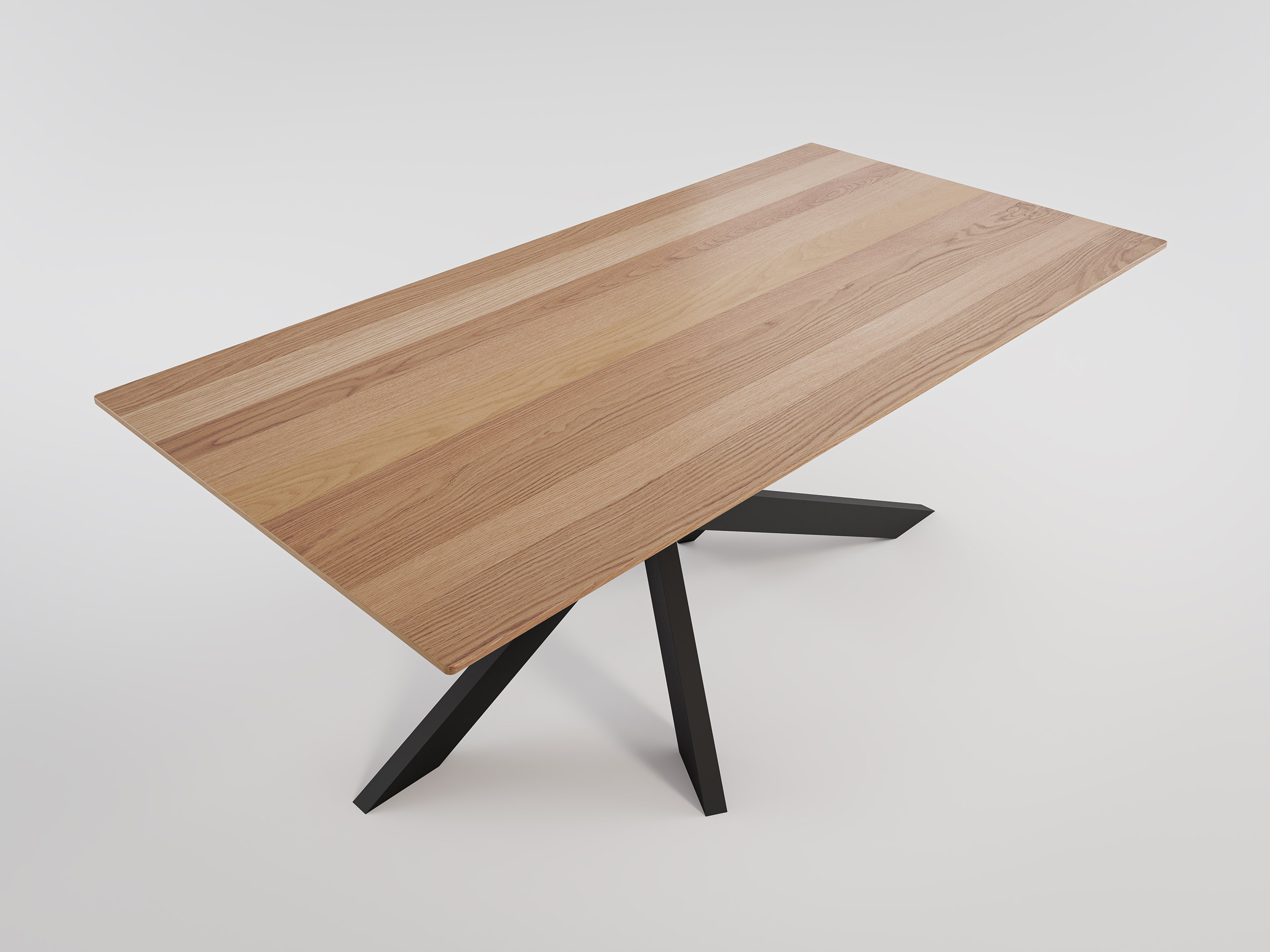 Esstisch ELLEN 180x90cm Eiche Furnier lackiert schwarzes Kreuzgestell
