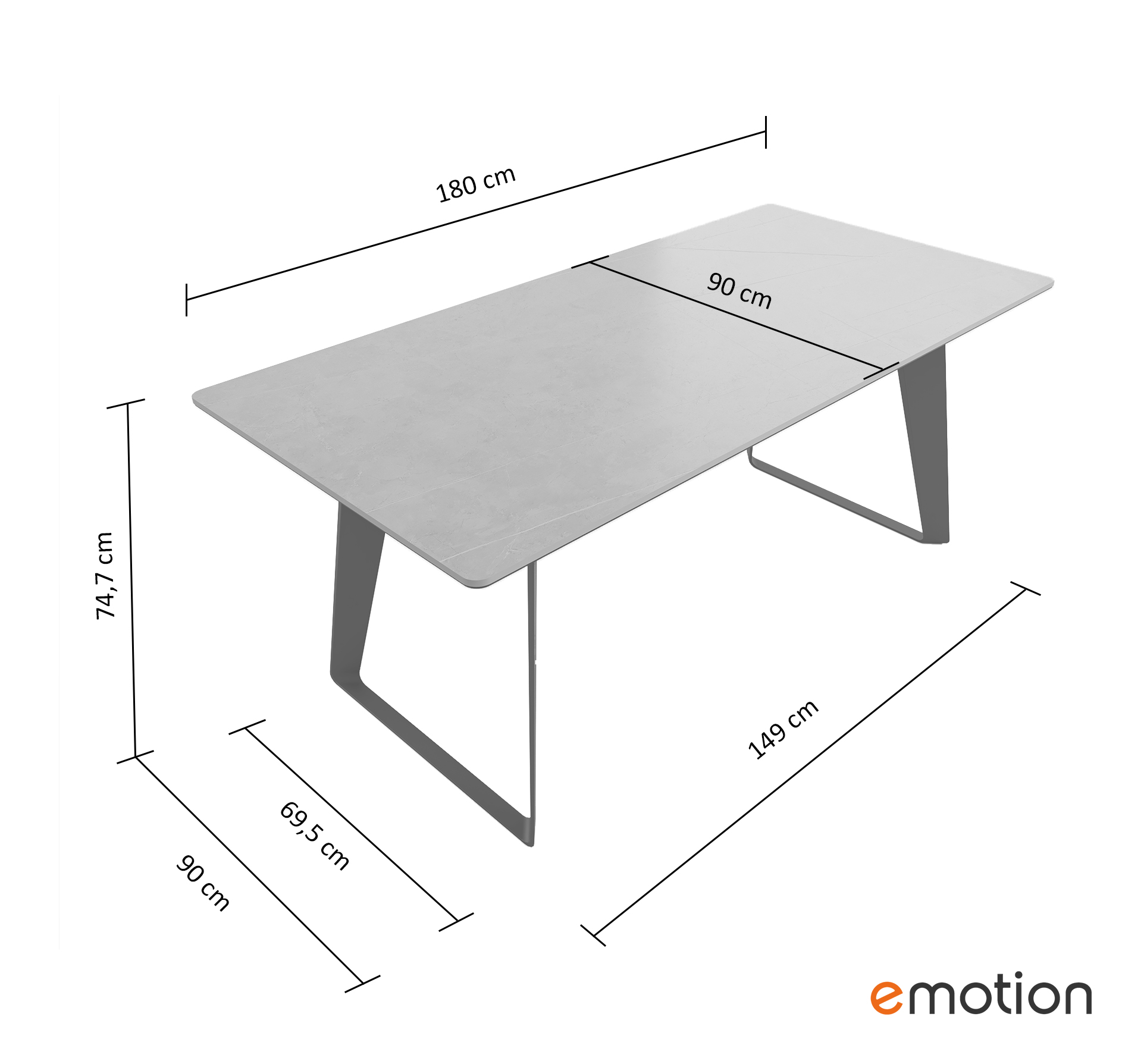 Esstisch FLORINT 180x90cm schwarze Keramikplatte schwarze Design-Tischkufen