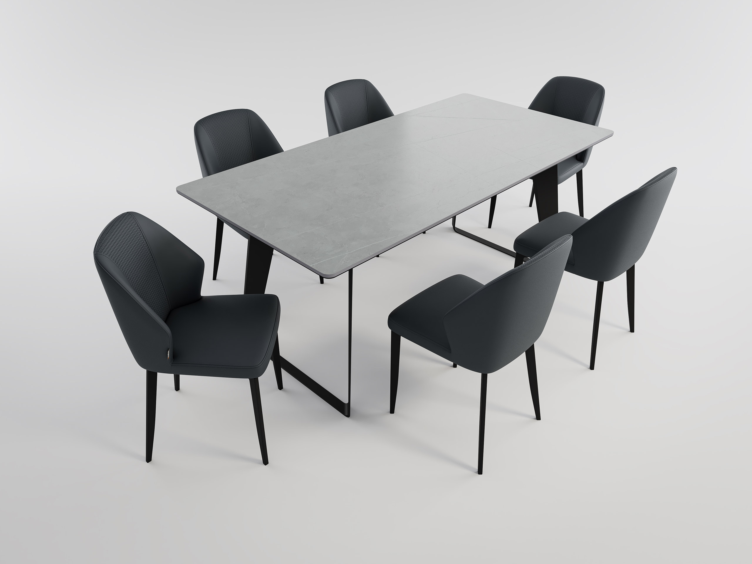 Esstisch Set FLORINT 180 graue Keramikplatte mit 6 Stühlen Kunstleder dunkelgrau