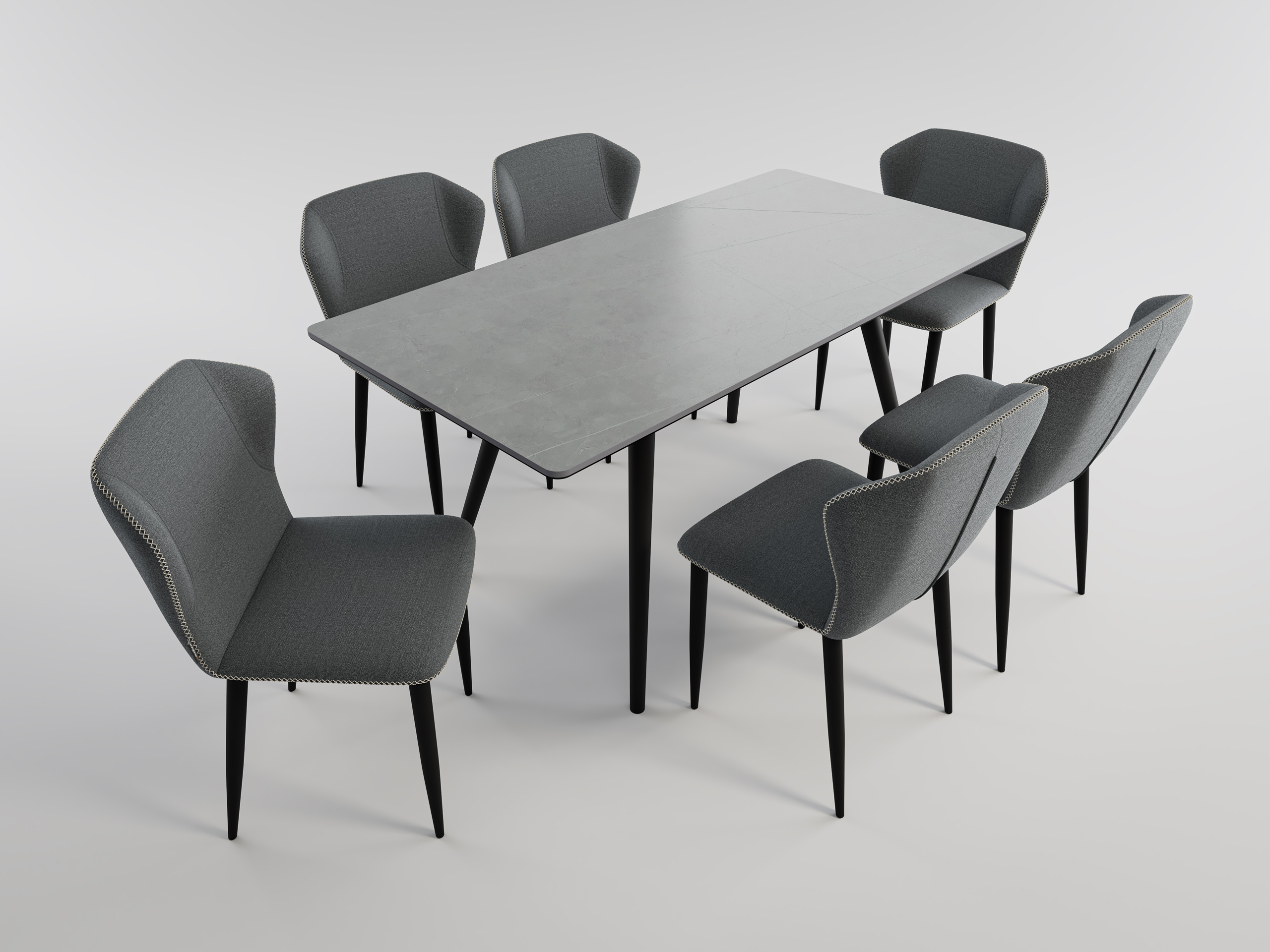 Esstisch Set RIGA 160 graue Keramikplatte mit 6 Stühlen Stoffbezug hellgrau