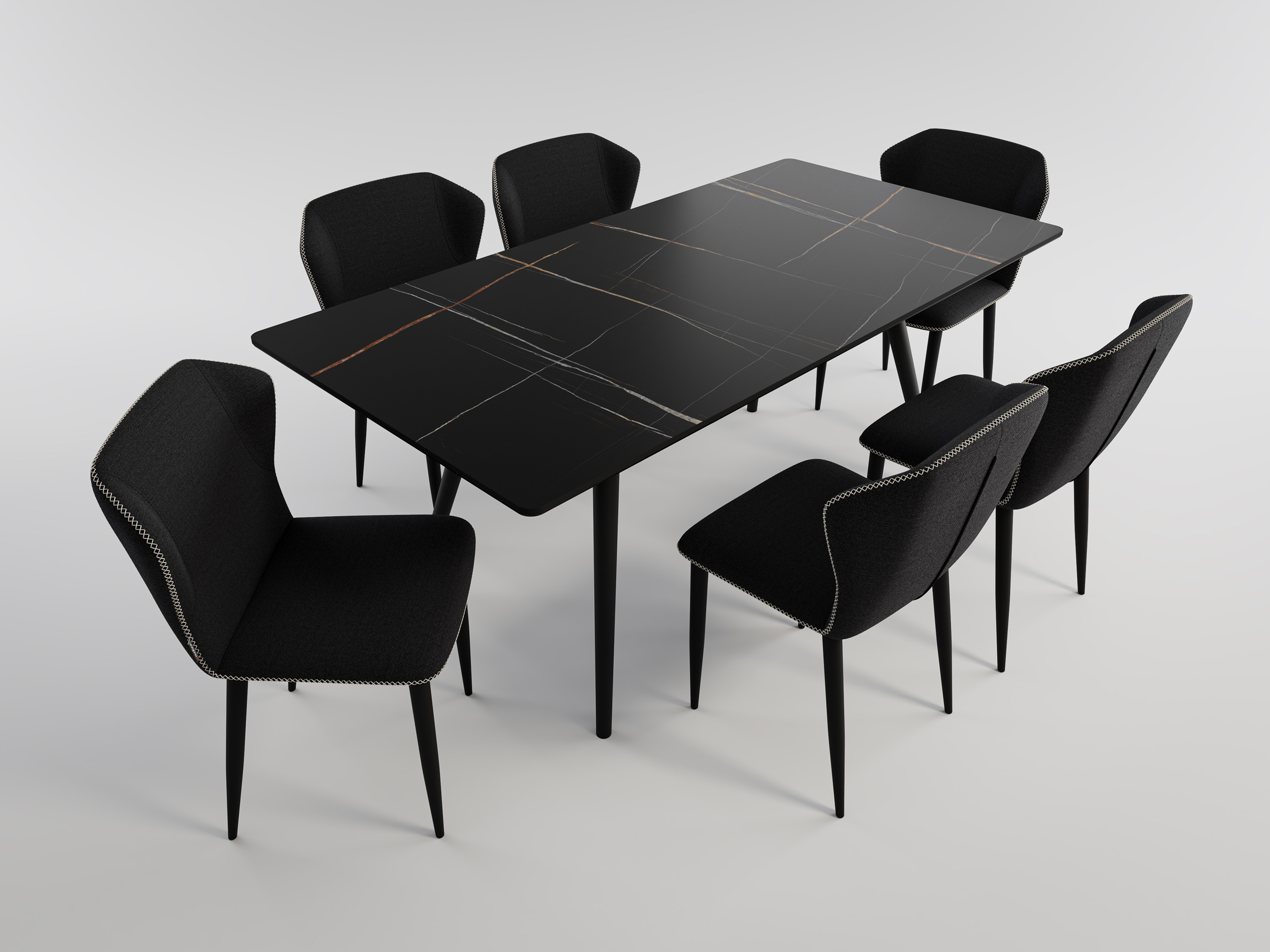 Esstisch Set RIGA 180 schwarze Keramikplatte mit 6 Stühlen Stoffbezug schwarz