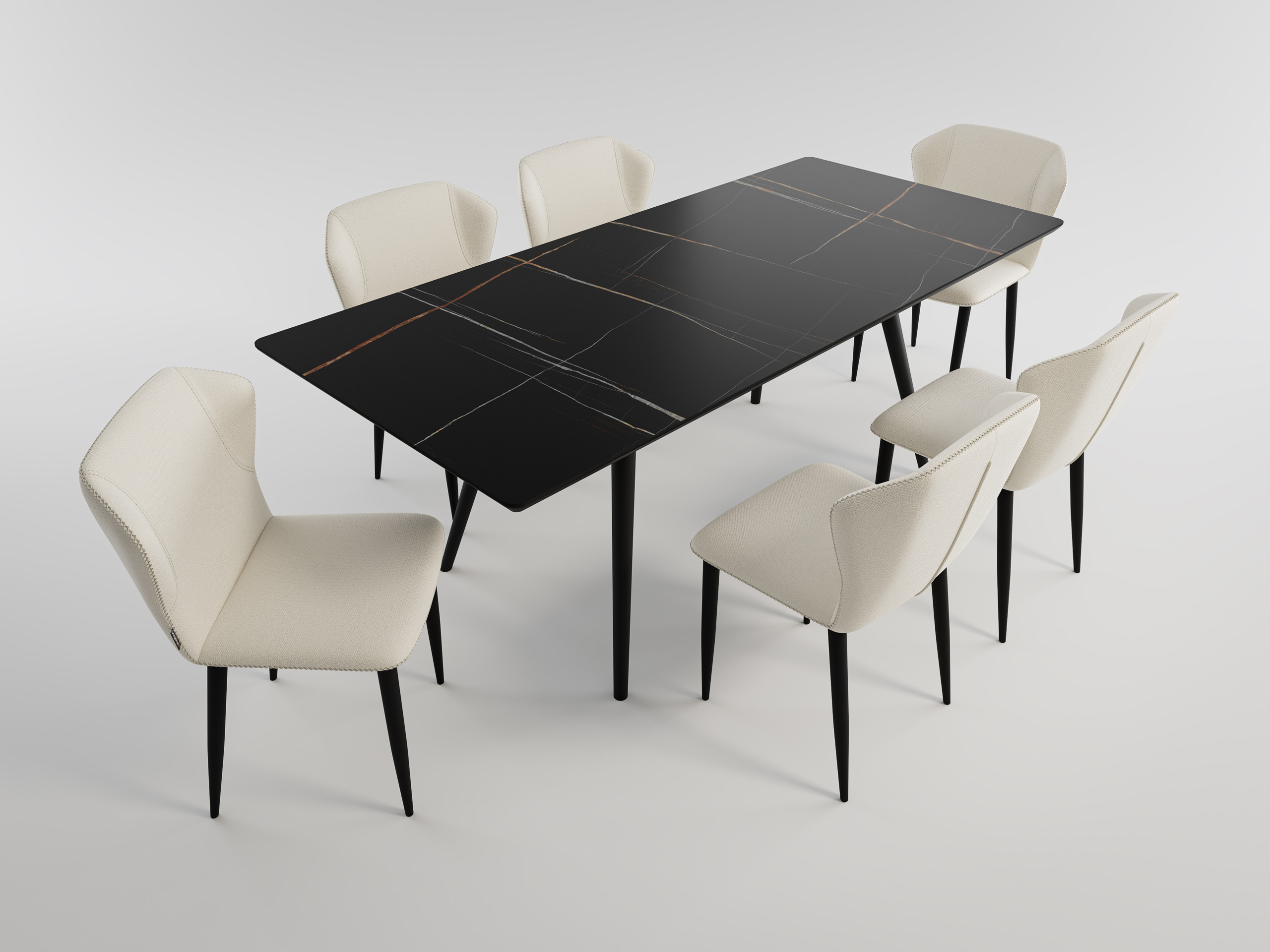 Esstisch Set RIGA 200 schwarze Keramikplatte mit 6 Stühlen Stoffbezug beige