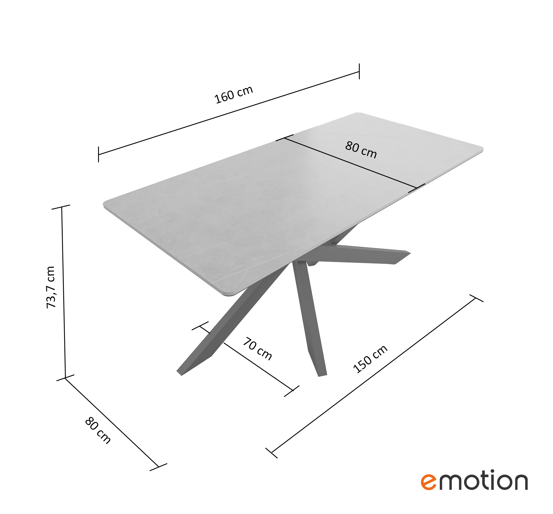 Esszimmertisch ELLEN 160x80cm graue Keramikplatte schwarzes Kreuzgestell