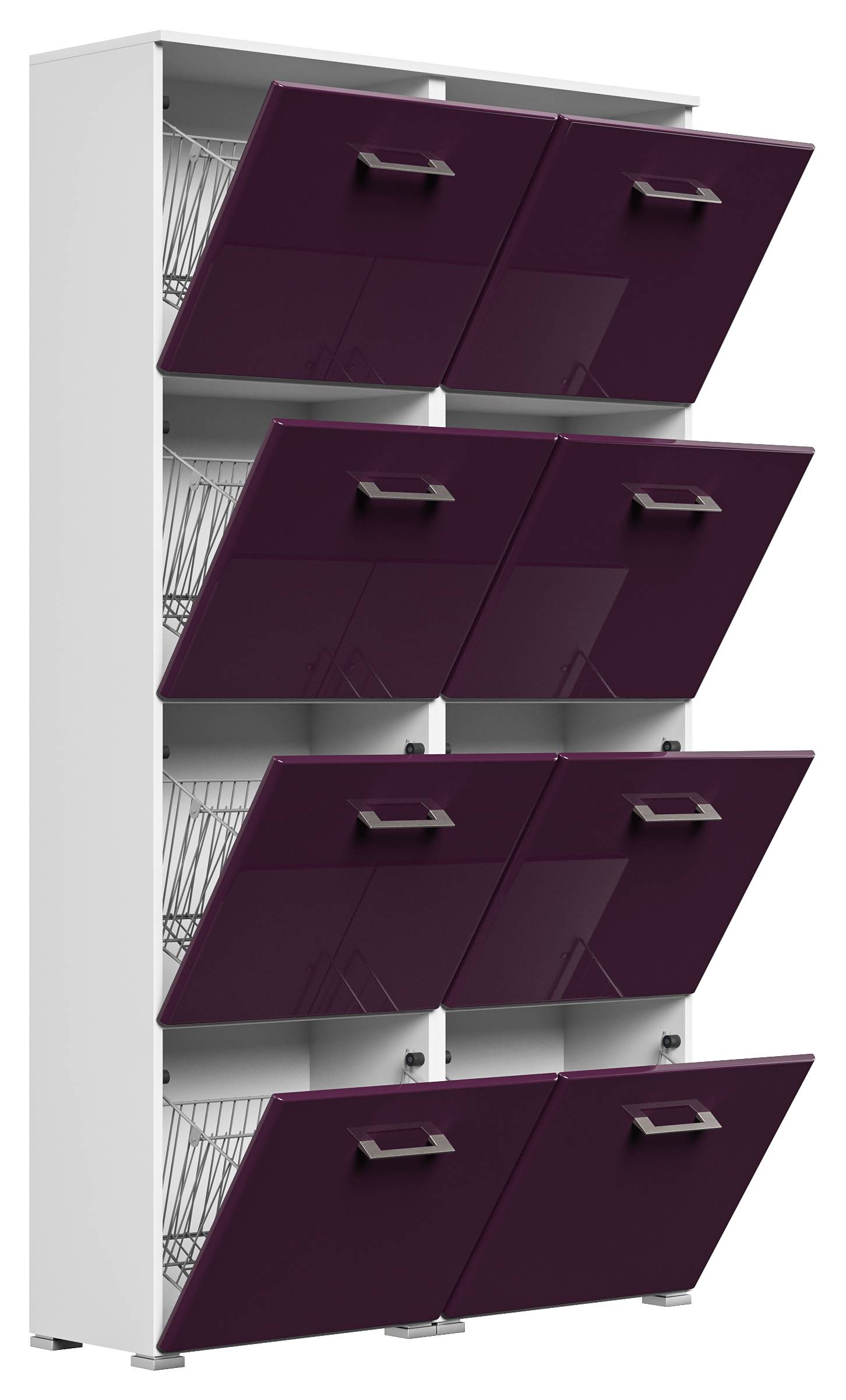Garderobe Set 112 Dobele 3 tlg Schuhschrank 8 Klappen 32 Paar Weiss-Brombeer