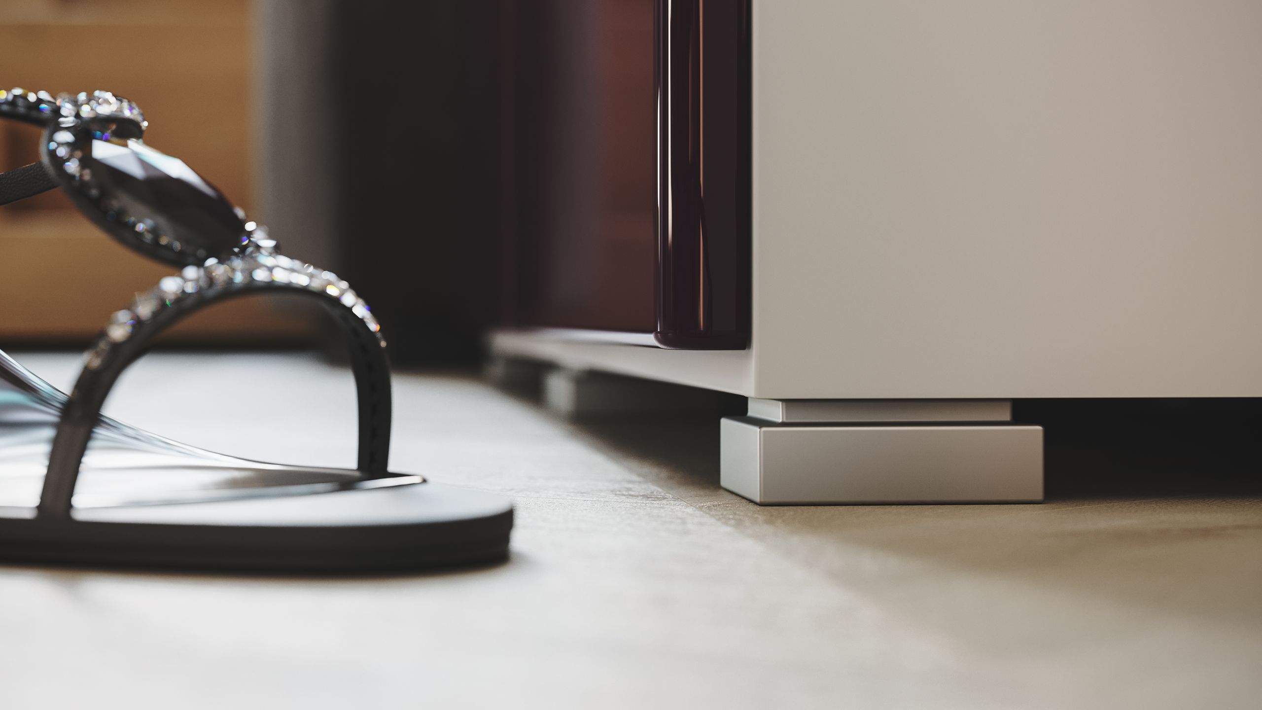 - Füße: Die matt-silbernen Kunststoff-Füße sind quadratisch geformt (B/H/T) 5,5/2/5,5 cm. Die neutrale Farbe passt zu allen Inneneinrichtungen.