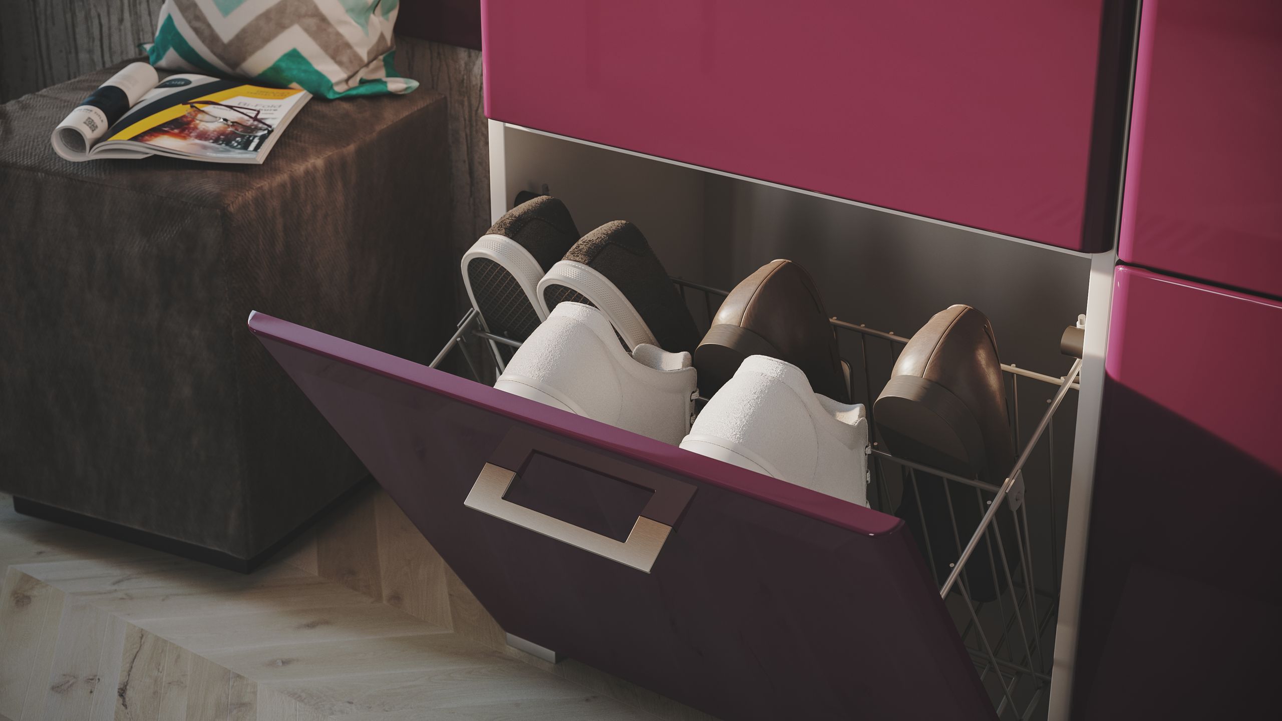 Großzügig und trotzdem schmal: Schuhschrank mit 8 Klappen!