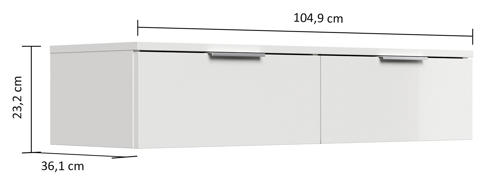 Hängekonsole Urban Slimline 2 Softclose-Schubladen quer mit Metallgriffen (B/H/T) 104,9/23,2/36,1 cm.