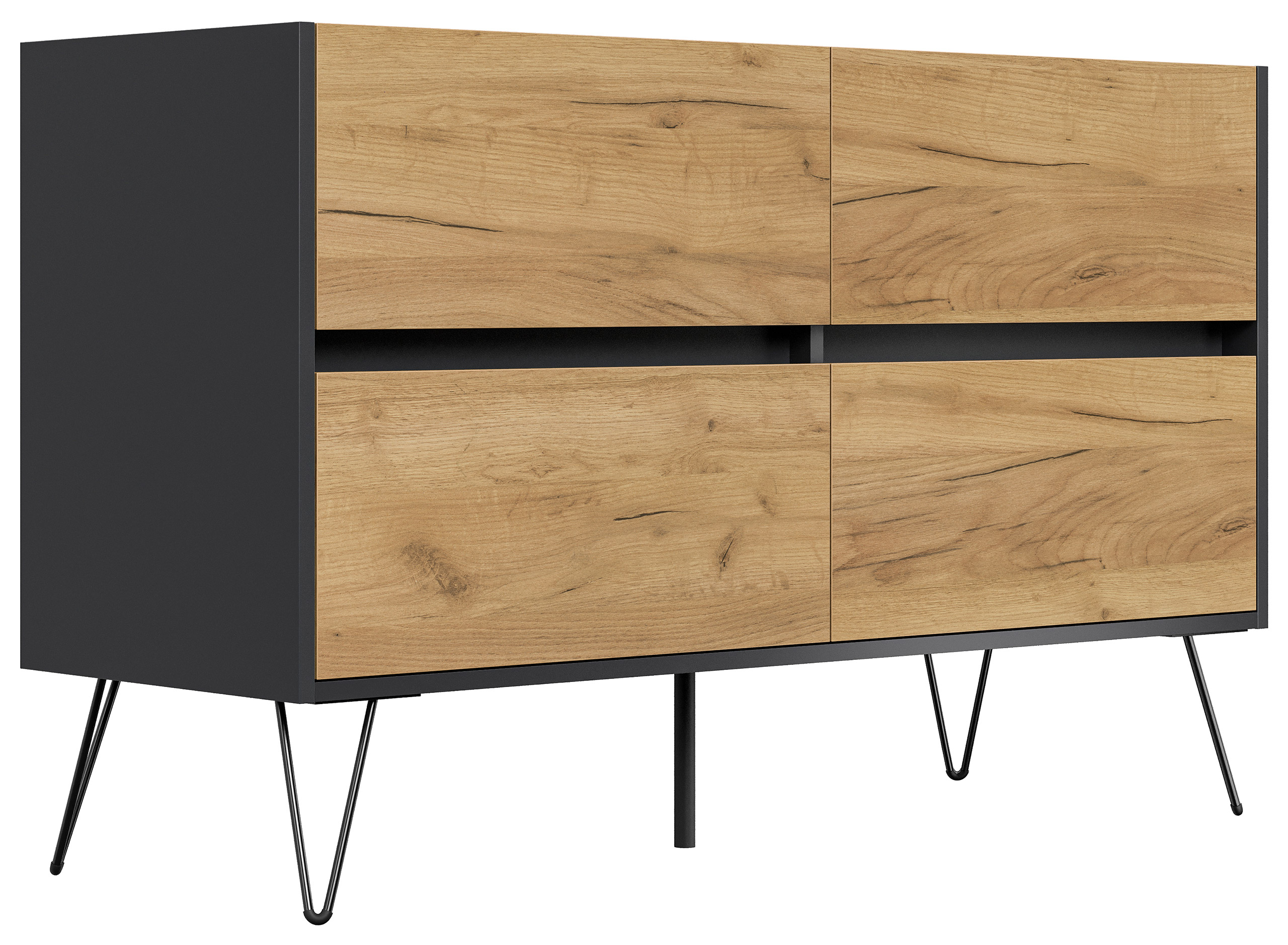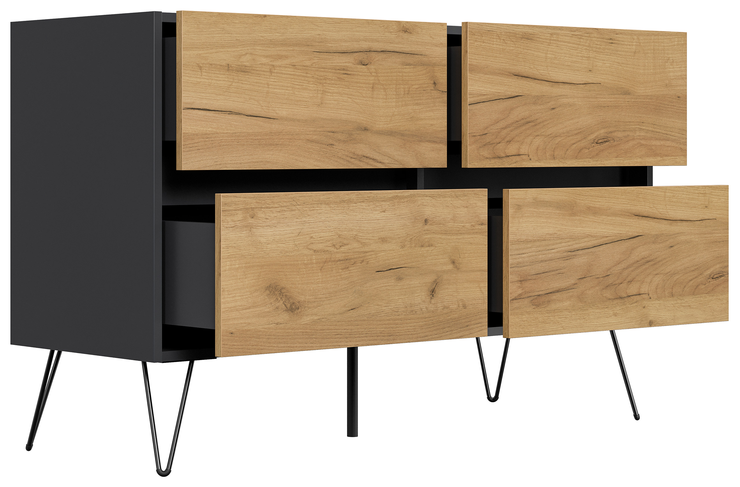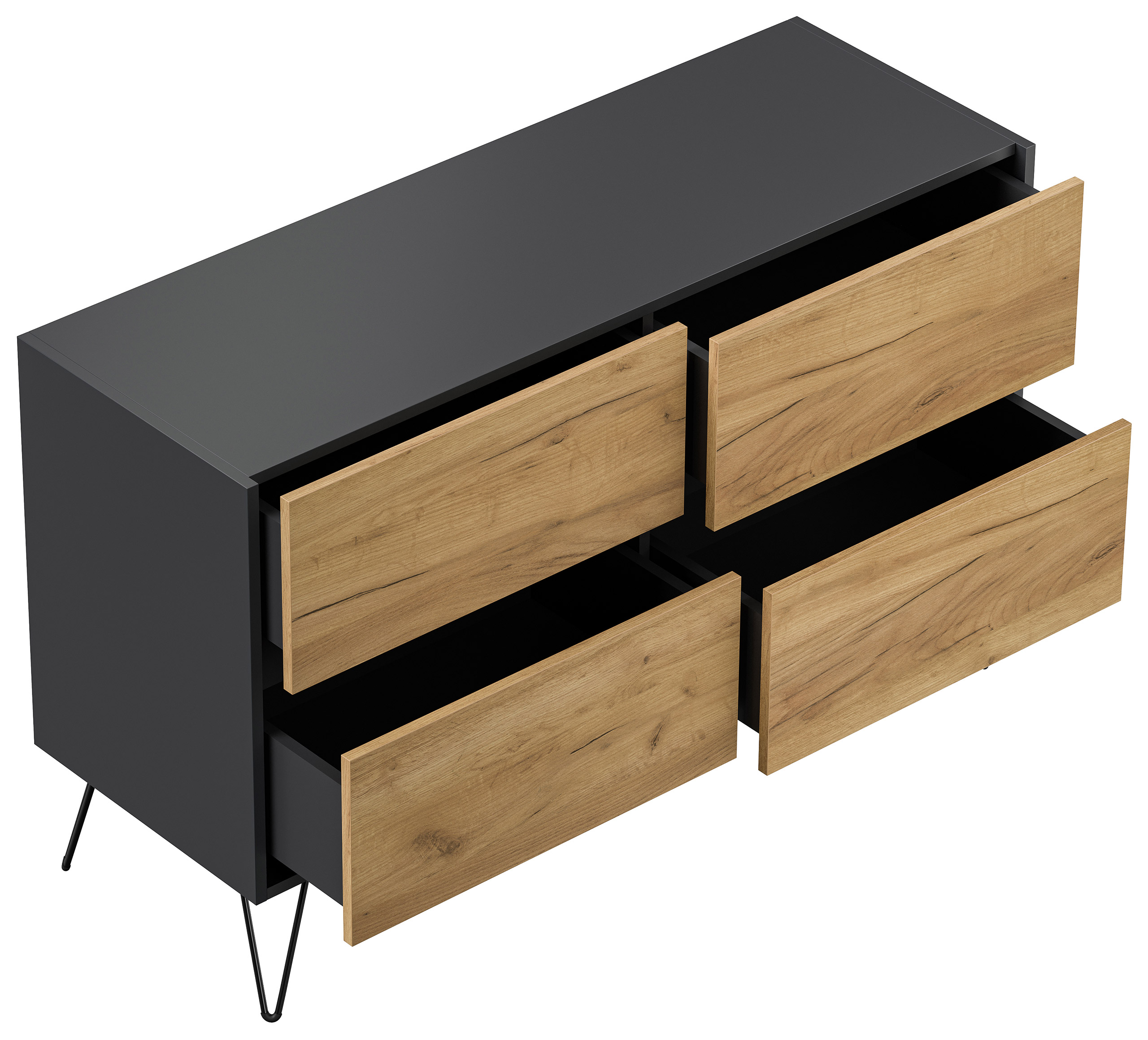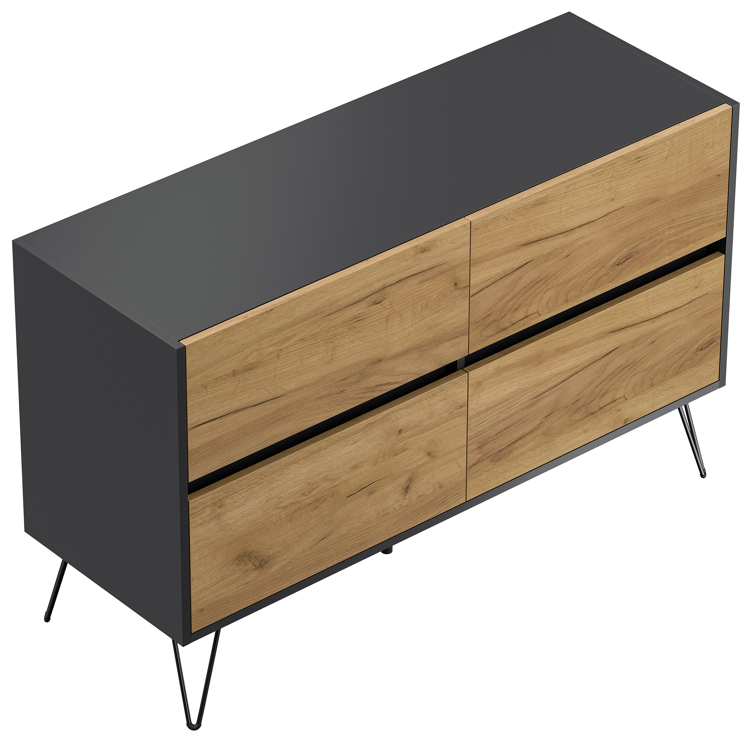 Kommode Dion 120cm 4 SoftClose Schubladen Grafit/Eiche Front