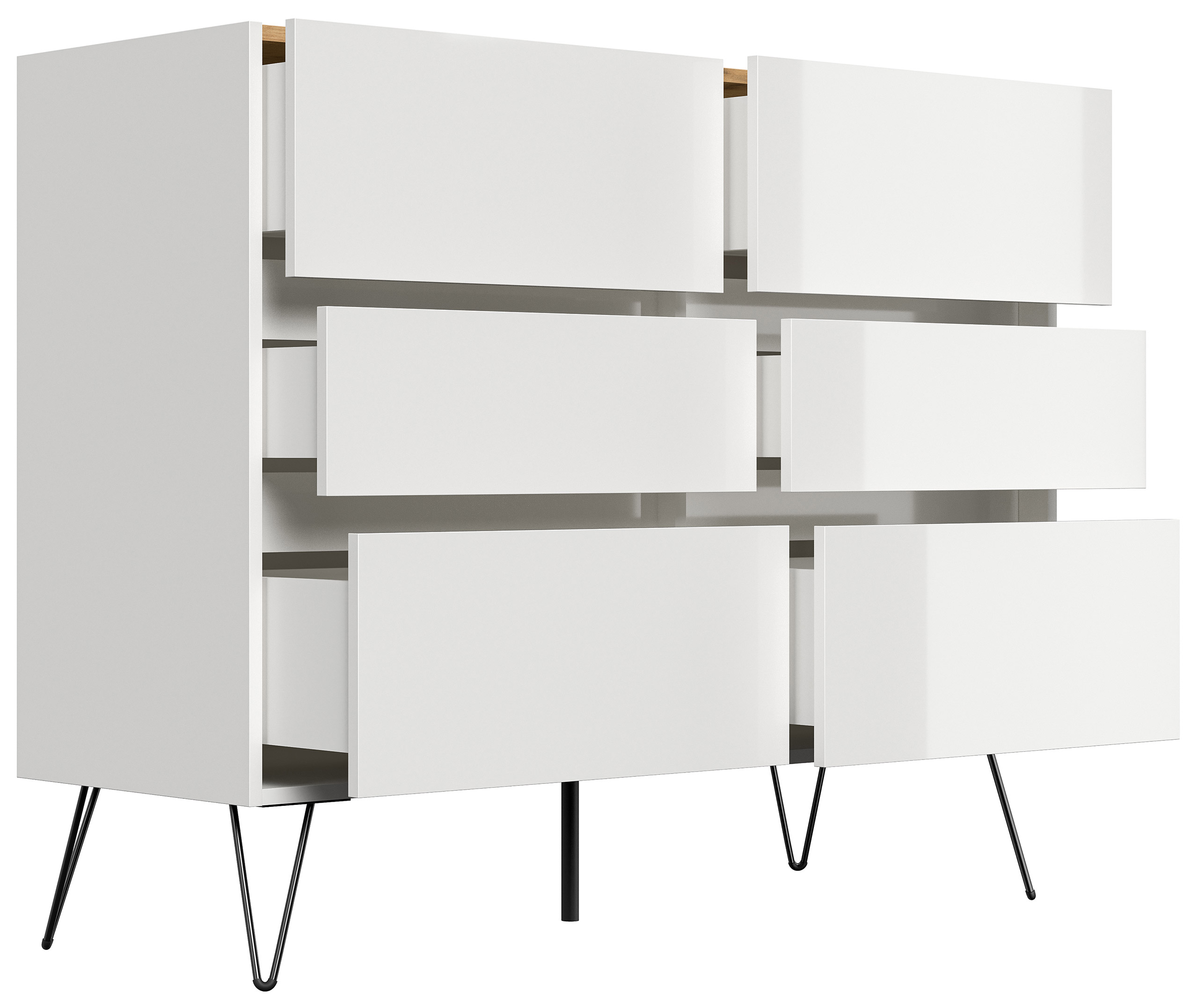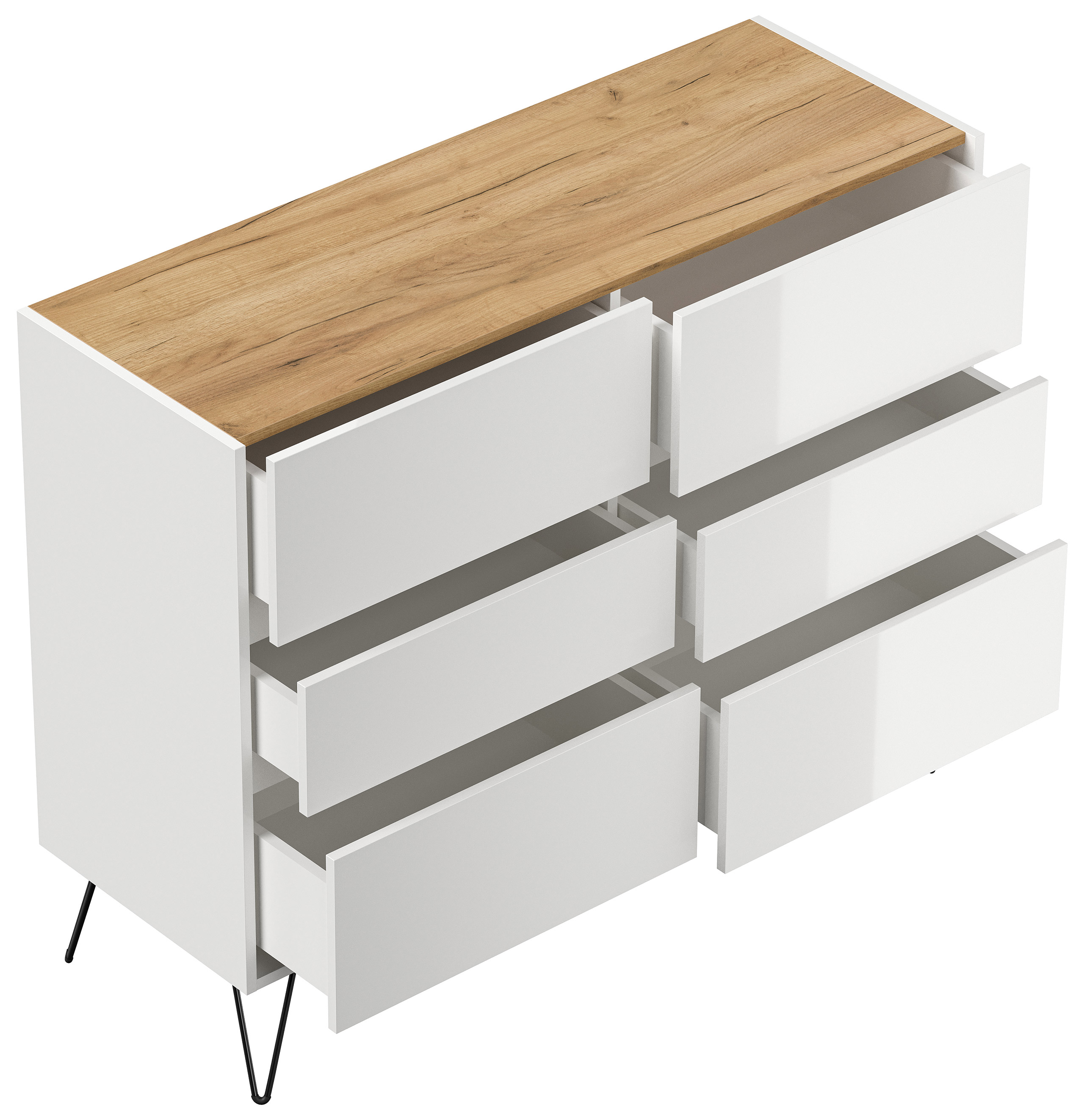 Kommode Dion XL 120cm 6 SoftClose Schubladen Weiß/Eiche Top