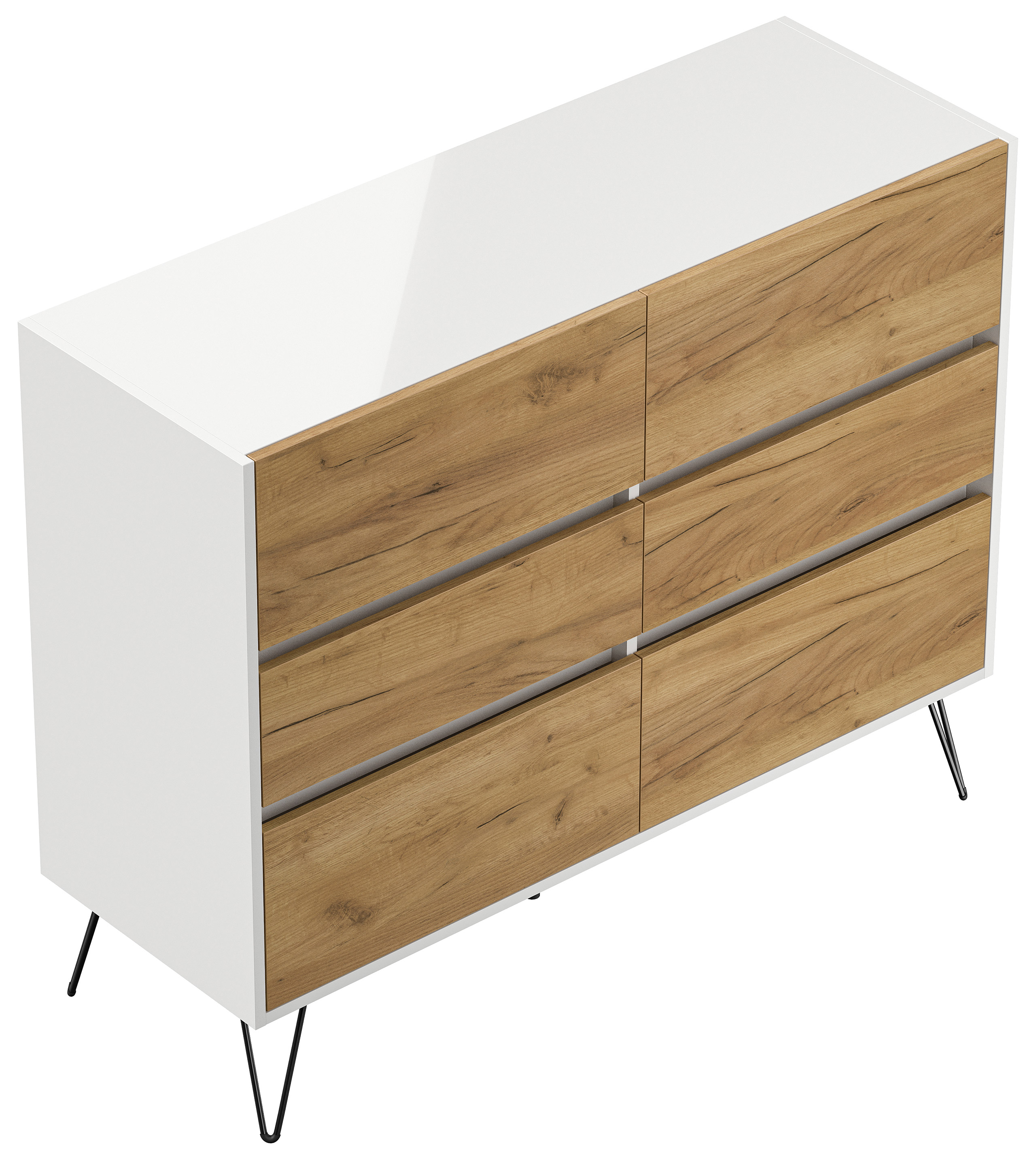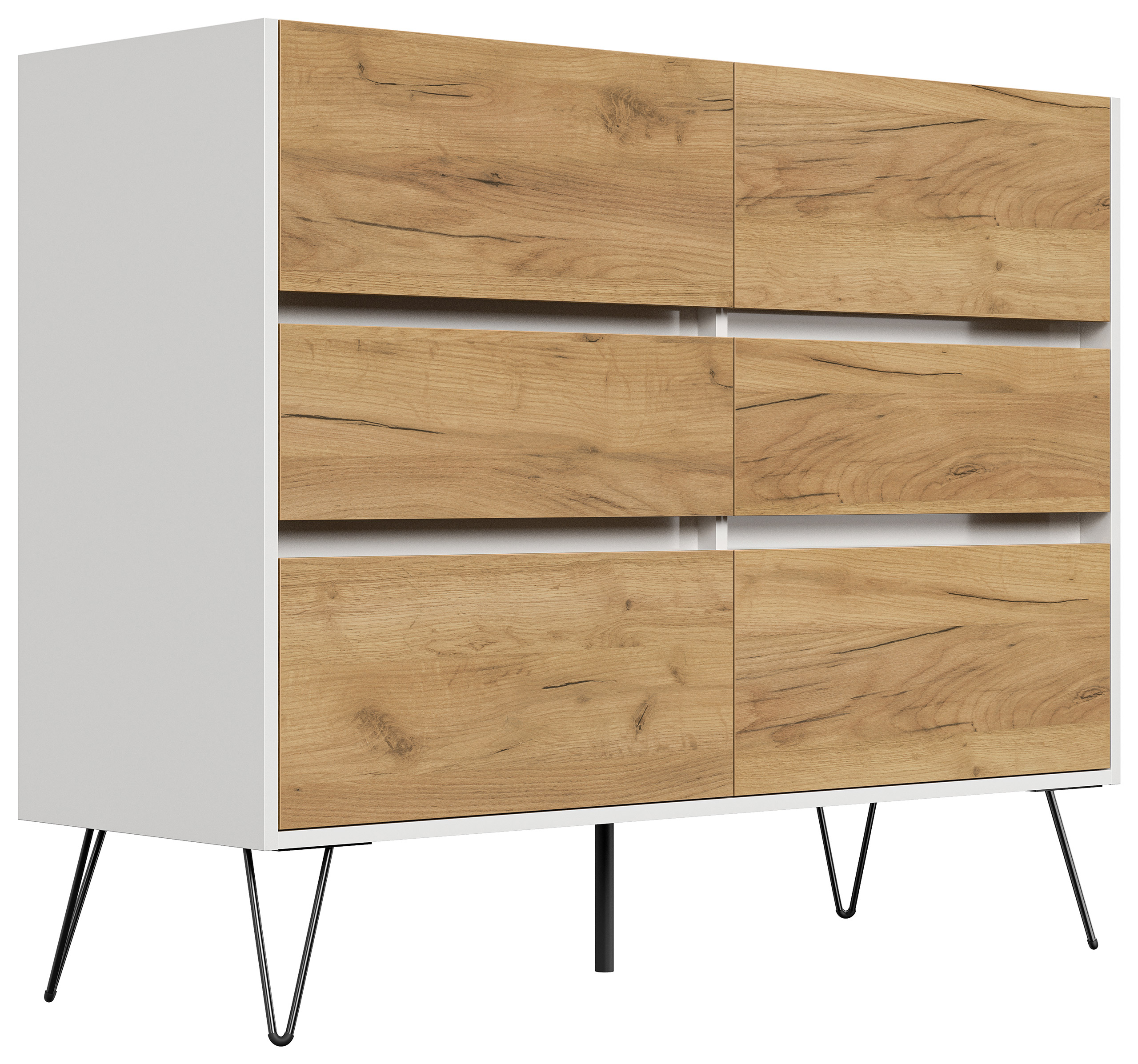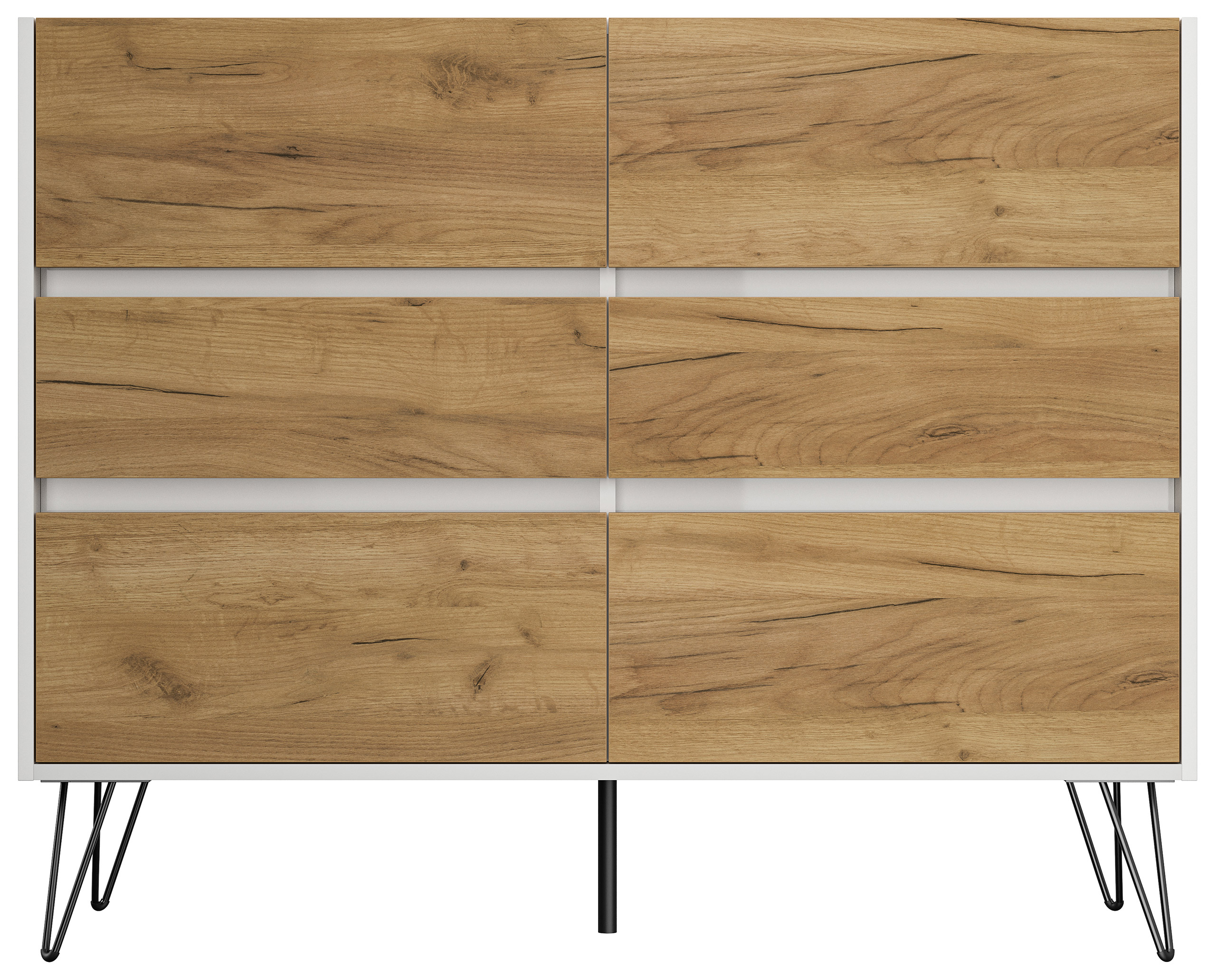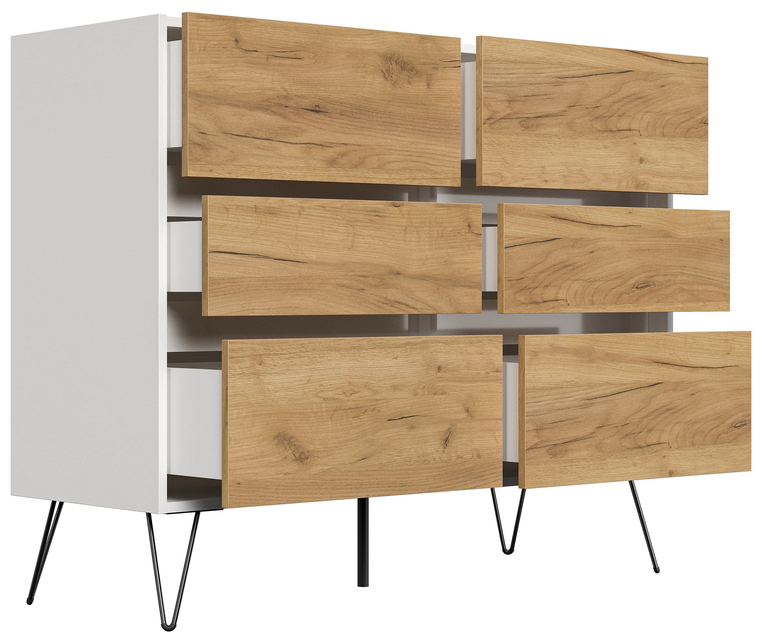 Kommode Dion XL 120cm 6 SoftClose SchubladenWeiß/Eiche Front