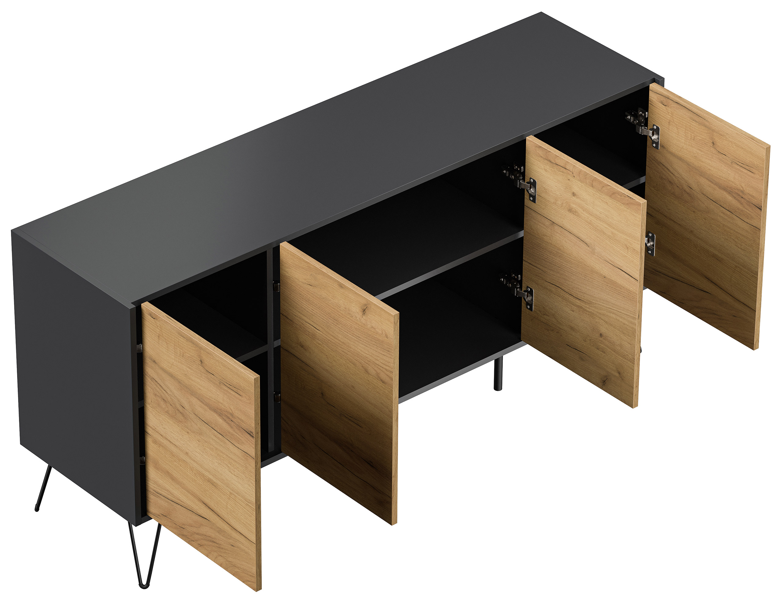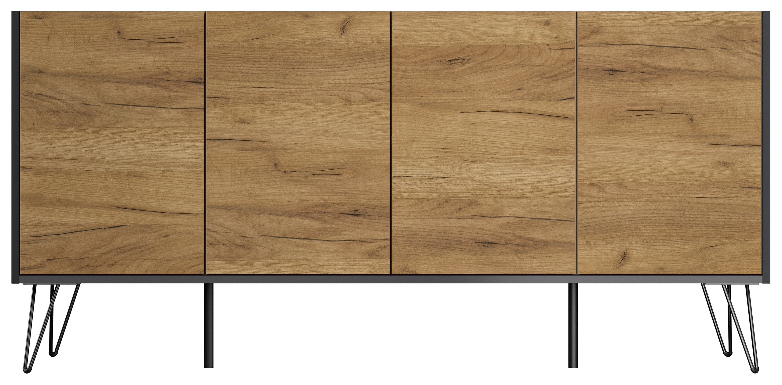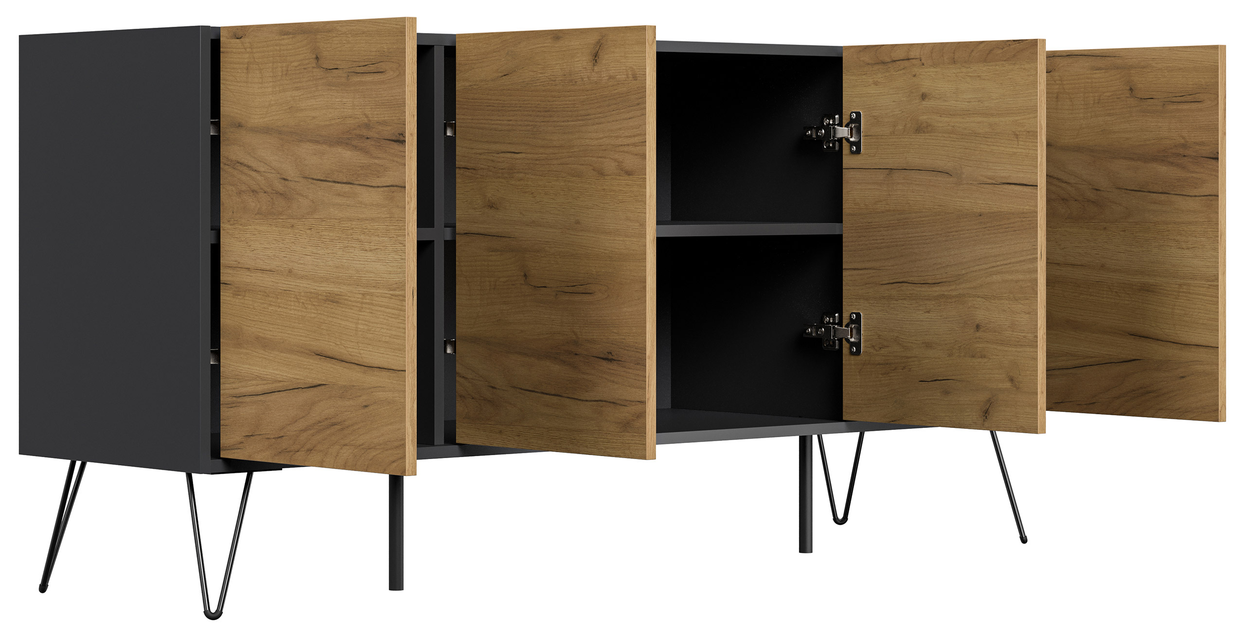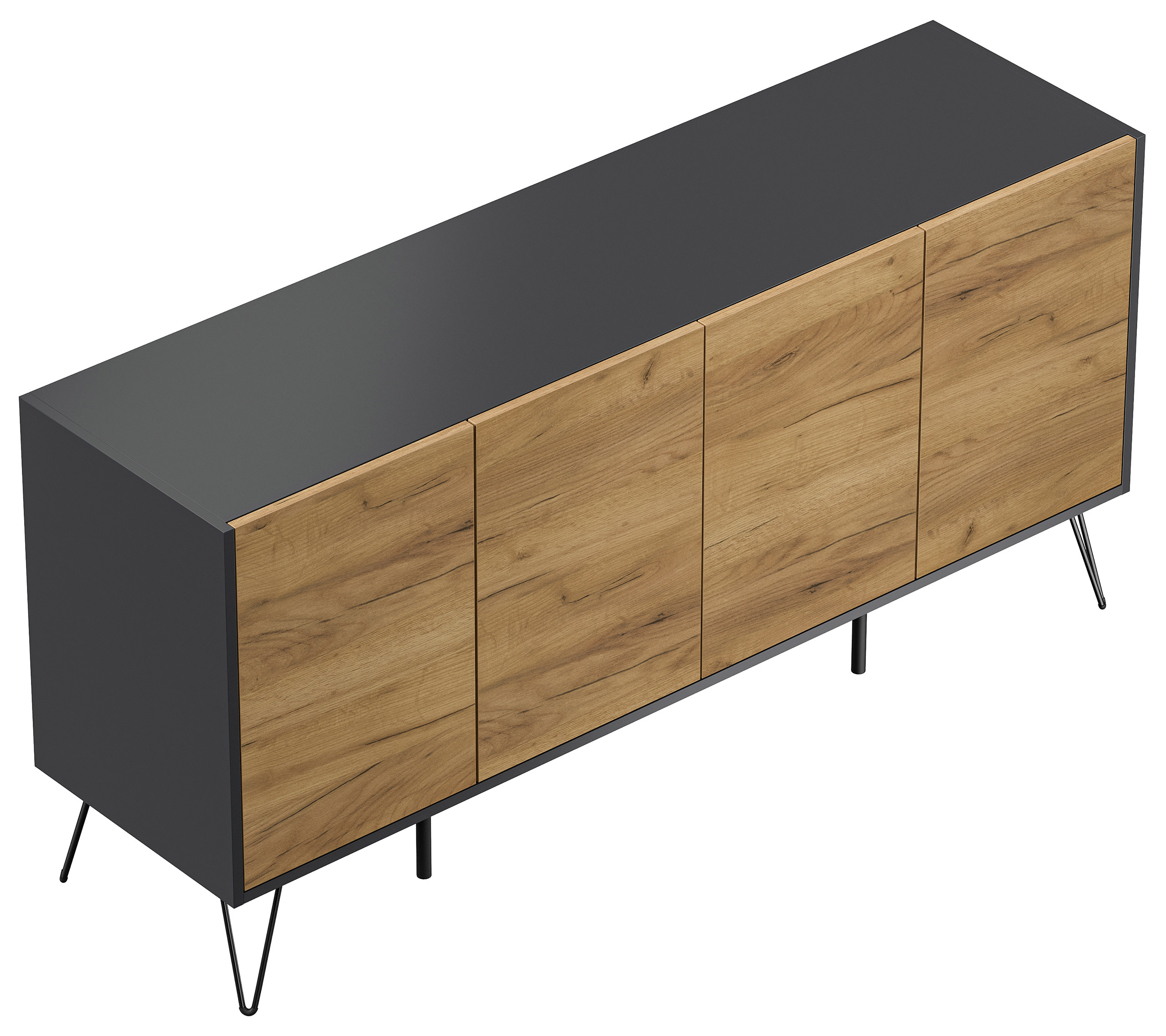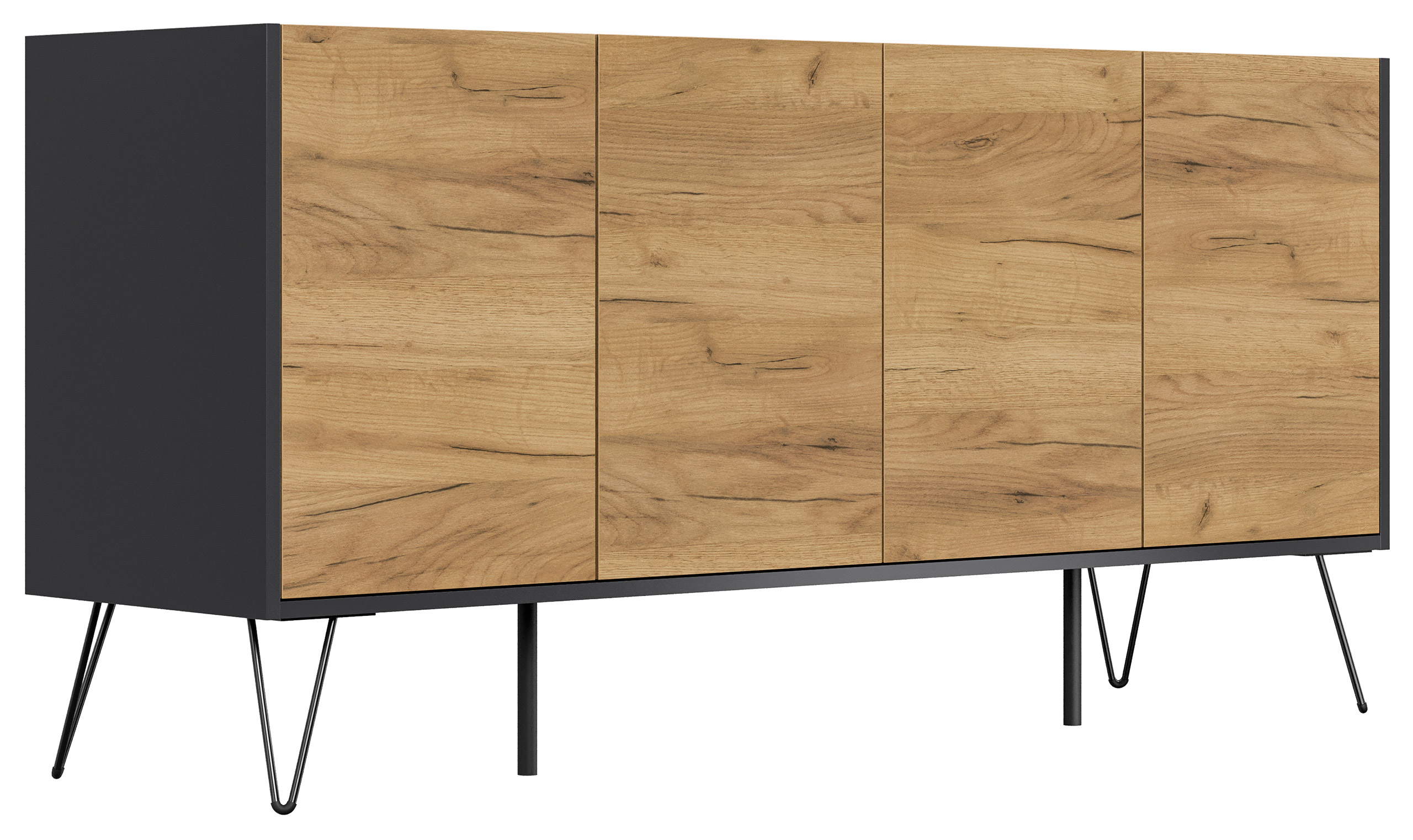 Kommode Maxim 155cm stehend 4 Türen Grafit/Eiche Front