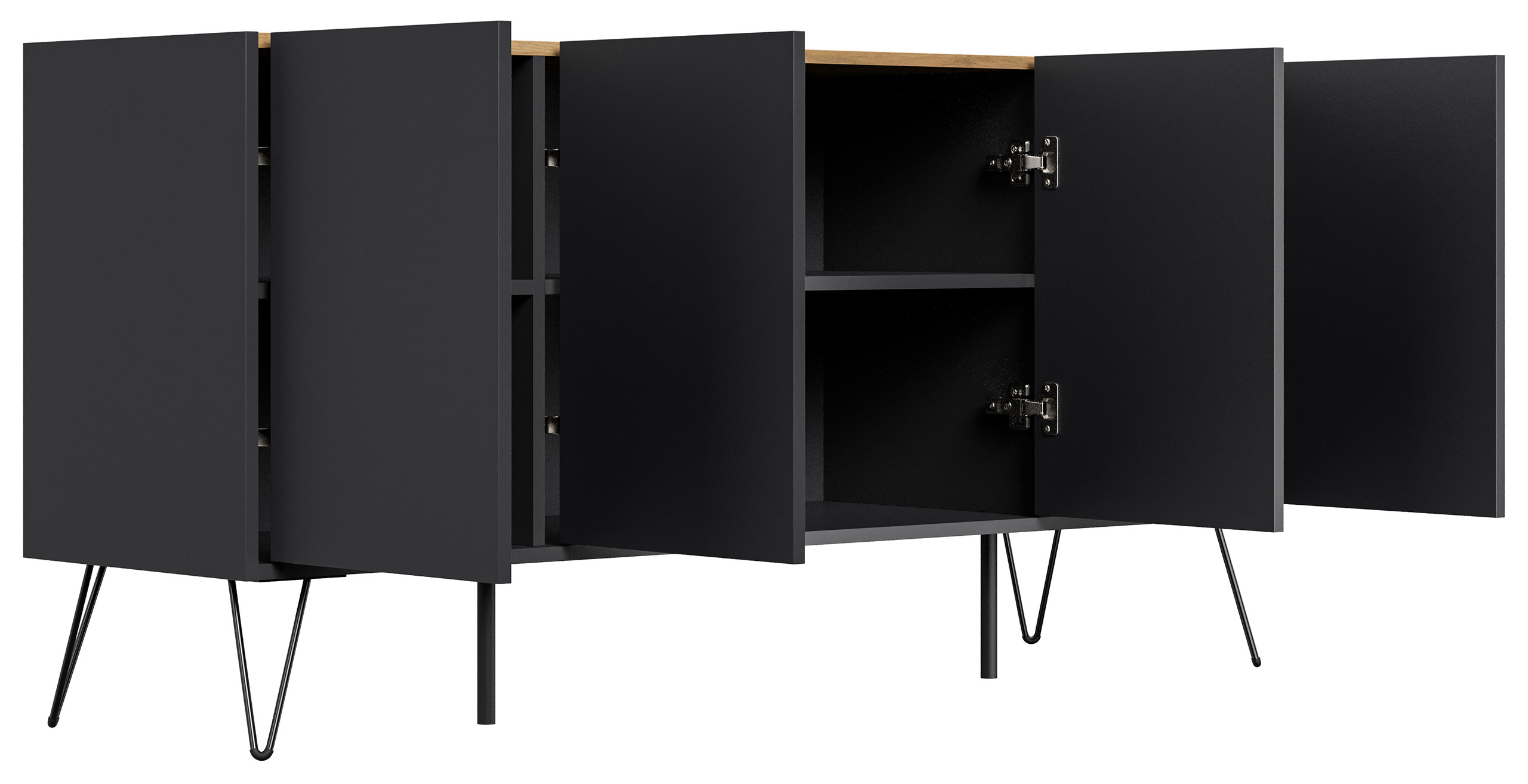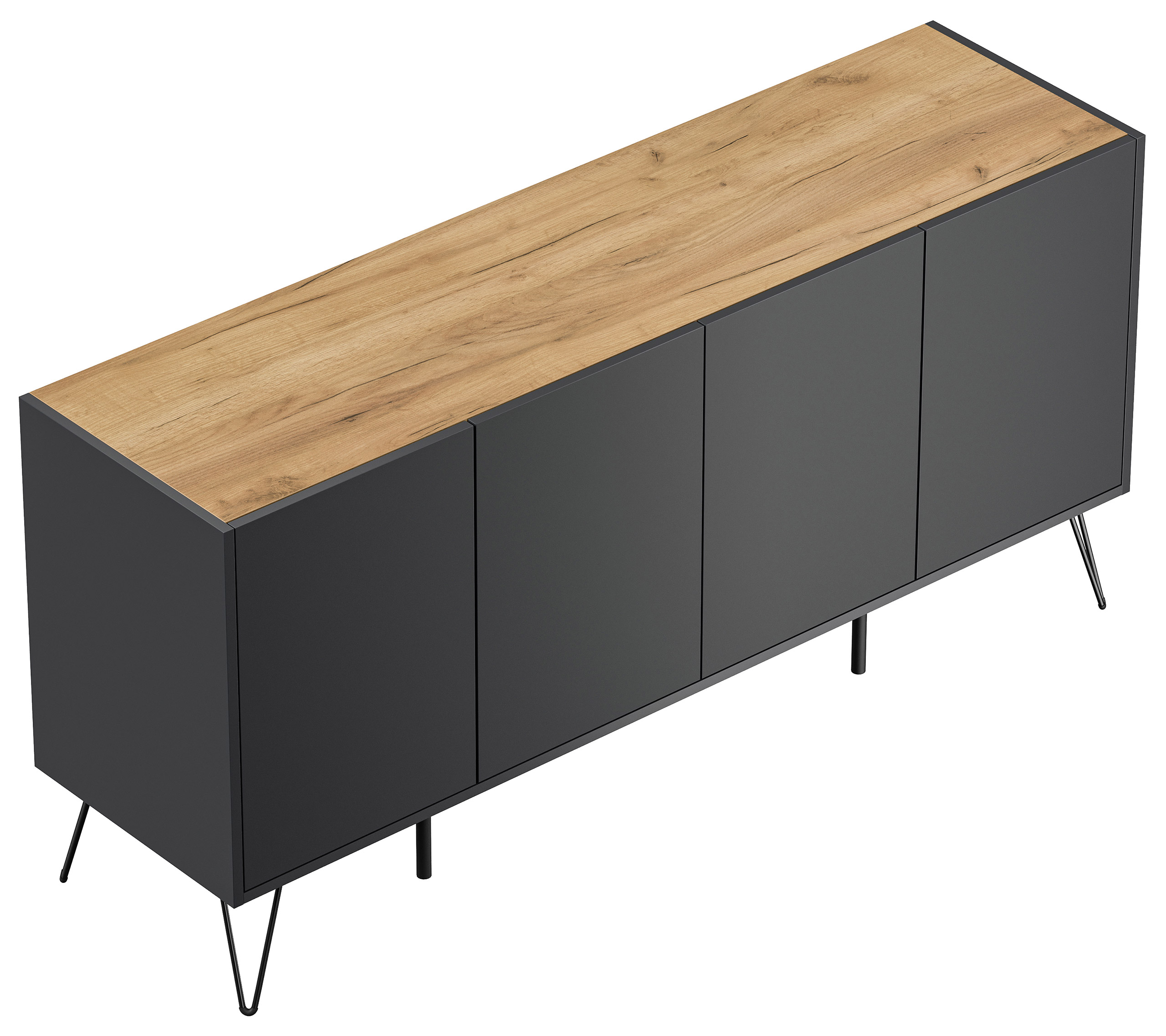 Kommode Maxim 155cm stehend 4 Türen Grafit/Eiche Top