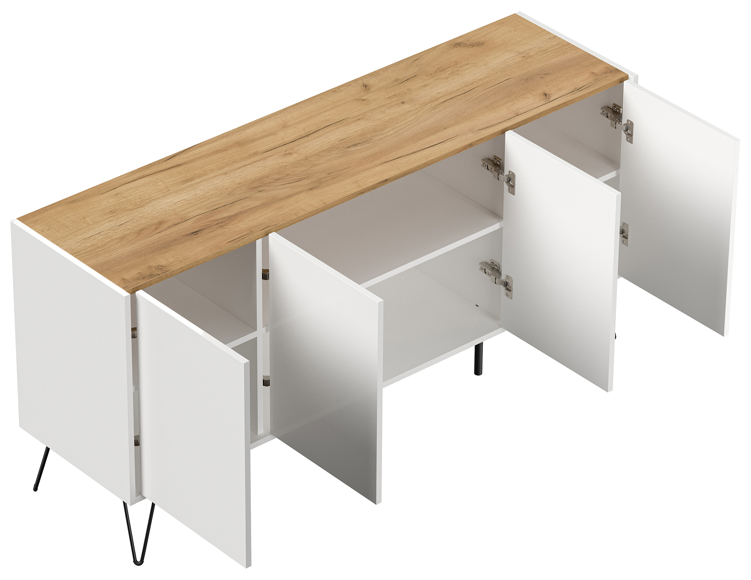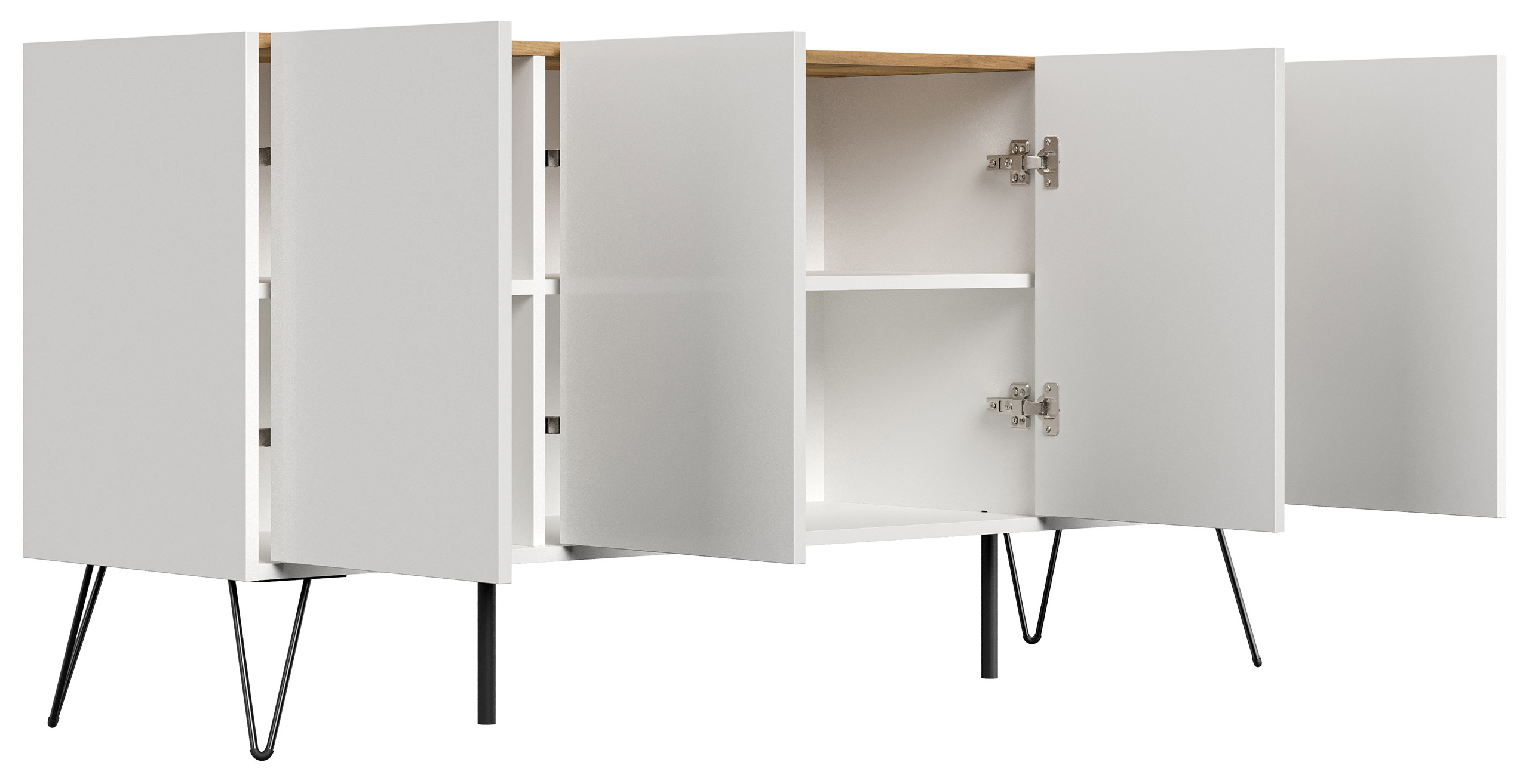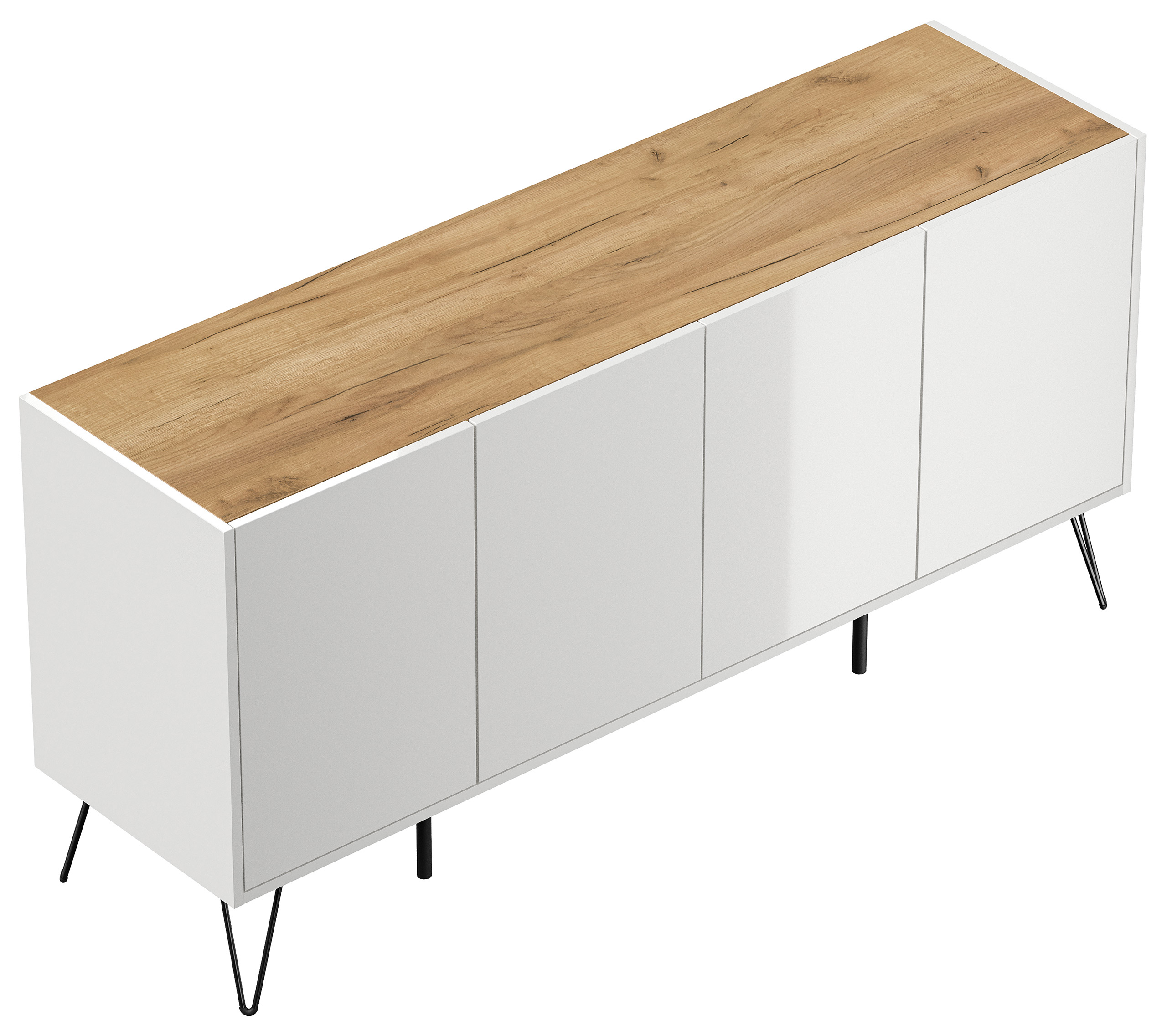 Kommode Maxim 155cm stehend 4 Türen Weiß/Eiche Top