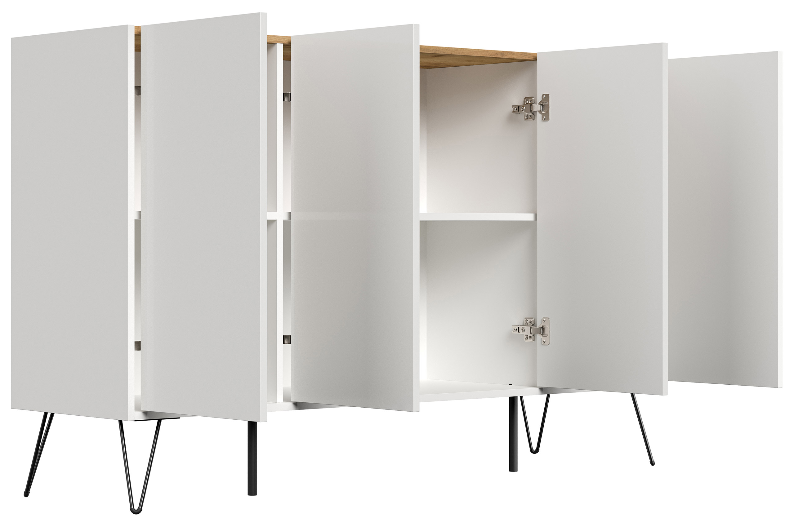 Kommode Maxim XL 155cm 4 Softclose Türen Weiß/Eiche Top