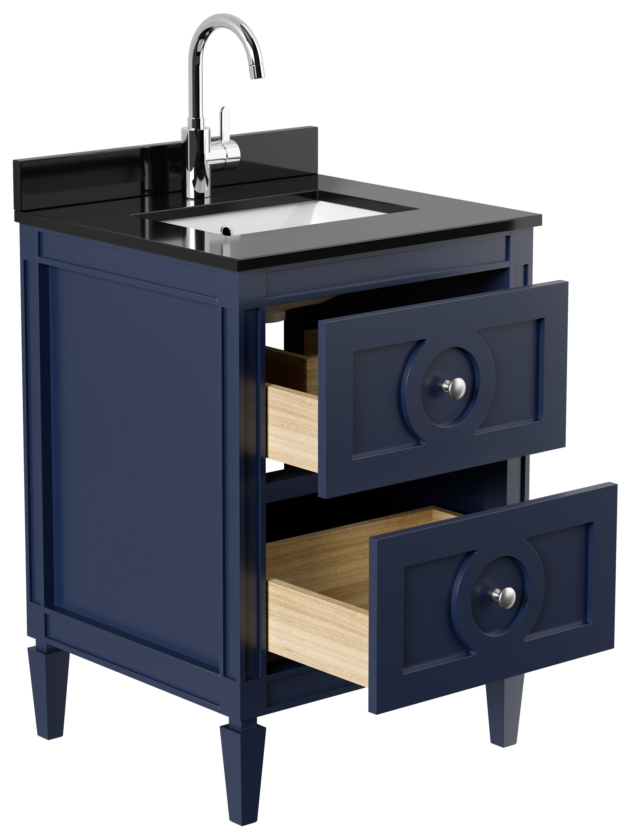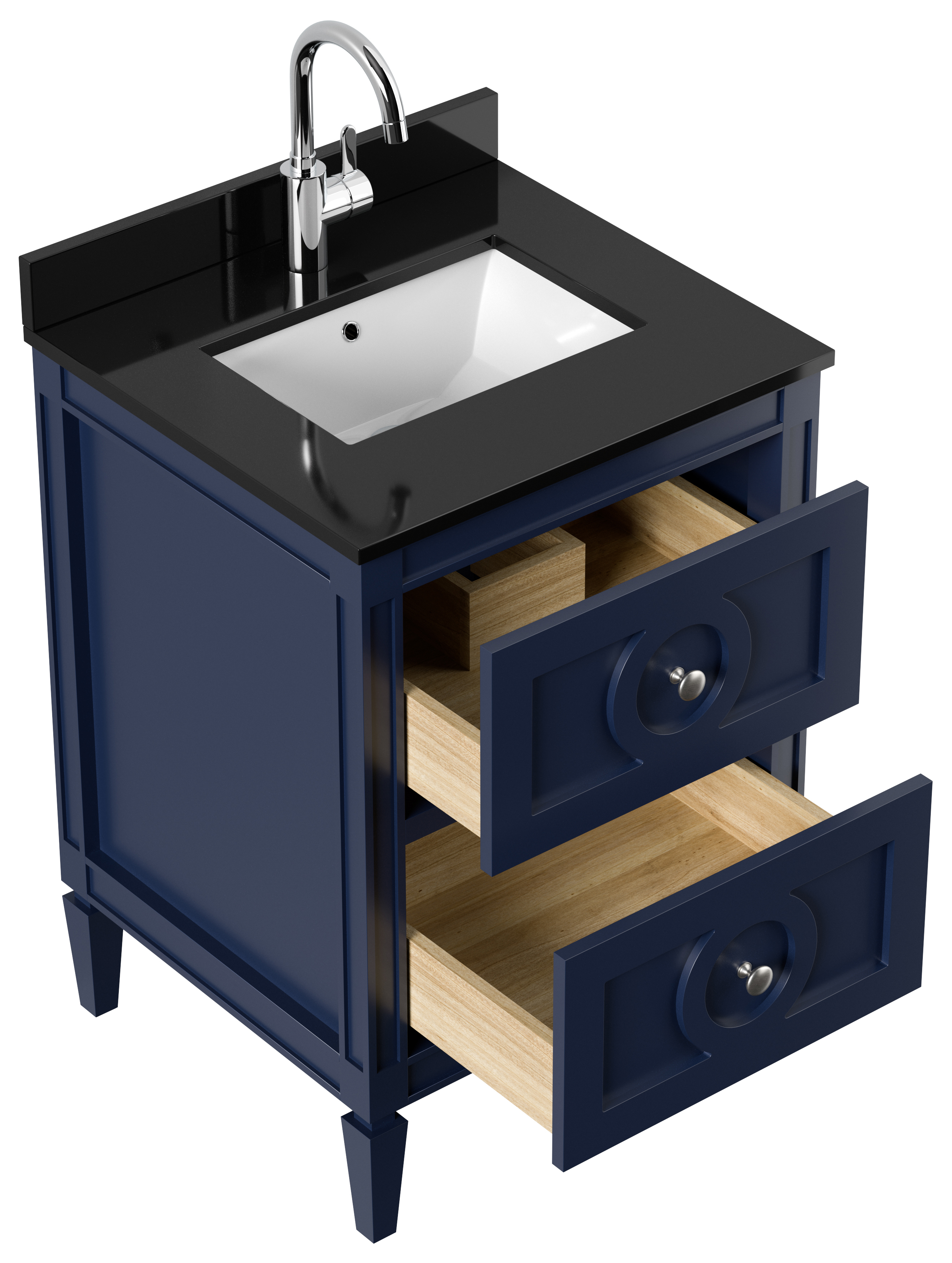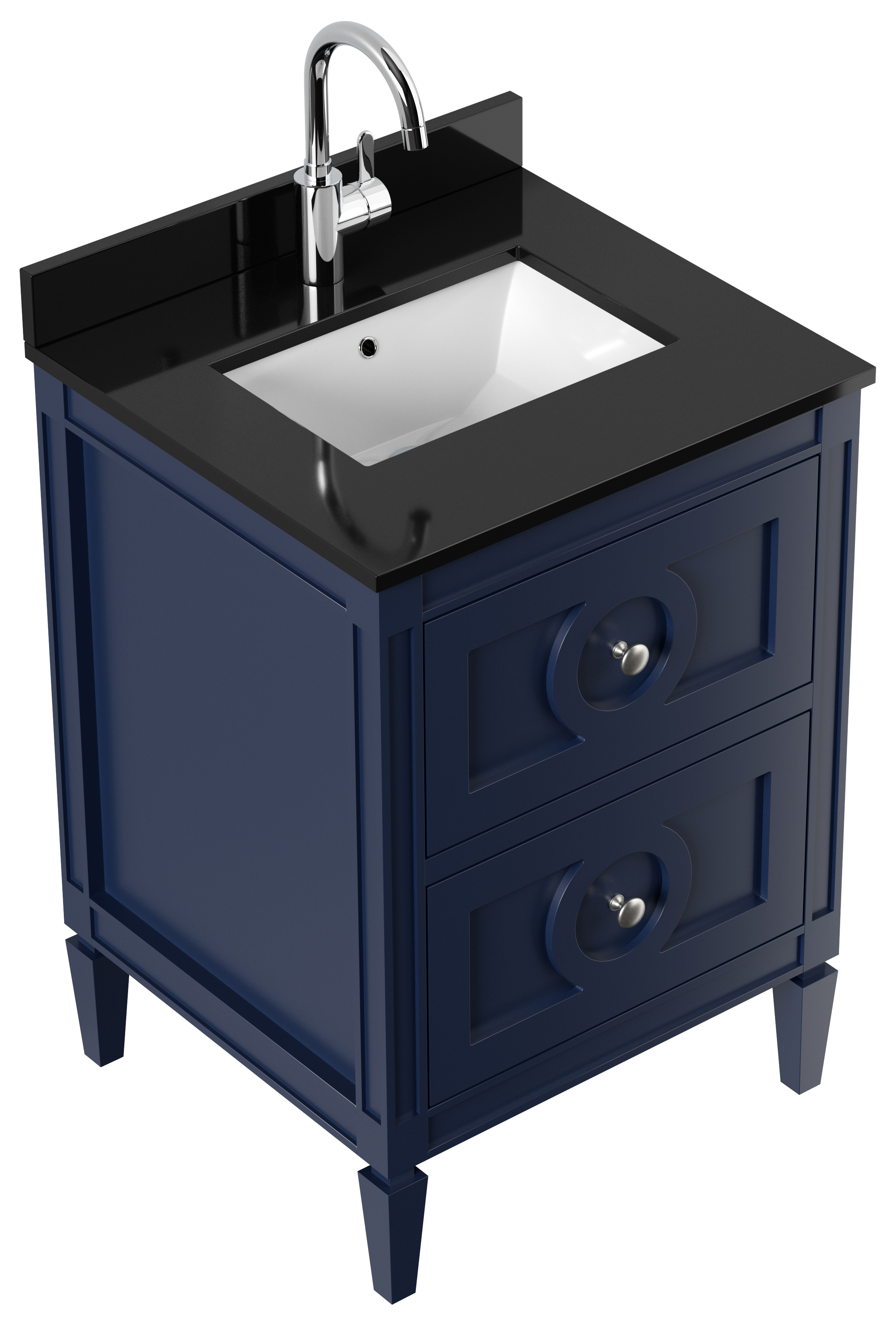 Landhaus Badmöbel-Set 2tlg Lavanda 60 Quarz schwarz montiert blau lackiert
