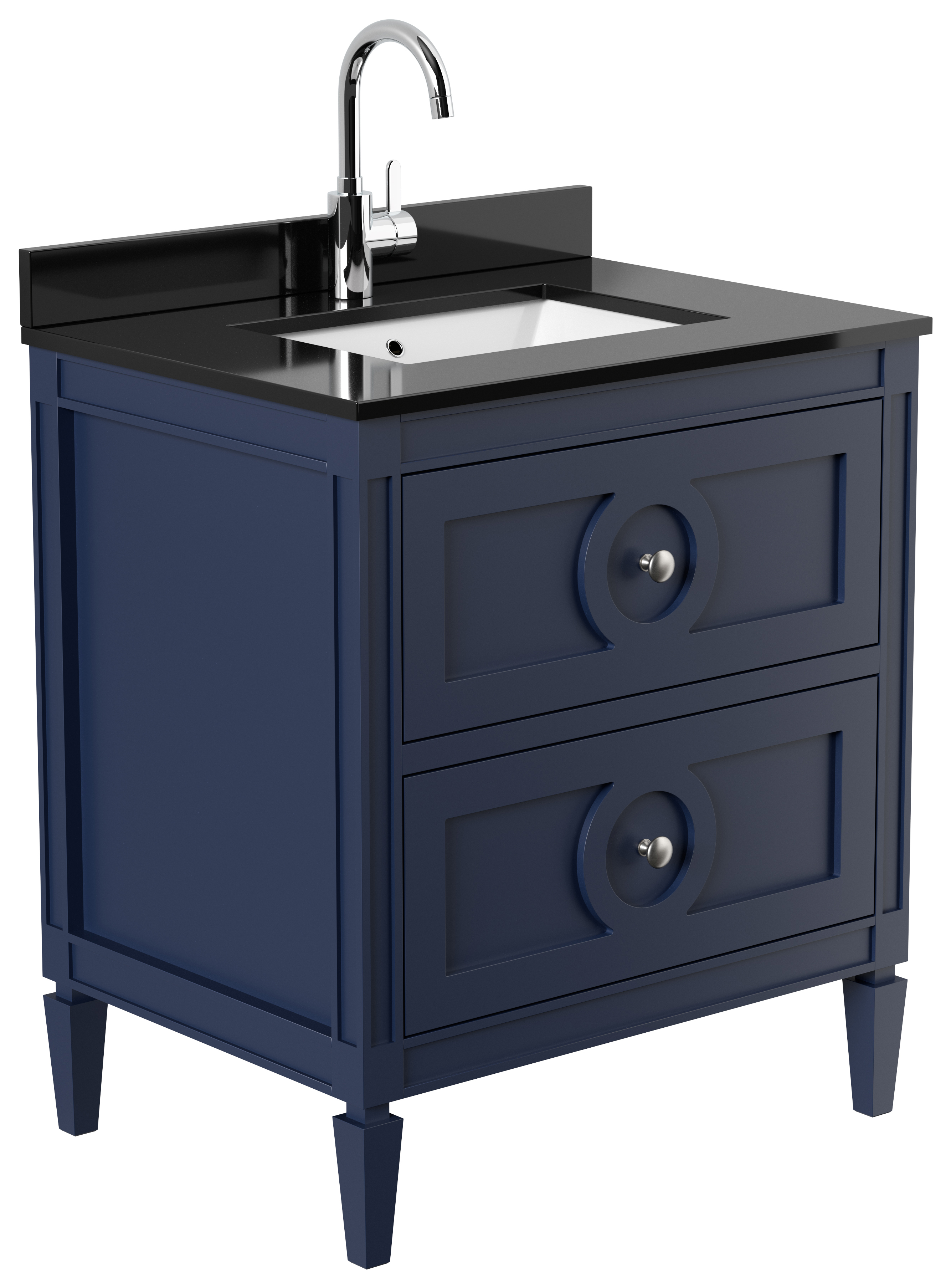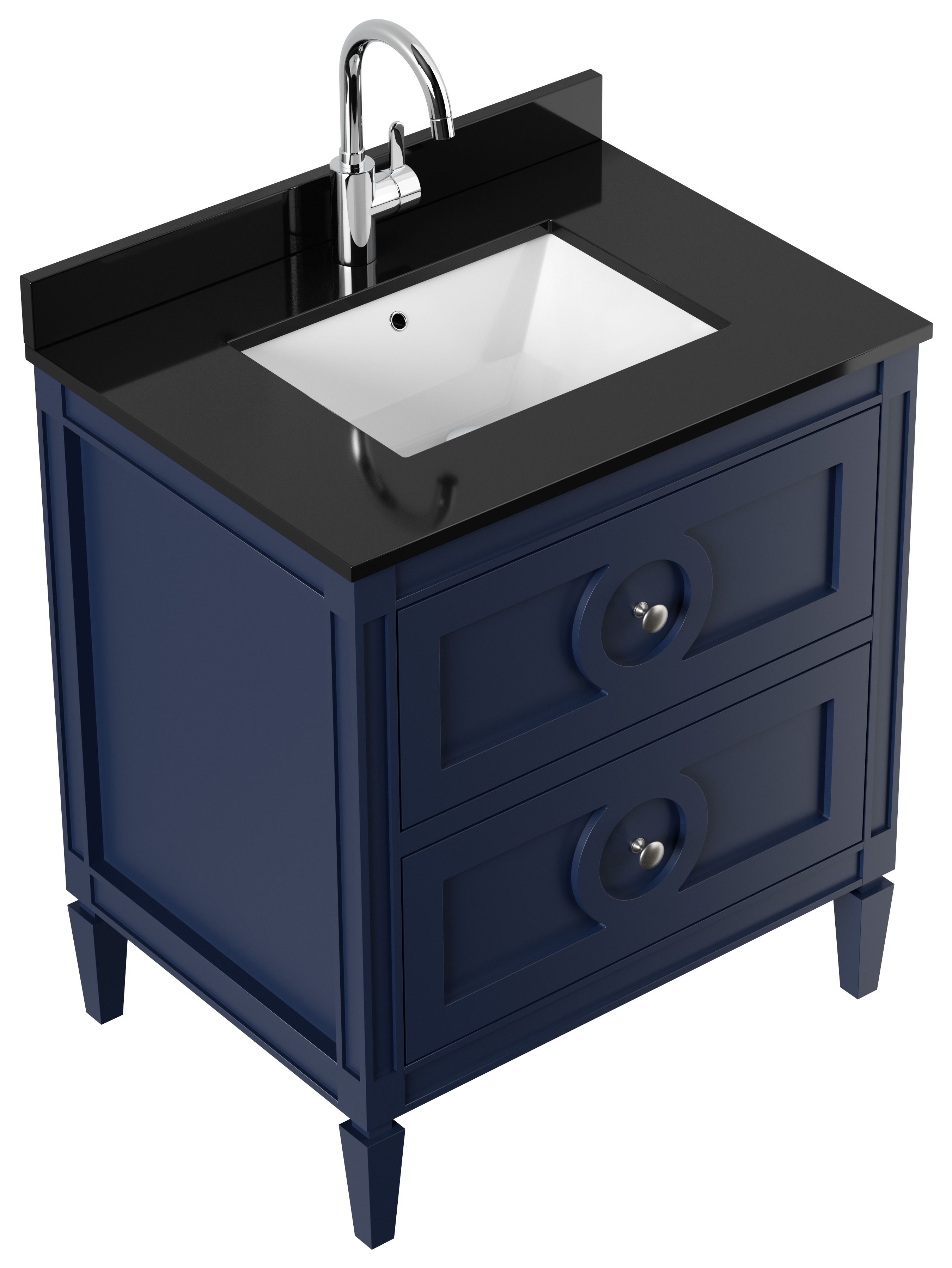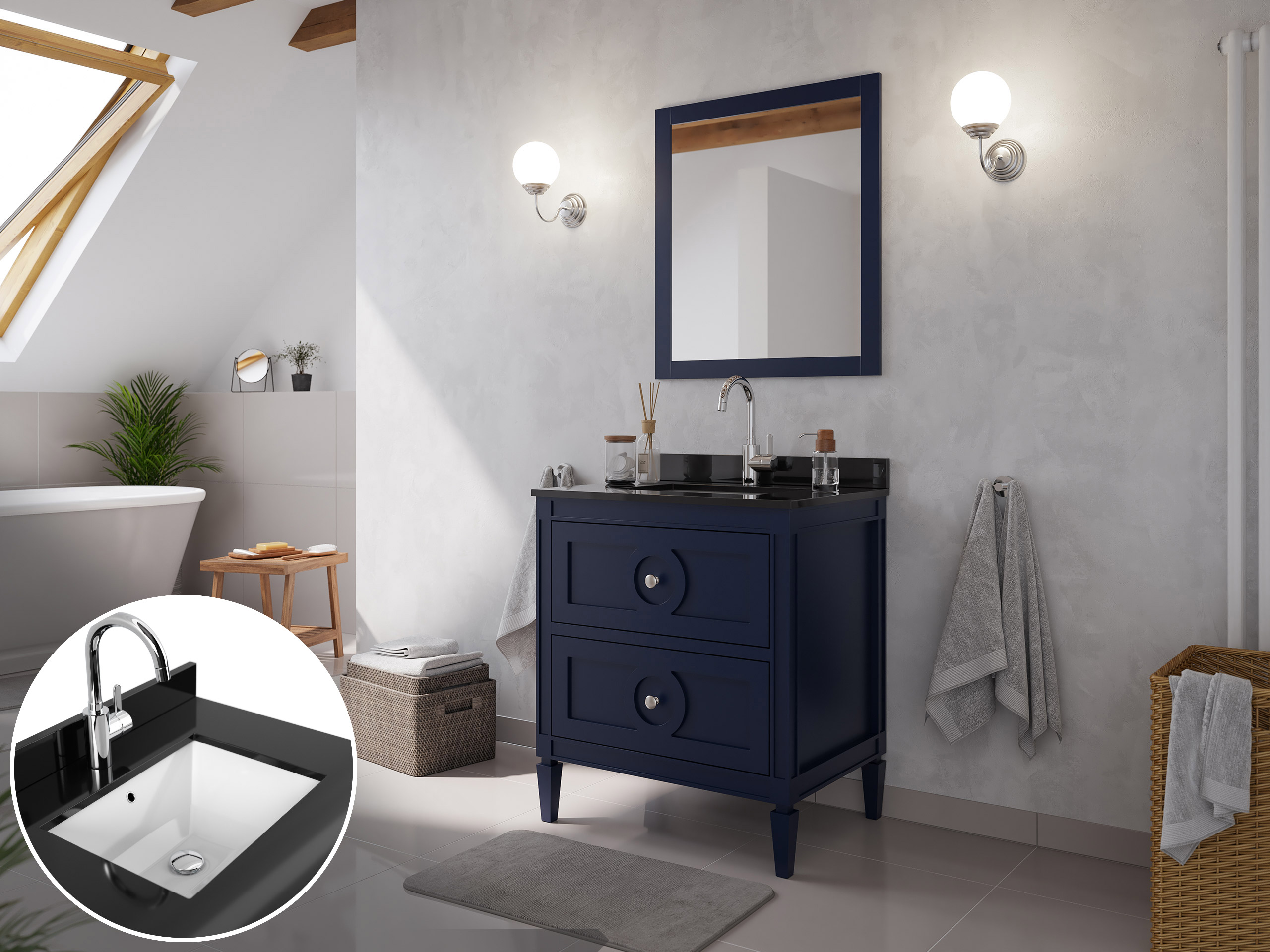 Landhaus Badmöbel-Set 2tlg Lavanda 75 Quarz schwarz montiert blau lackiert
