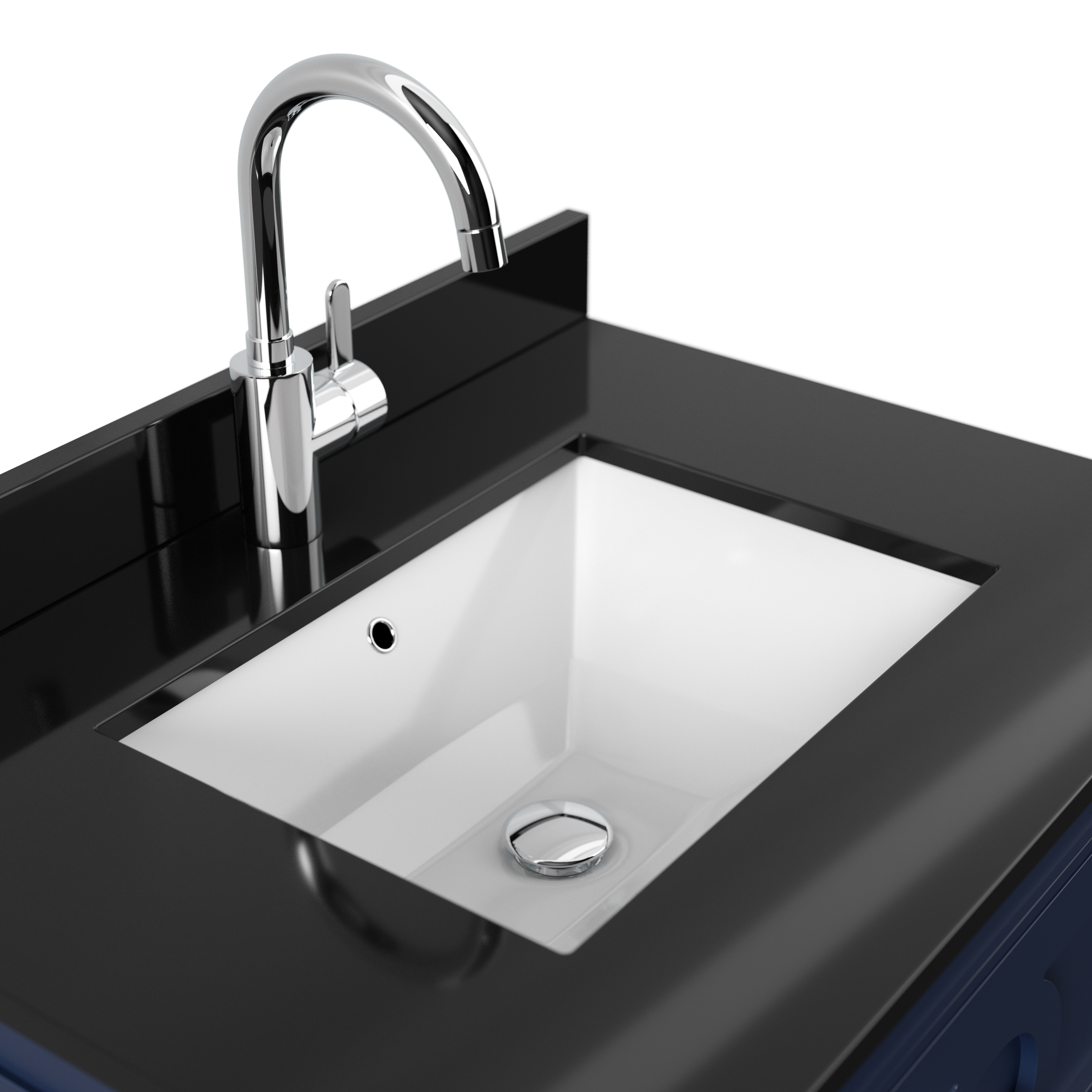Schwarzes Quarztop mit Mineralguss-Waschbecken (Spritzwasserschutz nicht in Lieferung enthalten) (B/H/T) 76/10/56 cm.