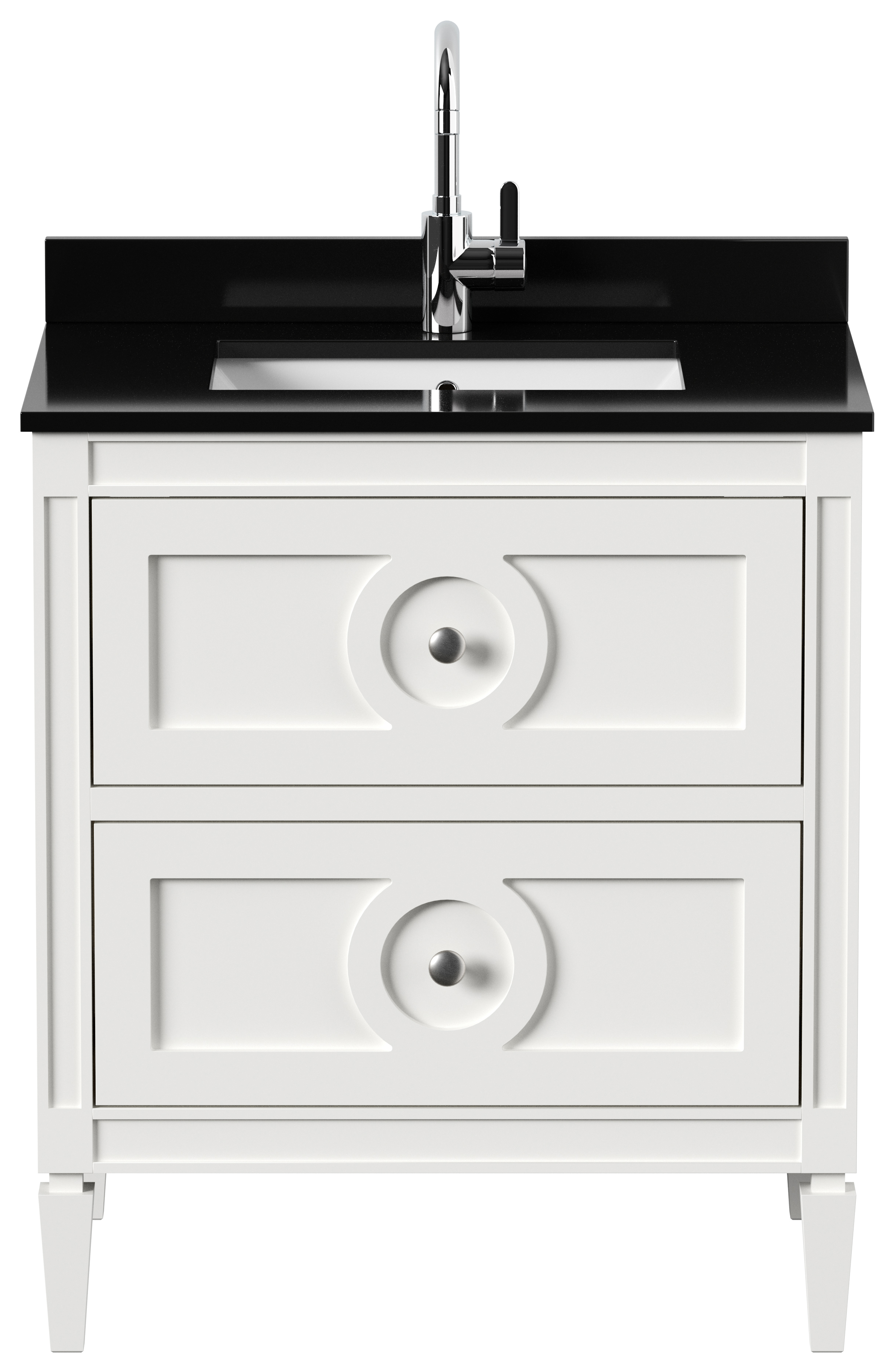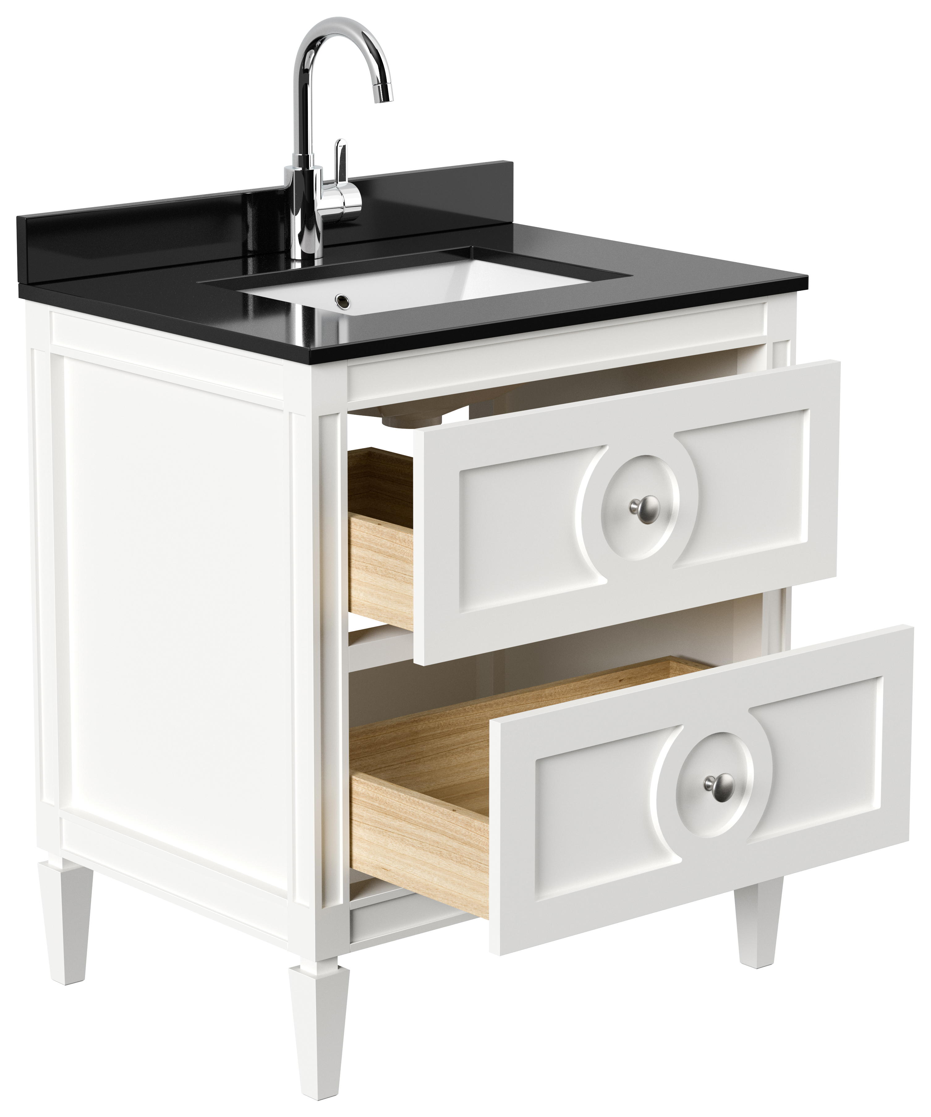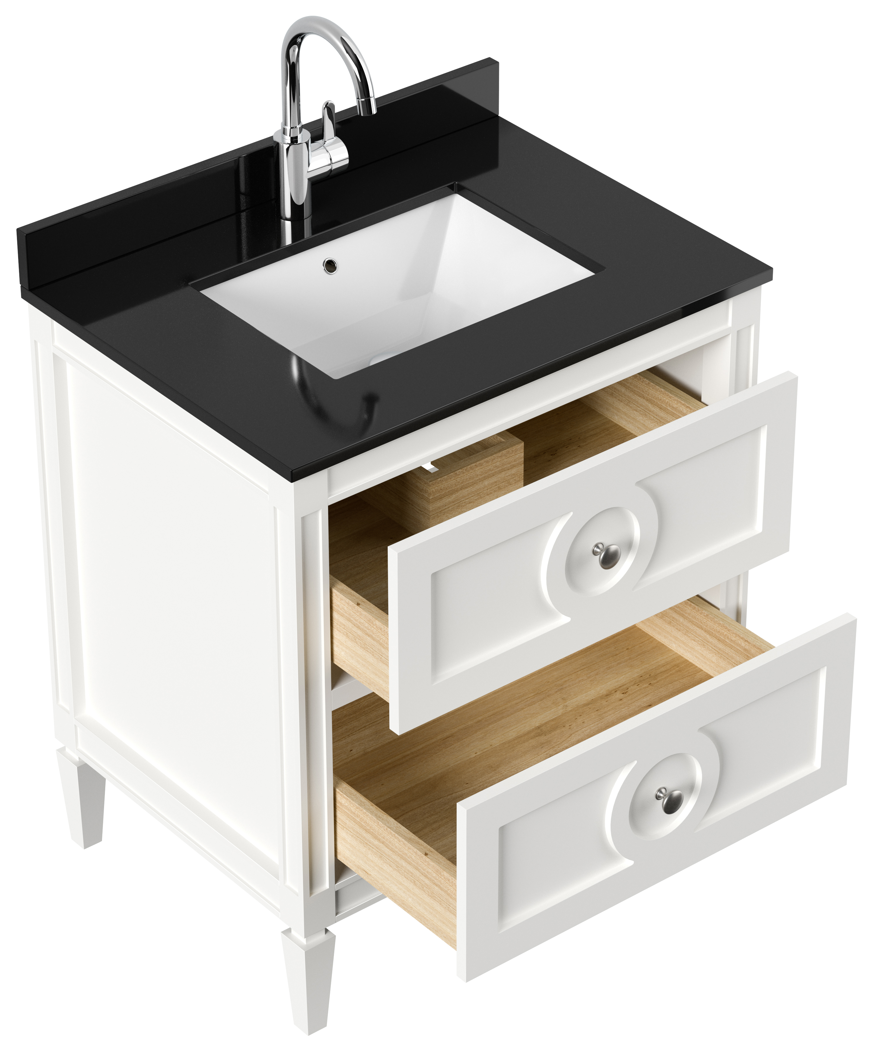 - Der Korpus der Waschtisch-Kommode besteht aus lackiertem Massivholz (Birke).
