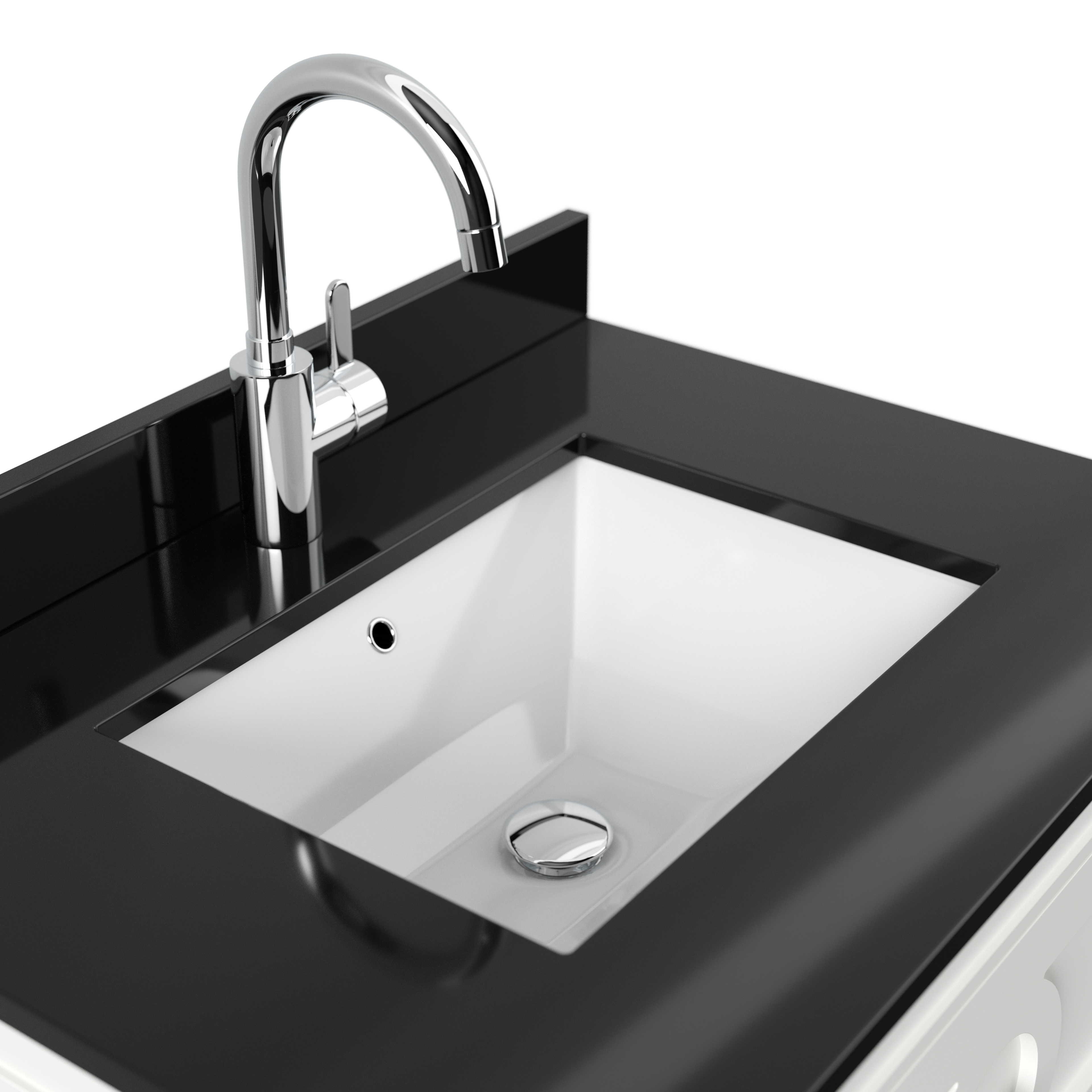 Schwarzes Quarztop mit Mineralguss-Waschbecken (Spritzwasserschutz nicht in Lieferung enthalten) (B/H/T) 76/10/56 cm.