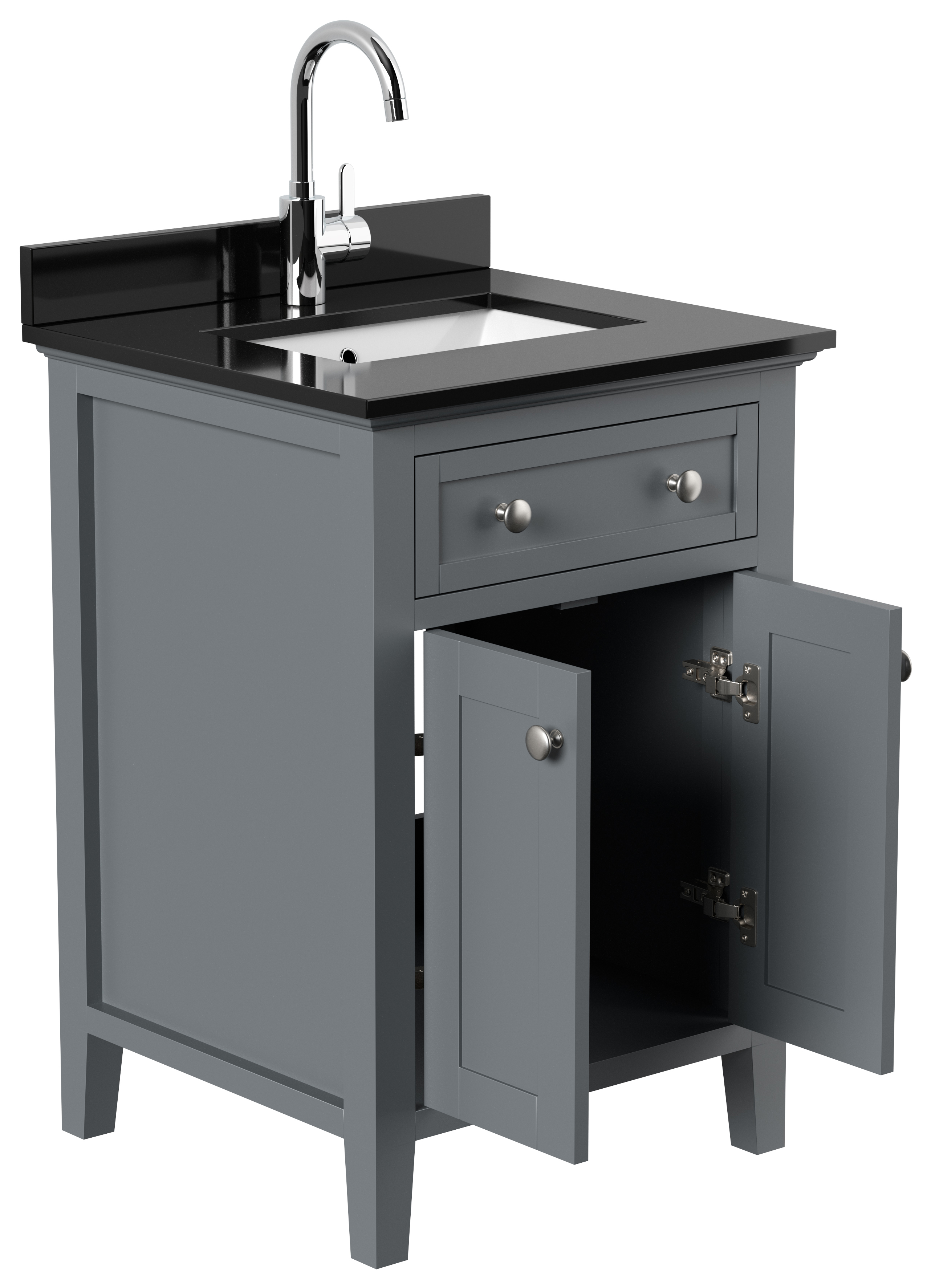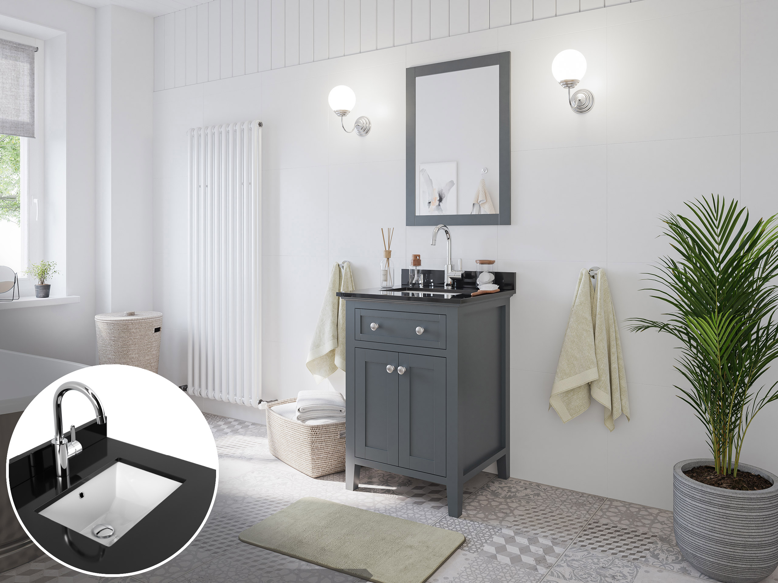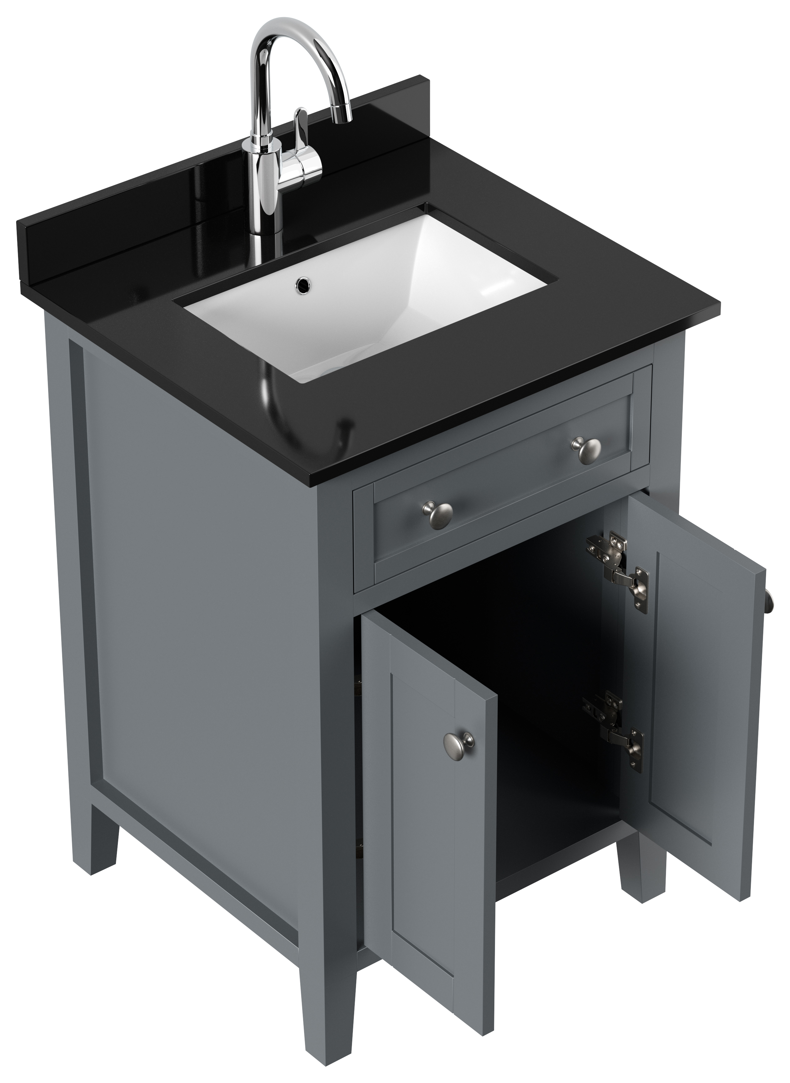 Landhaus Badmöbel-Set 2tlg Postigo 60 Quarz schwarz montiert grau lackiert
