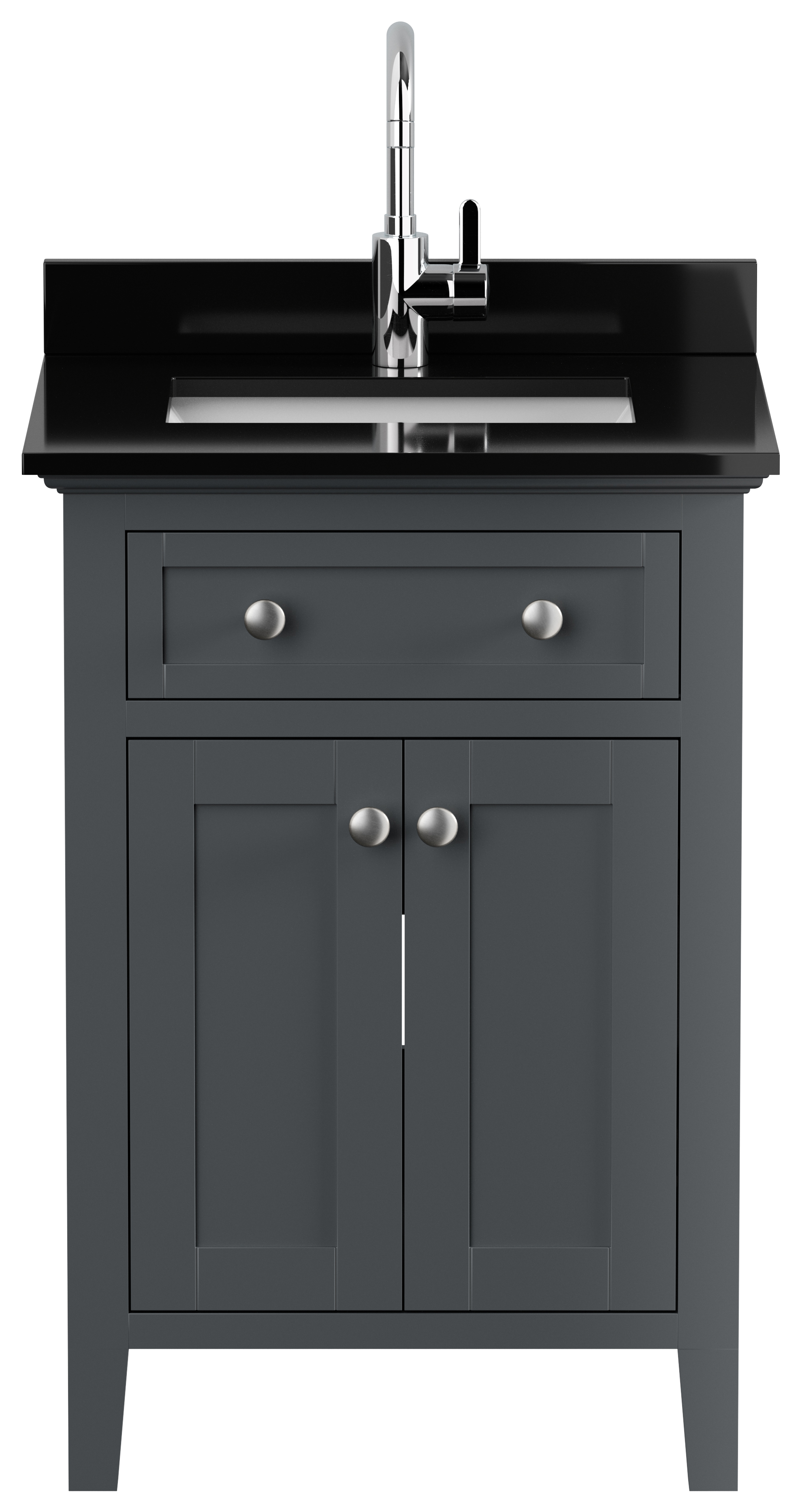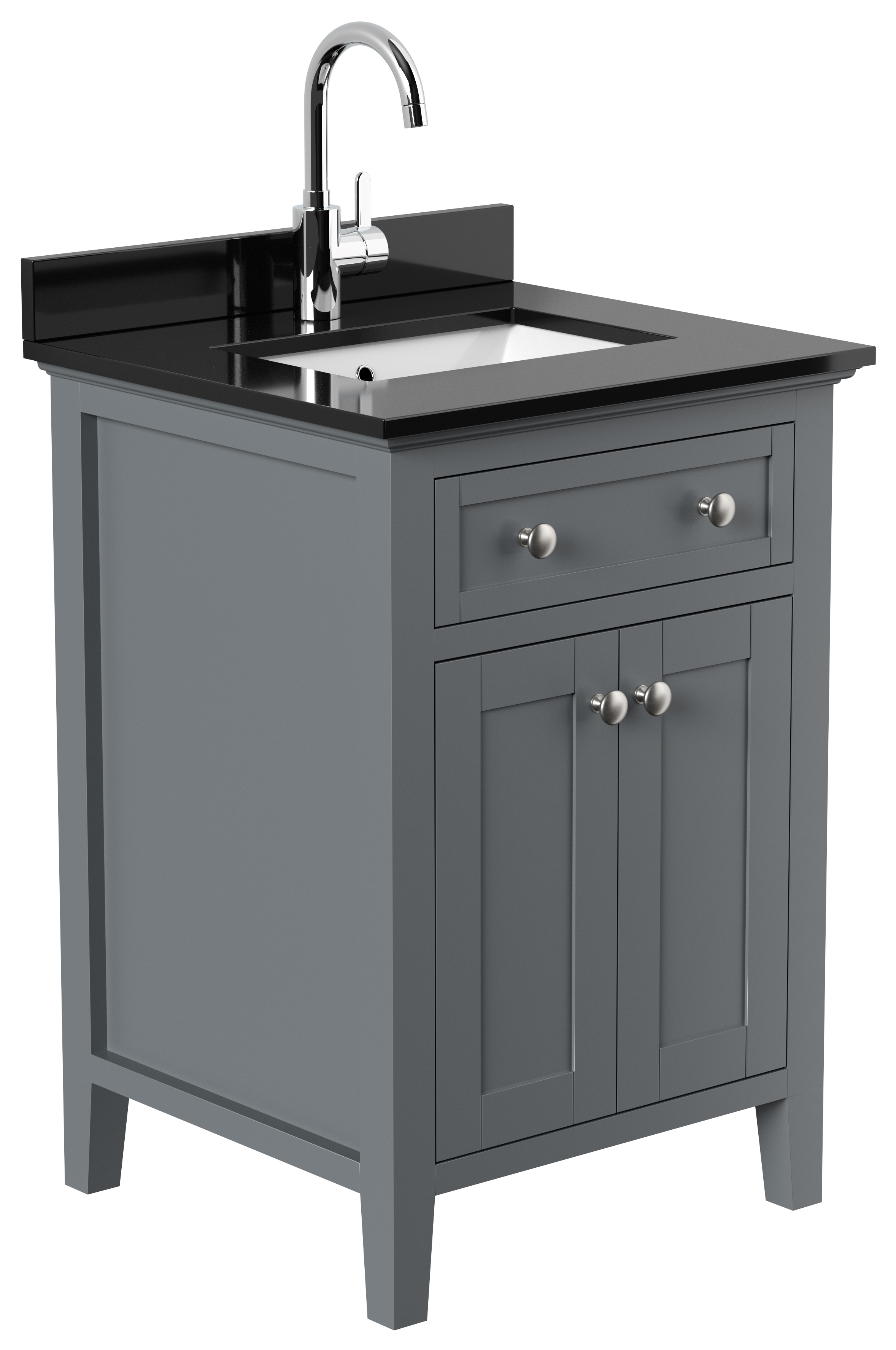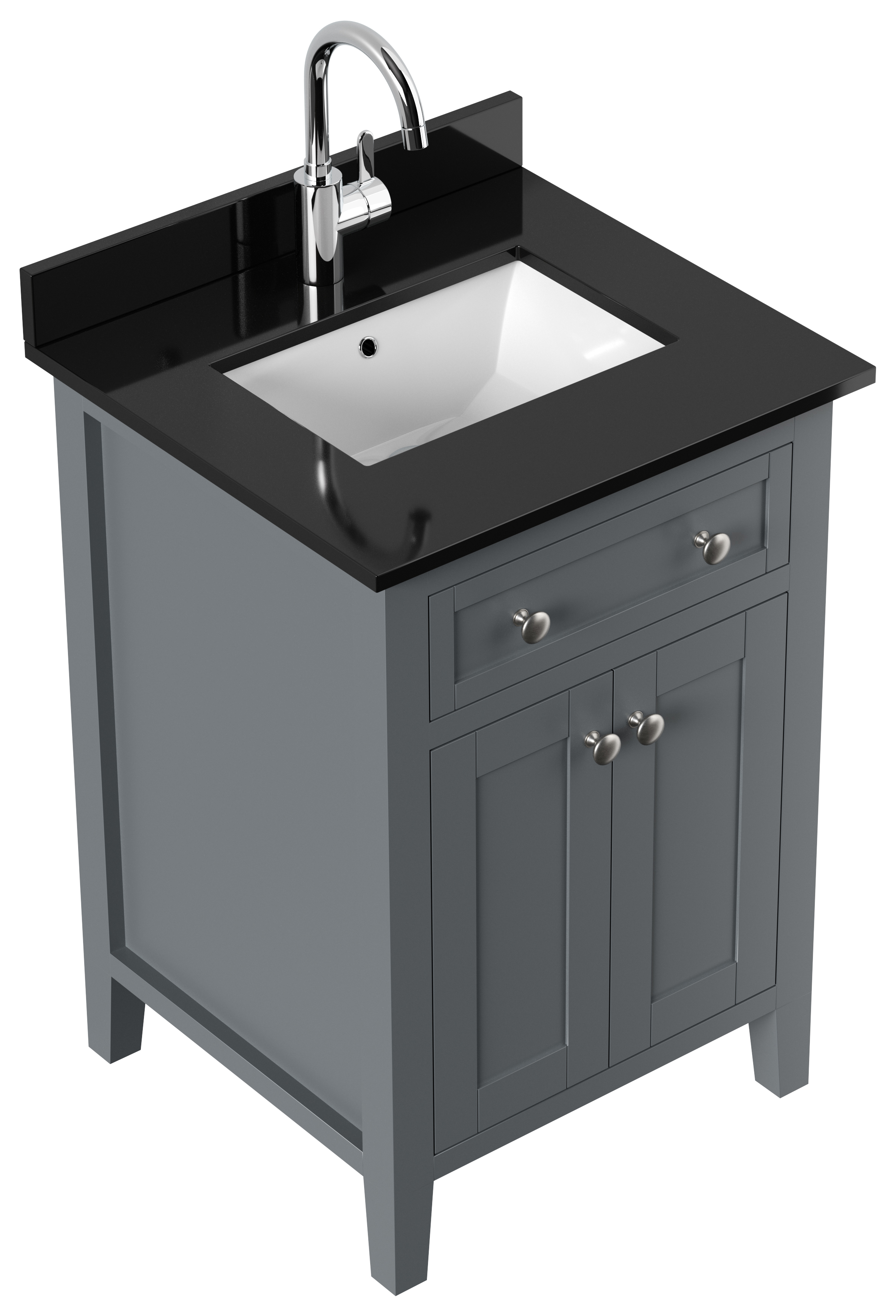 Landhaus Badmöbel-Set 2tlg Postigo 60 Quarz schwarz montiert grau lackiert