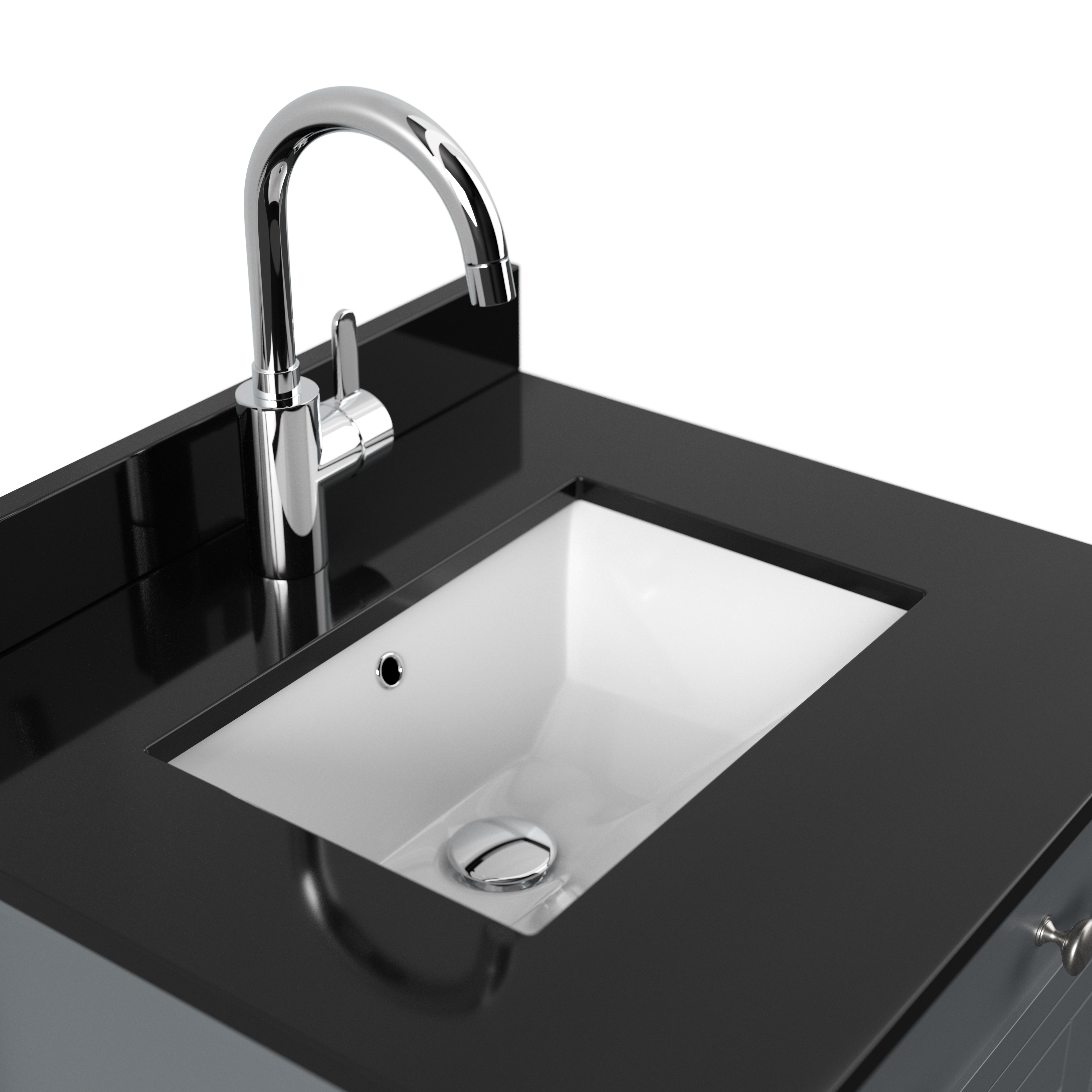 Schwarzes Quarztop mit Mineralguss-Waschbecken (Spritzwasserschutz nicht in Lieferung enthalten) (B/H/T) 61/10/56 cm.