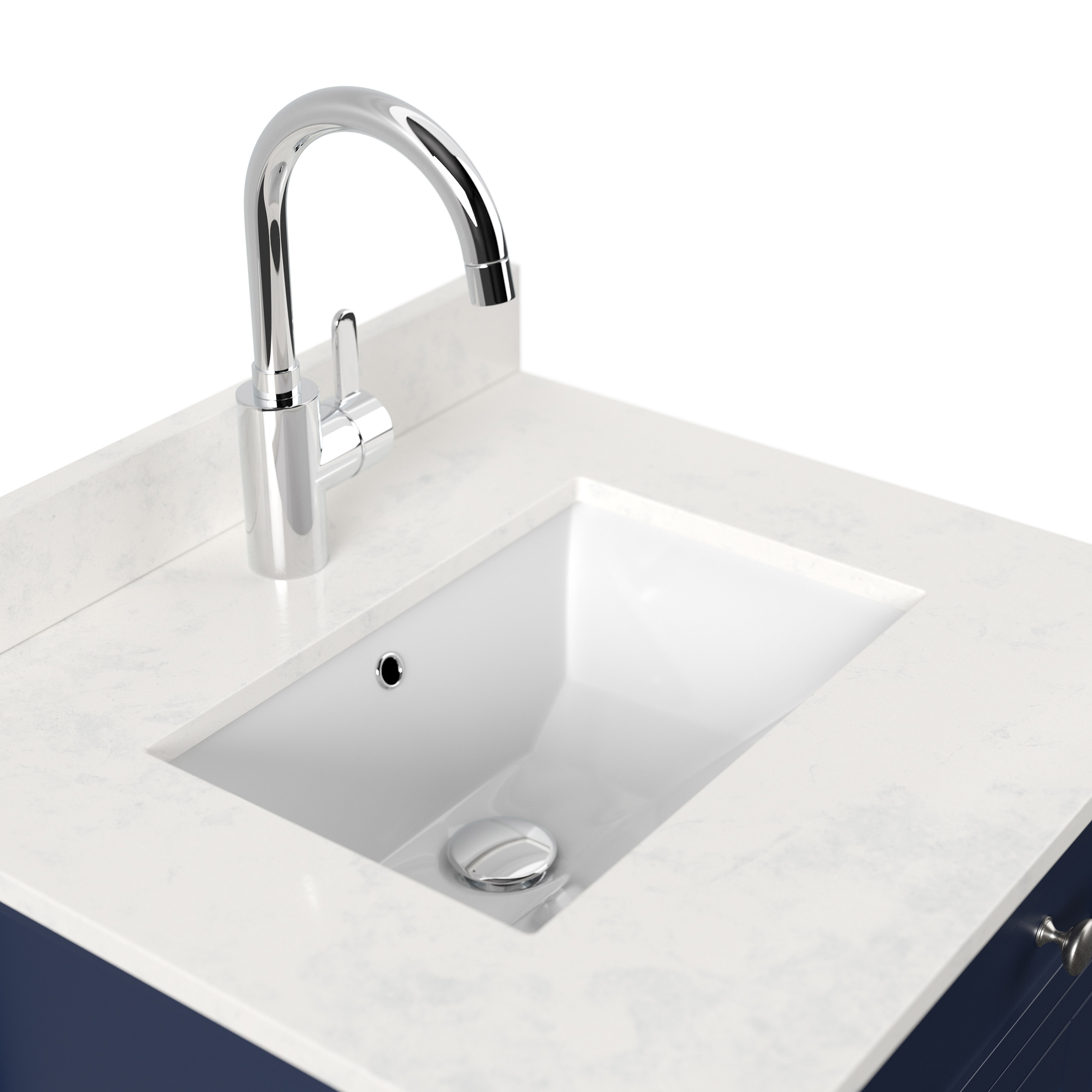 Carrara Quarztop mit Mineralguss-Waschbecken (Spritzwasserschutz nicht in Lieferung enthalten) (B/H/T) 61/10/56 cm.