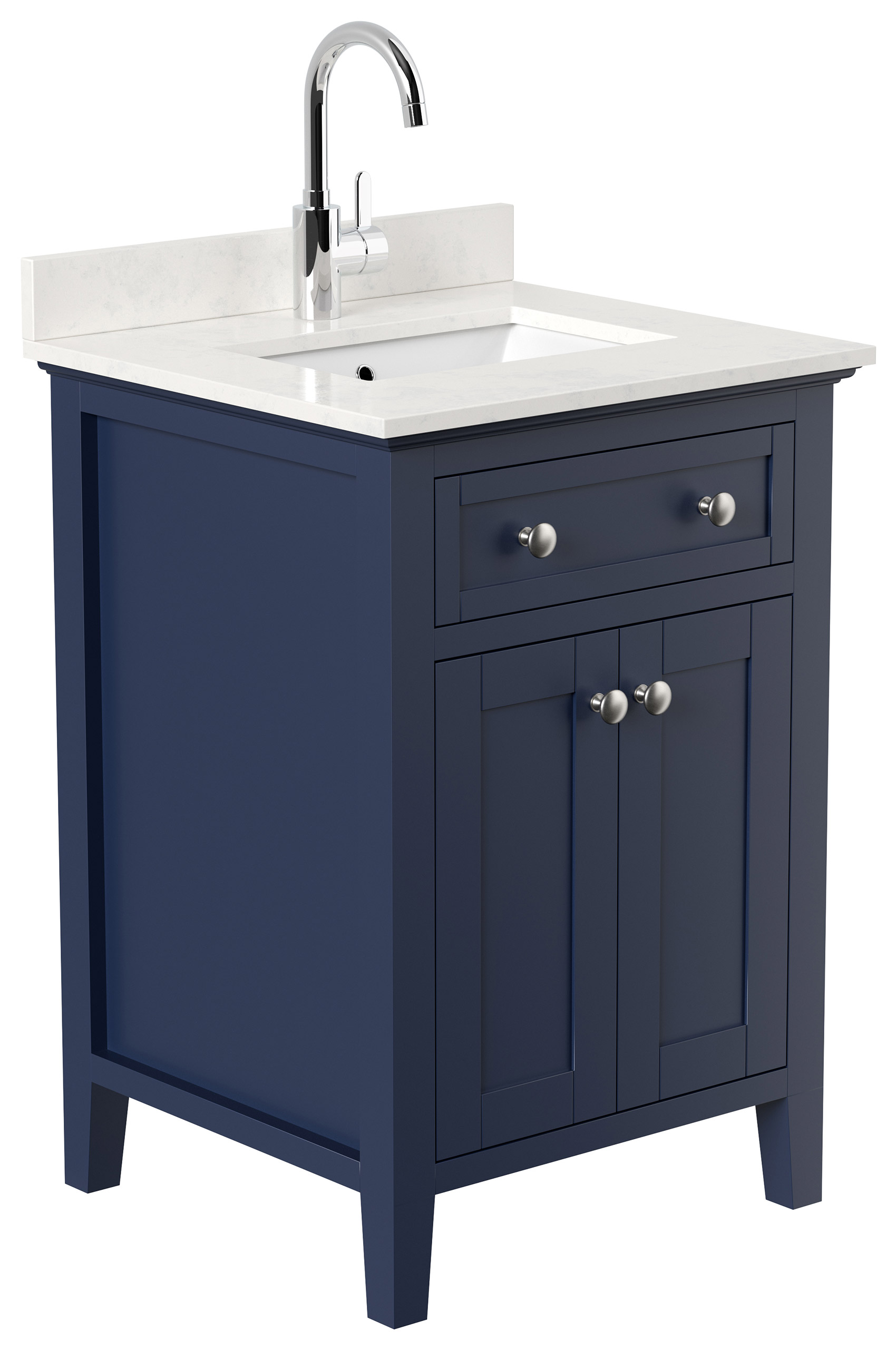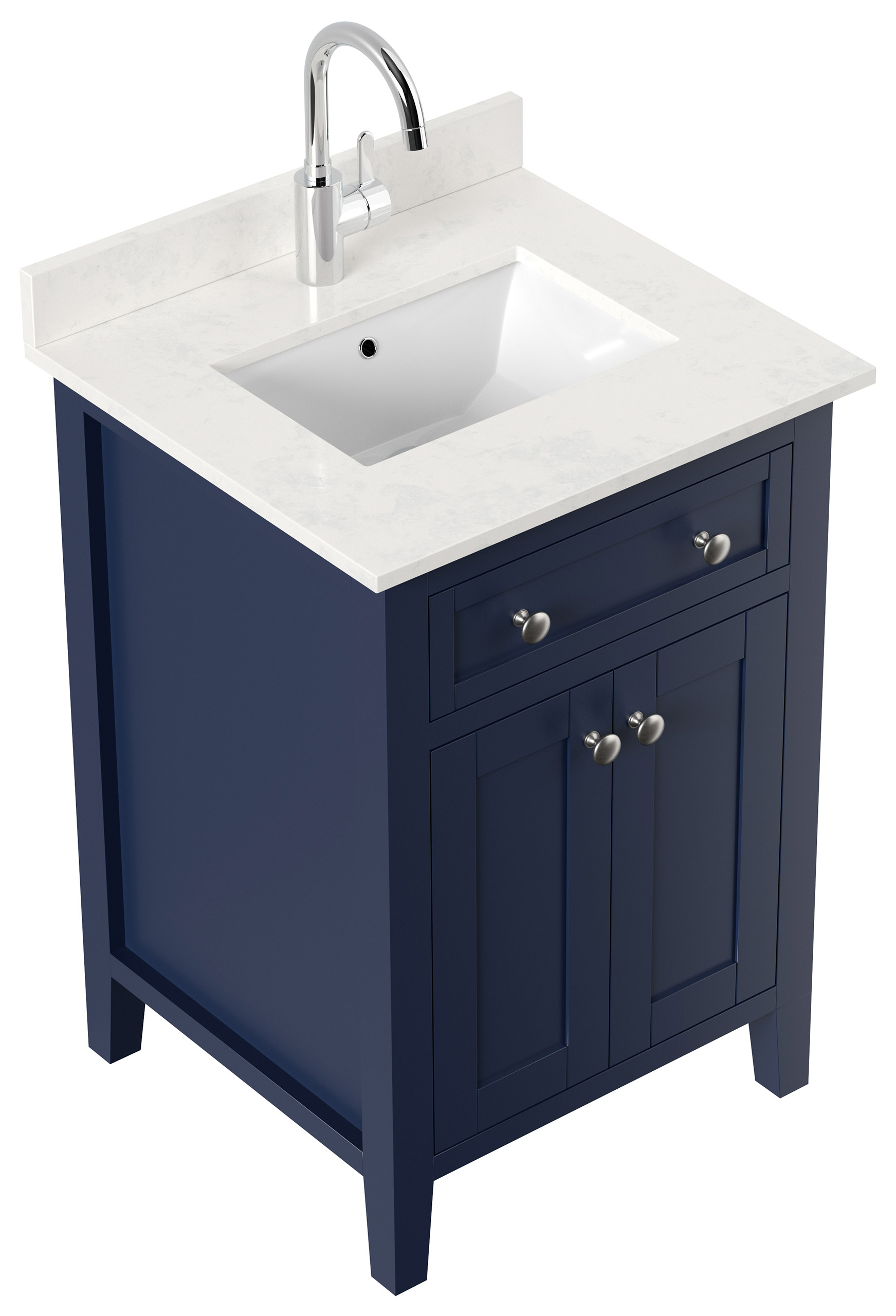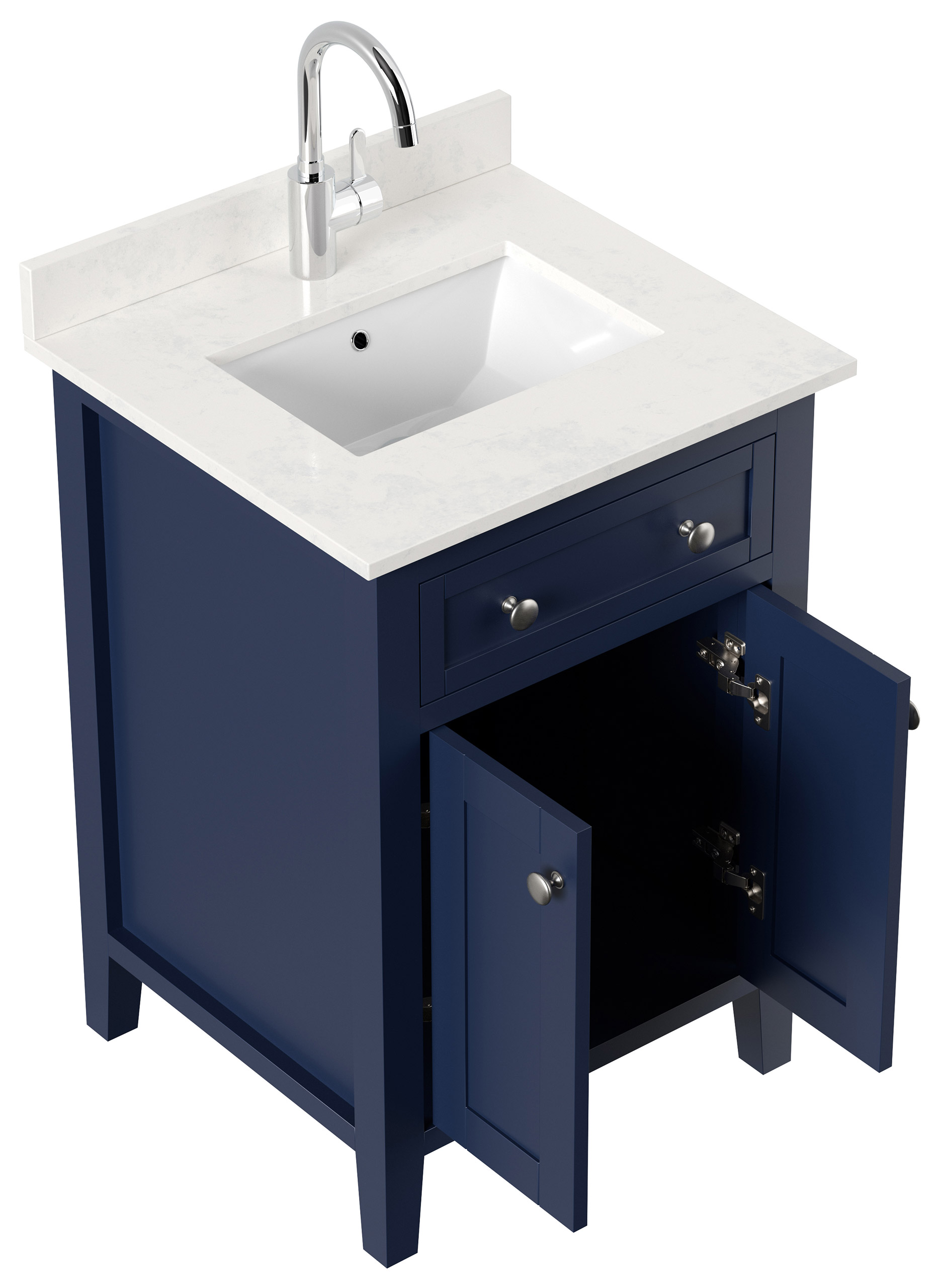 Landhaus Badmöbel-Set Postigo 60 Quarz Carrara montiert blau lackiert