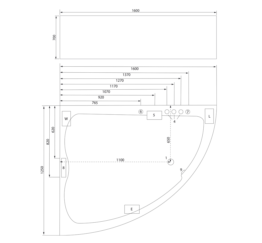 - Anschlussfertige Whirlpool-Wanne (Made in Germany) mit Rahmen auf höhenverstellbaren Füßen.