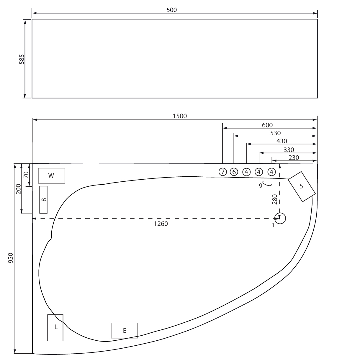Langeck Whirlpool Stardust 150x95 links Made in Germany 22 Düsen mit Armatur