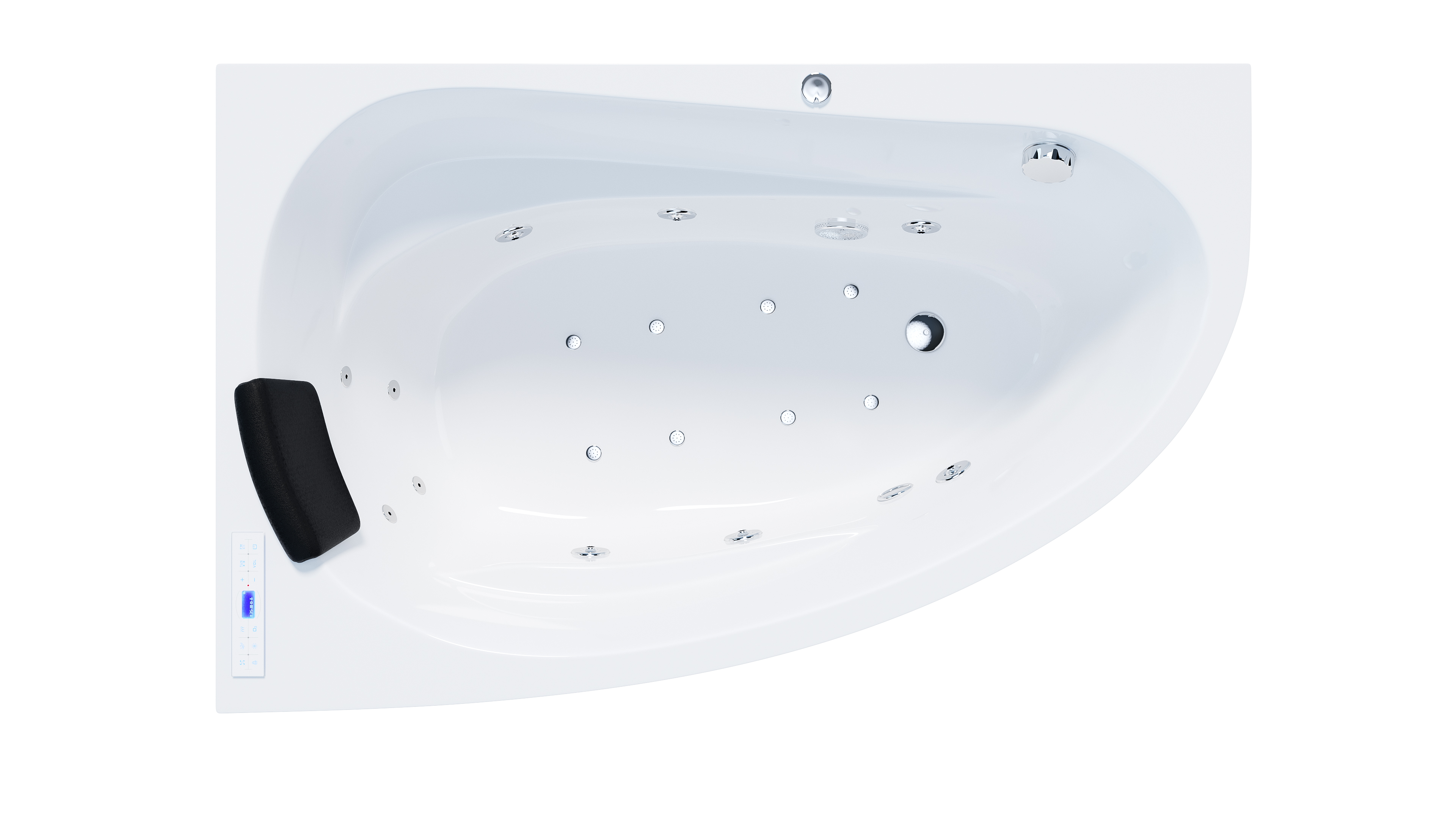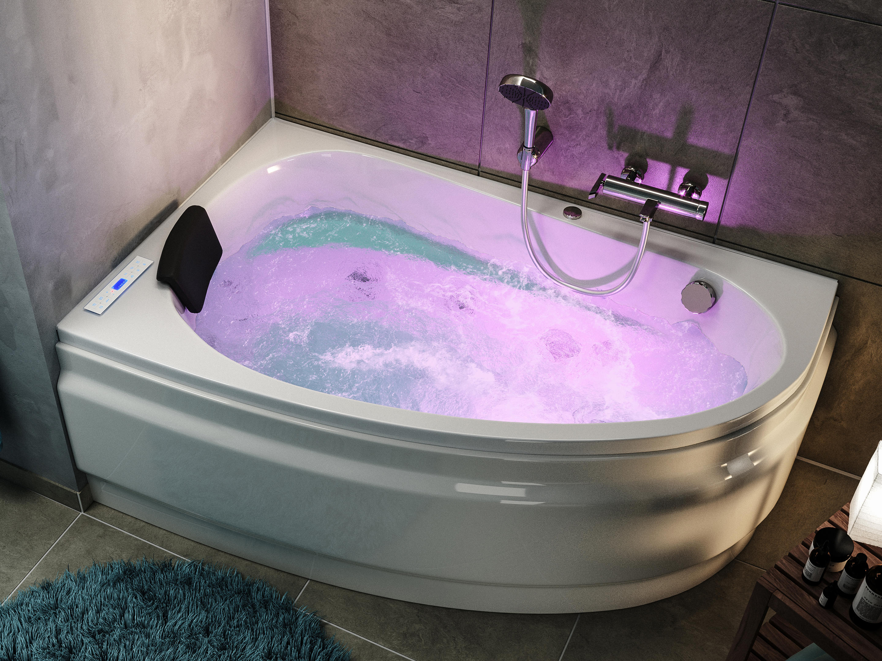 Vorteile: Dezente Strahler seitlich. Automatischer Farbwechsel mit gleichmäßiger Wasserbeleuchtung. Intensive Farben leuchten unter Wasser. Entspanntes Baden mit Chromotherapie.Massagefunktion: Düsen-Ausstattung