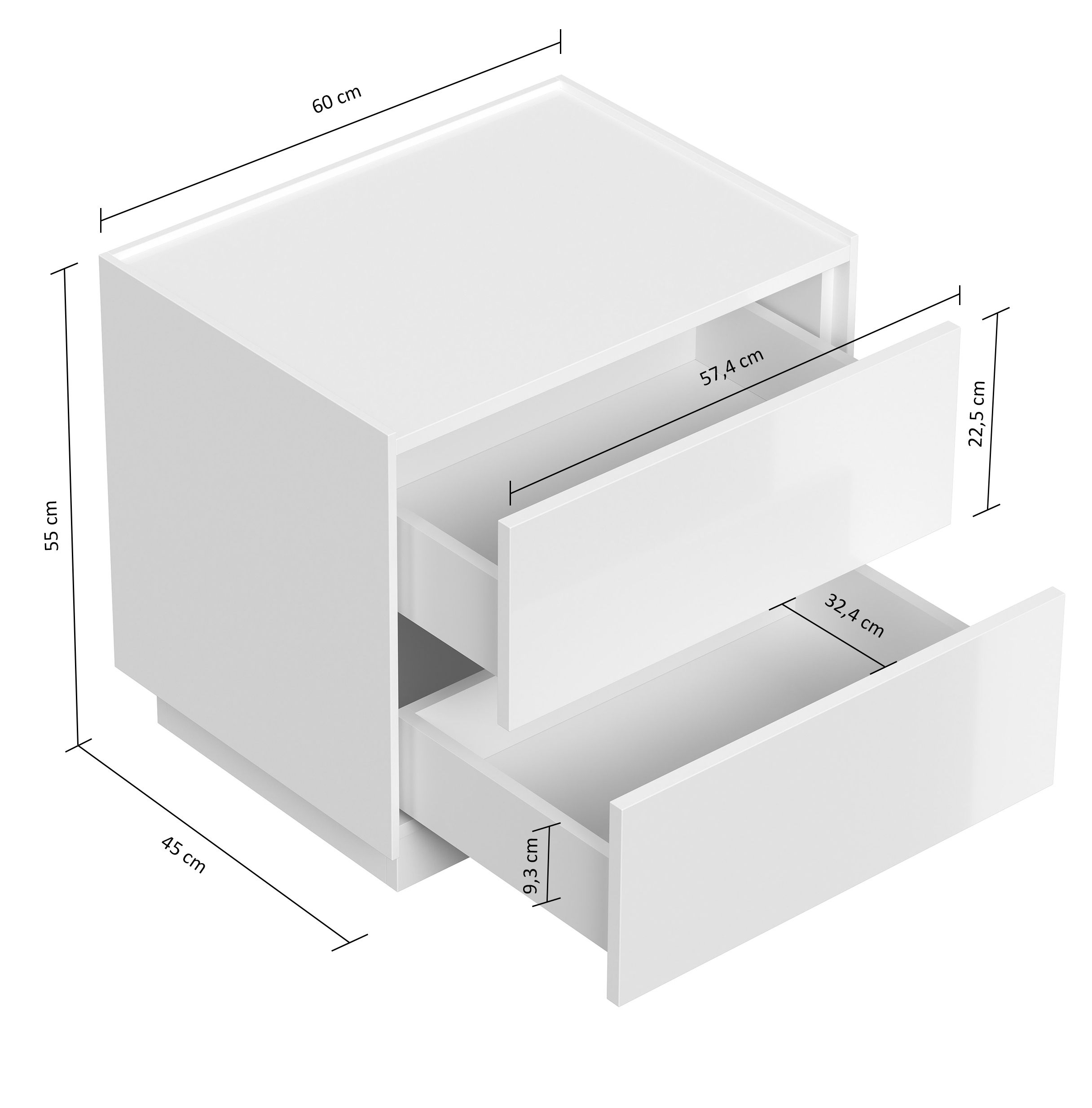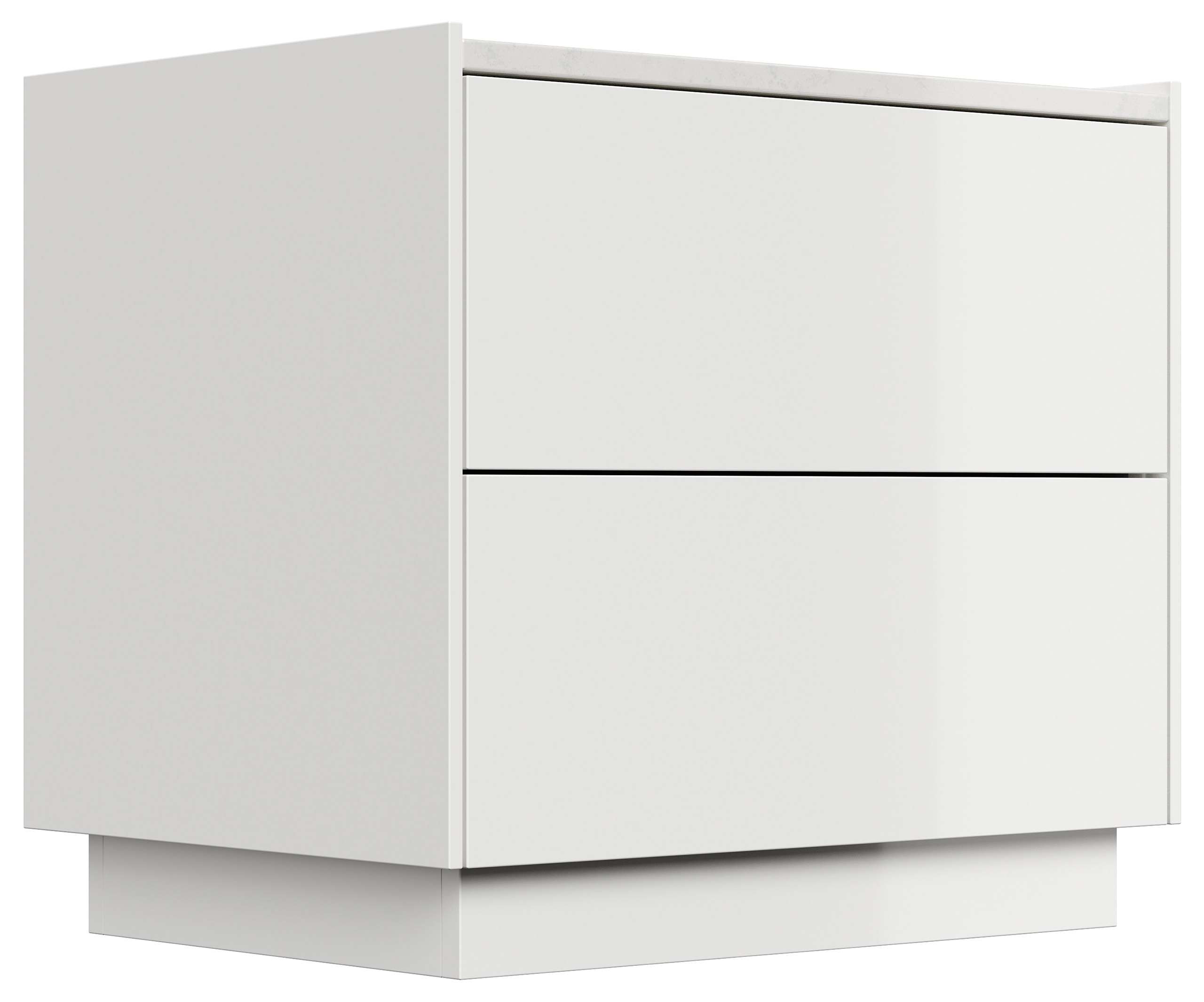 Nachttisch Kommode Concepto L 60cm, Quarztop, 2 Pushauszüge lackiert Weiß Hgl
